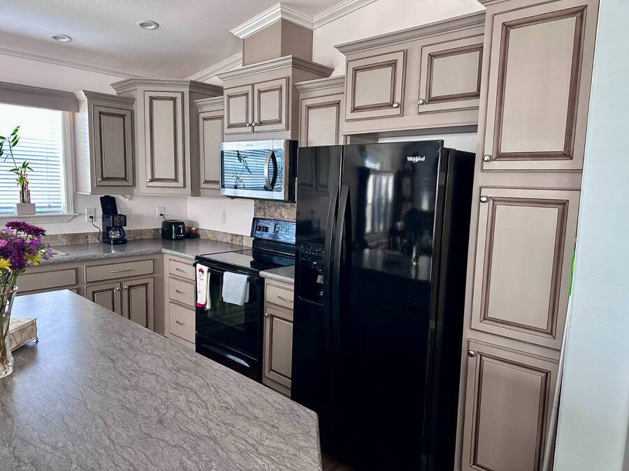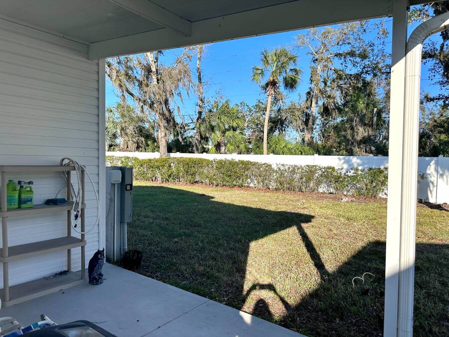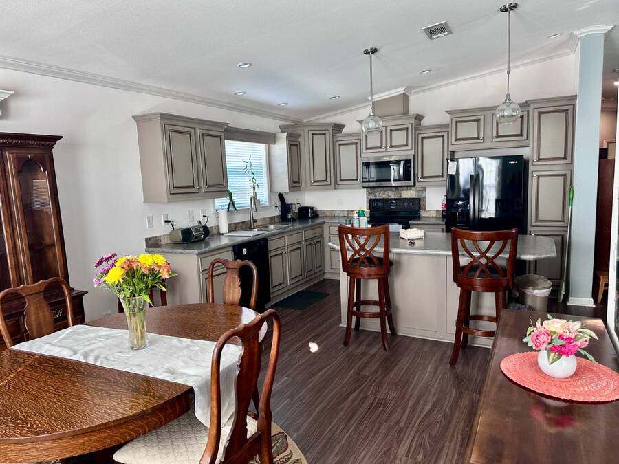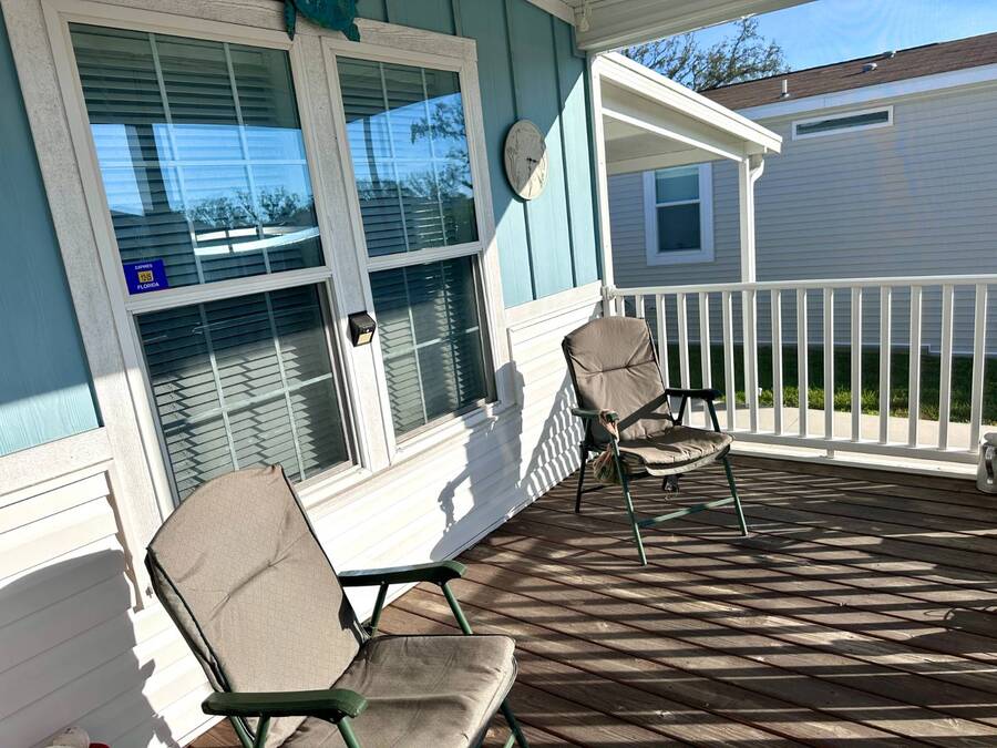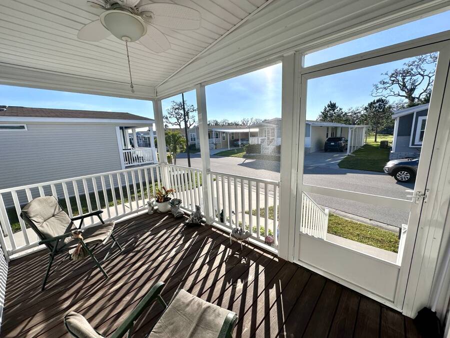 Welcome to your dream home! This spacious home boasts charm with 3 bedrooms and 2 bathrooms! Step inside and discover a spacious open-concept dining and living room seamlessly connected to a gorgeous kitchen. Prepare culinary delights in style with the large island, energy-efficient appliances, ample stylish cabinets, and counter space to ensure effortless hosting. Enjoy your morning coffee and beautiful Florida weather on your screened-in porch or large back patio. The large master suite is perfect in size for a king-size bedroom set, has a large walk-in closet for all your storage needs, and a private ensuite bathroom with a walk-in shower and double vanity sink. Two more bedrooms in the home are perfect for guest rooms or an office. The laundry area has a full-size washer and dryer and is located in the hallway in close proximity to the bedrooms. There is a large driveway with a carport big enough for two cars and a golf cart. Also, there is a back door entrance into the home from the carport for your convenience. For all your extra storage needs there is a generous-sized storage shed. A new gated section of the property with a resort-style heated pool. Don't miss out on this opportunity to embrace luxury living at its finest - seize your chance to make this impeccable home yours today! Colony Cove is an age-qualified (55+) five-star resort community of manufactured/mobile homes. The Cove boasts 5 clubhouses, 6 heated pools, a riverfront pavilion, and private fishing pier, a private marina, a fenced dog park (very pet friendly), tennis, shuffleboard, new pickleball courts, 2 new fitness rooms, 24-hour patrol, clubs of every interest, and much more. There are daily planned activities throughout the park. Bottom line, if you get bored here, it's your own fault! The lot rent in This property is based on the home's location. All listing information given to us is considered appropriate and reliable but we always recommend home inspections by independent companies who have a background and thorough understanding of manufactured homes. We cannot guarantee the accuracy of the information given to us or the home's condition. Lot rents are determined by the community office, not our company.