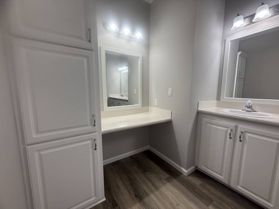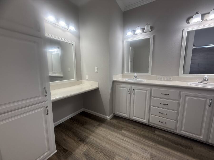 Retreat to the luxurious primary suite, thoughtfully crafted with Jack-and-Jill closets offering generous storage. The en-suite bathroom delivers spa-inspired comfort with double sinks, an elegant vanity area, and a large walk-in shower designed for relaxation.
