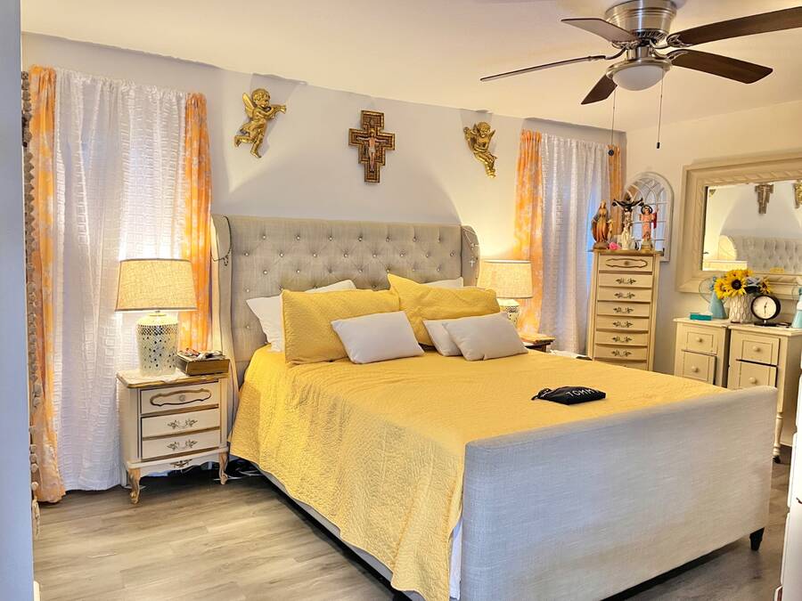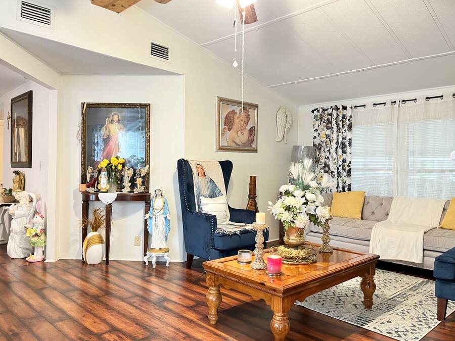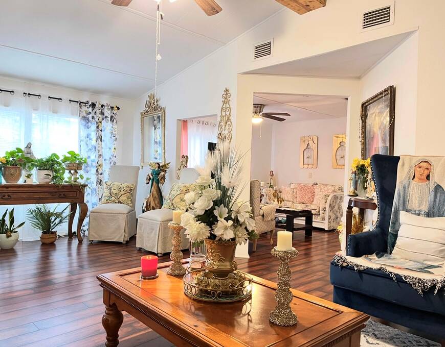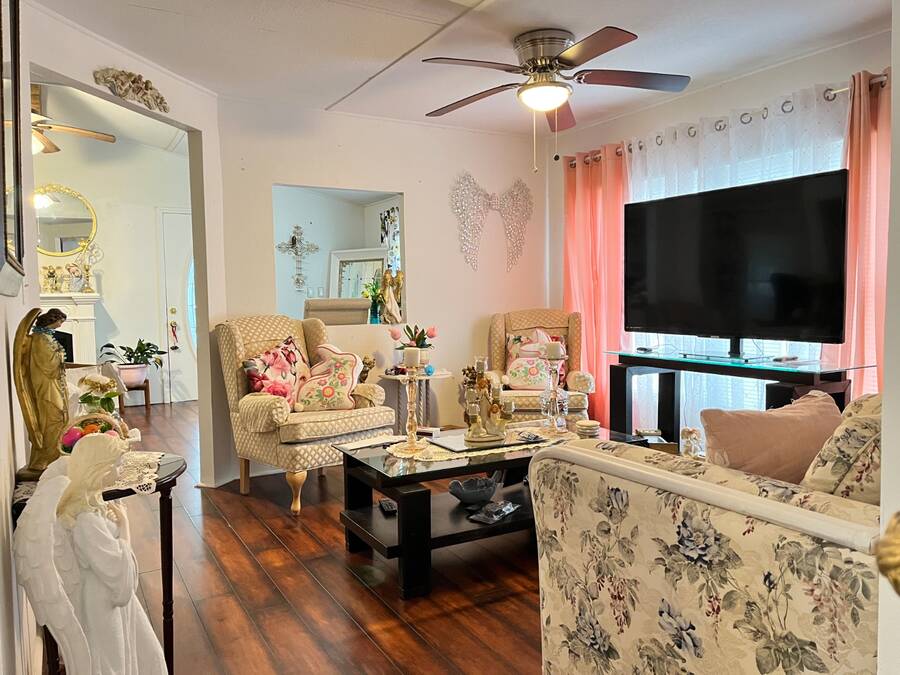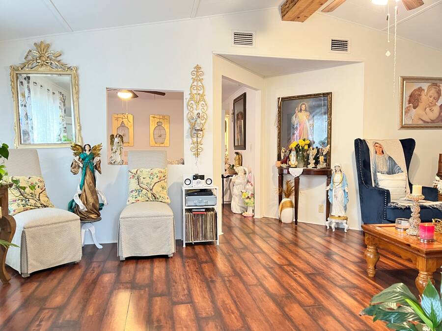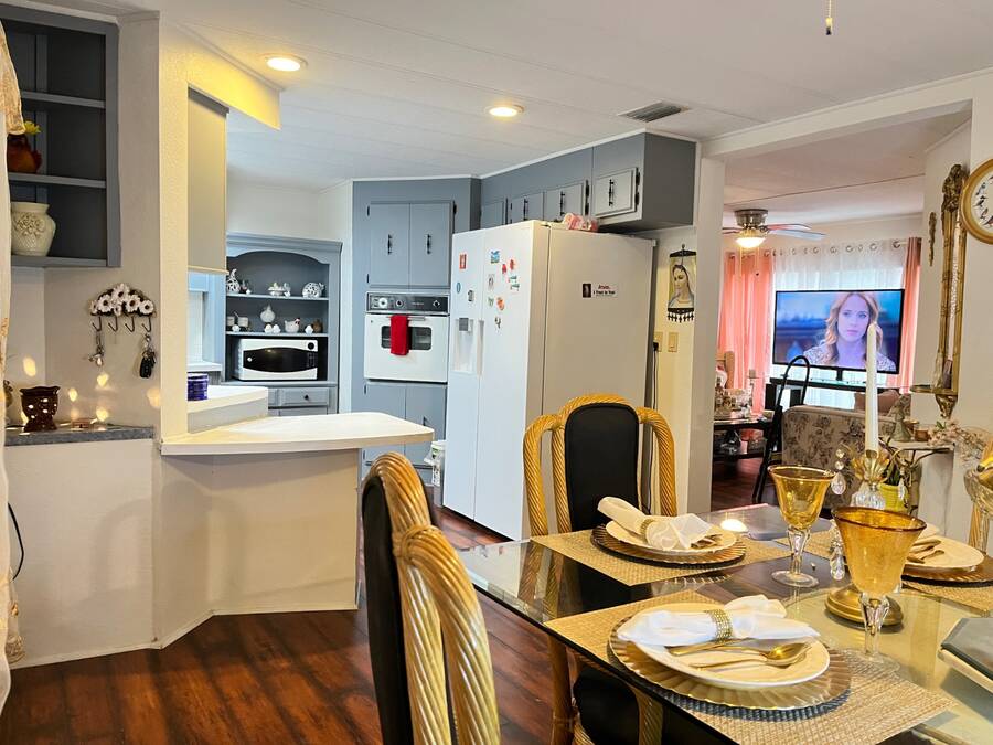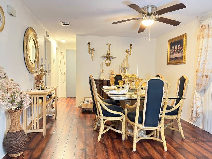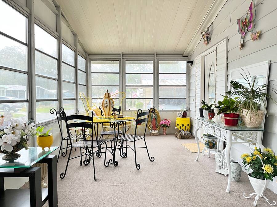 2 Bedroom - 2 Bath - 1978 - 1456 Sqft Mobile Home in the 55+ Community of Cloverleaf Farms in Brooksville. Lot Rent is $856.35 which includes: water, trash, sewer, lawn, activities and amenities. 2 Pet Policy with No Weight Limit. Must Get Park Approval Before Purchasing Home. Home had a New Roof Over Installed 2022. Addition and Carport are Metal Roof. Home is very Spacious and Layout has a Nice Flow to it. You have 2 Sunrooms with Crank Out Windows. Front Sunroom takes you into your Formal Living Room. Living Room is off the Formal Living Room. Dining Room seats a Table for 6 with Room for a Buffet/Hutch. Kitchen is off the Dining Room. Kitchen as a Cook Top/Wall Oven with View over the Kitchen Sink. Side Sunroom is off the Dining Room and Carport. Attached Shed is off the Side Sunroom and Houses Your Laundry. Back Inside down the Hallway from the Dining Room are the Main Bedroom, Guest Room and Hall Bathroom. Hall Closet. Main Bedroom has a Small Closet with Ensuite Bathroom. Deep Lighted Walk in Closet with Separate Walk In Shower Room. Guest Room has a Wall Closet. Hall Bathroom has 2 Linen Closets, Shower/Tub Combo with Vanity/Sink. Cathedral Celings. Arch & Angled Walls. Laminate Flooring. Central Heat/Air. Ceiling Fans. Large Oak Trees. Stone Skirting. Paver Driveway. 2 Car Carport. Schedule Today to View This Home with it's Much More To Offer Setting! About the Park: Three Clubhouses, 2 Heated Outdoor Pools, Indoor Heated Swimming Pool, Whirlpool-Spa-Hot Tub, Laundry Facilities, Banquet Room, Billiards, Craft Room, Fitness Center, Shuffleboard Courts, Dog Park, Fishing, Horseshoe Pits, Pickleball, Sauna, Outdoor Dry Sauna, RV Storage, RV Sites, a Scenic Picnic Area, Garden Community, Pet friendly Environment, Waterfront Sites, Social Club and On-Site Management. Clover Leaf Farms is a Beautifully Landscaped with Mature Oak Trees, Age qualified, 55+ mobile home community that is Big on Activities and Amenities. Three Clubhouses, 2 Heated Outdoor Pools, Indoor Heated Swimming Pool, Whirlpool-Spa-Hot Tub, Laundry Facilities, Banquet Room, Billiards, Craft Room, Fitness Center, Shuffleboard Courts, Dog Park, Fishing, Horseshoe Pits, Pickleball, Sauna, Outdoor Dry Sauna, RV Storage, RV Sites, a Scenic Picnic Area, Garden Community, Pet friendly Environment, Waterfront Sites, Social Club and On-Site Management. Located North of the Tampa/Clearwater/St. Petersburg metro area, Brooksville has a rich history, charm and an overall great place to enjoy the outdoors. Hiking, Biking Trails, Camping, Fishing, Kayaking and Canoeing opportunities are just 6 miles away in the Withlacoochee State Forest. A 36-hole Golf Course in rural Brooksville offers visitors a chance to play on a nationally ranked course. 10 minute drive to Downtown Brooksville with Shopping, Restaurants, Park, Court House and Various Businesses. Information contained herein is deemed reliable but not guaranteed. Sun Realty cannot guarantee or warrant the accuracy of this information or condition of any property. Buyer to confirm park rent, fees, rules and requirements. Home and pest inspections are always recommended.
