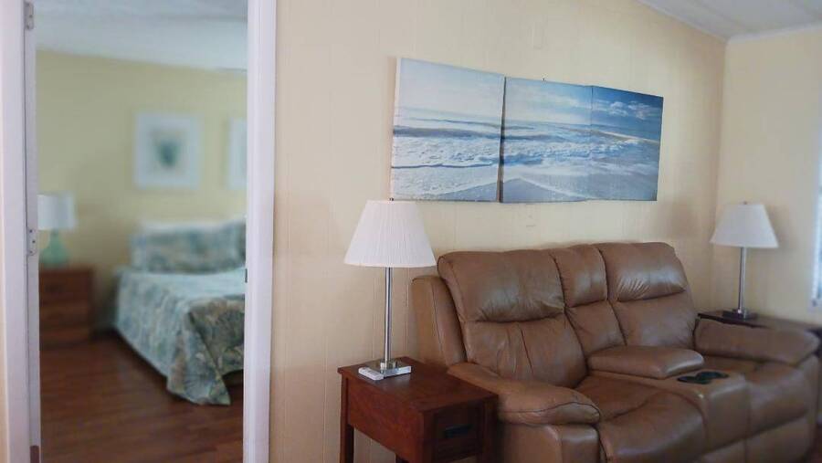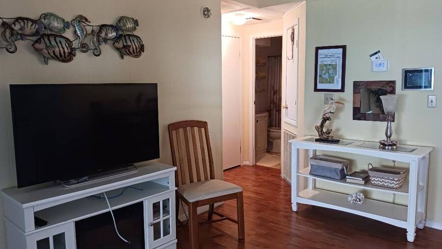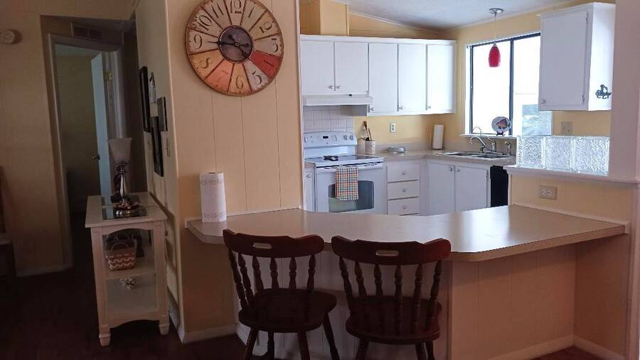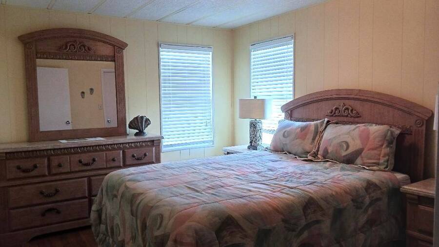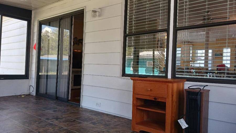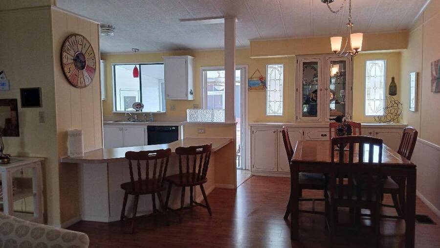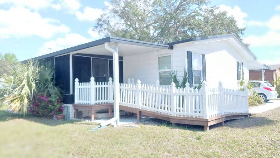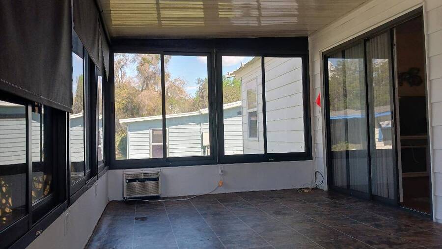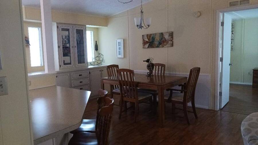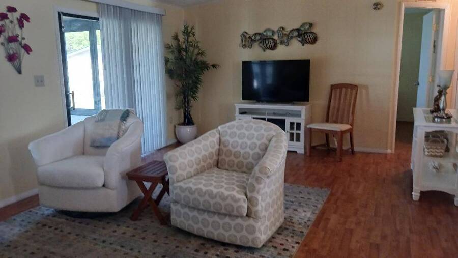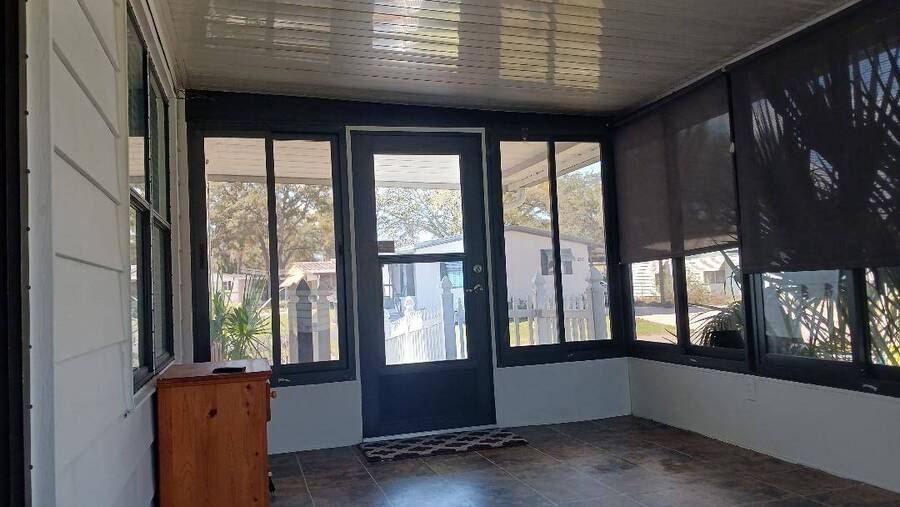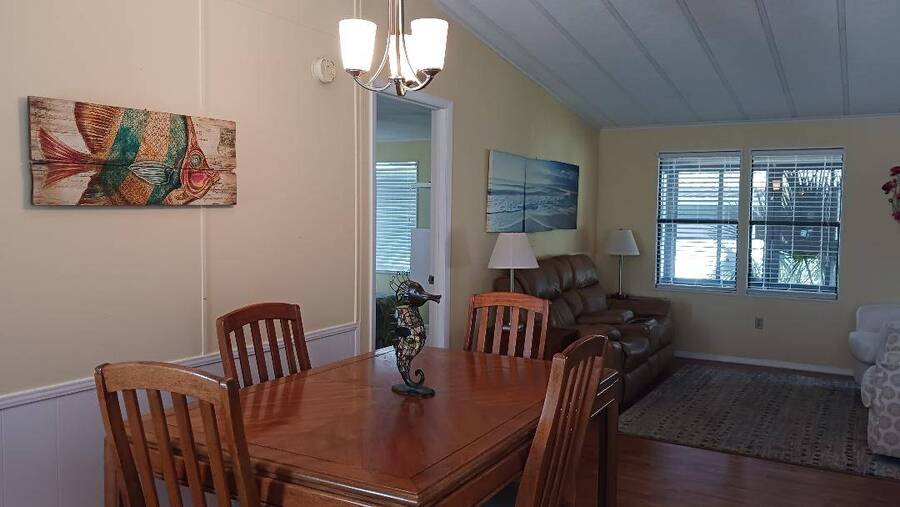Just bring your boat and move right into this 2-bedroom 2 bath furnished home, with over 1K square feet! An open floor plan provides lots of breathing room, and the thoughtful features make everyday living a breeze. A handicap accessible ramp leads directly into the spacious 9 x 16 Florida Room-complete with a window a/c unit-perfect for relaxing year around. A second entrance brings you into a spacious 12 x 16 screen room, which connects to a 10 x 13 shed, housing a washer and dryer, plus ample space for wood working or craft projects. The kitchen entrance features a retractable screen door, allowing fresh air to flow through the lovely dining area, where built-in cabinets provide the perfect place to display cherished collectibles. The tastefully decorated living room is bright and inviting, with sliding glass doors leading right into the Florida Room. Both bedrooms offer oversized closets, and the primary bath features a convenient walk-in shower-perfect for added mobility. Throughout the home, easy-care vinyl plank flooring and ceiling fans add comfort and style. Beyond the home, the community offers a fantastic array of activities from Bingo, line dancing, Poker Club, Veteran's Group Meetings and Karaoke Night. With river access to Lake Griffin, RV and boat storage, billiards and shuffleboard, there is truly something for everyone-including a pet friendly atmosphere. Buyer to assume current Lot Rent $598.06 until April 1, 2026. Don't miss the chance to make this your Florida Forever Home by scheduling your private showing today!