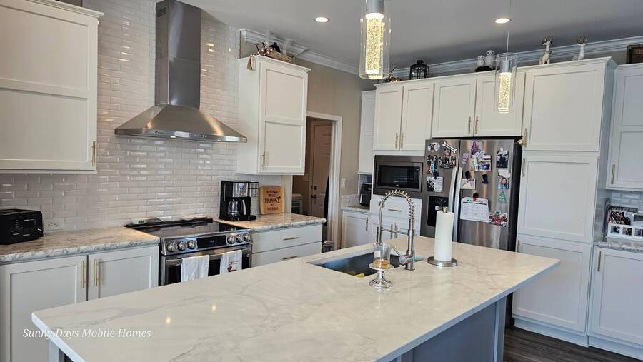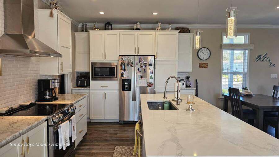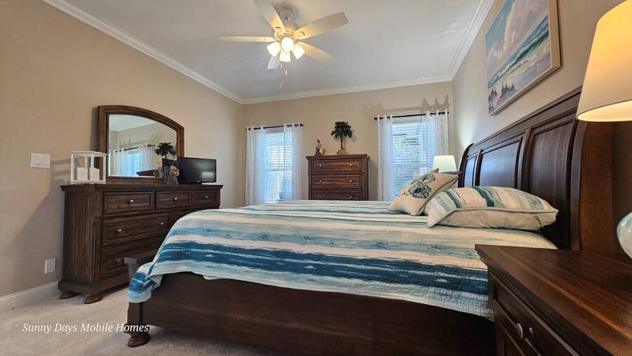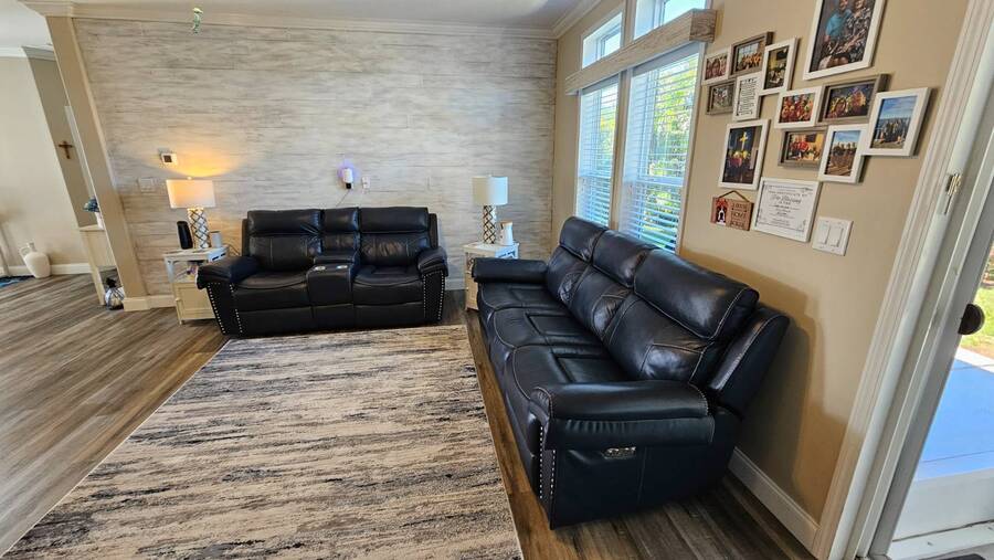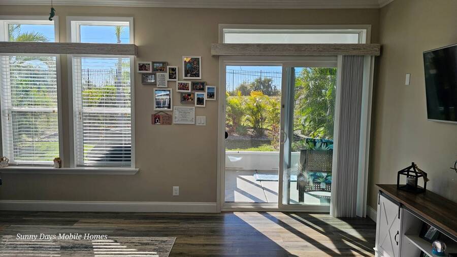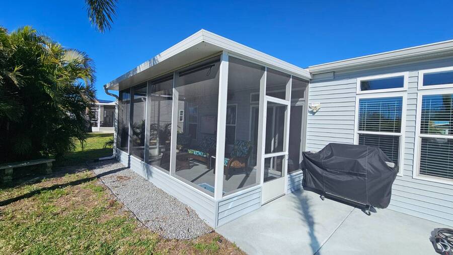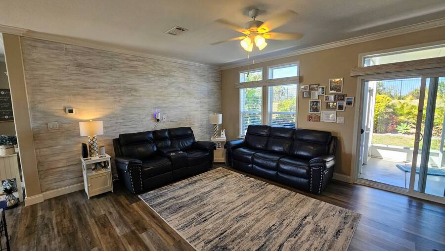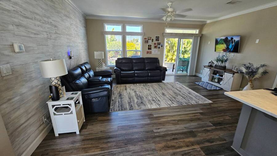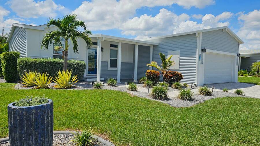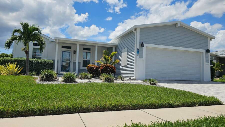 PRICE REDUCTION! Welcome to 2643 Pier Drive located in Riverside Club - Golf and Marina Community a premier club in Ruskin Florida. This 2019 Palm Harbor Ventura Model was a special order and has so many upgrades. Discover the charm of this exquisite dream home! Boasting a generous 1440 sq ft of indoor living space, this residence offers three bedrooms and two bathrooms, nestled in Riverside Club. The home's exterior is adorned with charming curb appeal, featuring vinyl siding, a shingle roof, an attached two-car garage, a front covered porch, driveway pavers and tropical plantings surround the home. As you enter through the front porch, be greeted by high ceilings, crown molding, and stunning vinyl floors. The well-appointed bedrooms offer ample space and closets, while the main bathroom boasts a tub/shower combo and a single sink vanity. Convenience meets style with an indoor laundry room complete with a washer and dryer. Entertaining is a delight in the wide-open floor plan, where the kitchen steals the spotlight. Revel in the chef's dream kitchen with a large center island, quartz countertops and an abundance of cabinet and counter space. The kitchen is equipped with stainless steel appliances, a large deep sink, and a gorgeous tile backsplash, complemented by beautiful glass pendant lights over the island. The grand living room features ample space for a sectional sofa and adorned with large windows allowing plenty of the beautiful Florida sunshine to shine through. The glass door leads out to the back screened lanai, providing a private retreat with scenic views of the lush tropical plantings. The primary bedroom is a retreat of its own, offering an ensuite bathroom with double sinks, a large walk-in shower, built-in cabinets, and a walk-in closet. The entire home is tastefully painted in light tropical tone, enhancing the abundance of natural light that fills the space. This captivating property is being sold Partially Furnished offering you the opportunity to make it your own canvas. This home was ordered with an abundance of upgrades which includes a wood featured wall in the family room, extra large center island in the kitchen with quartz countertop and beautiful white cabinetry and upgraded hardware. The master bath has larger sinks, a laundry room with shelving, a loft in the garage for added storage space. The garage is wired for a generator hook-up and the Generator comes with the home. Living in the Riverside Club Golf and Marina Community, a premier 55+ age-qualified community, grants you access to an array of exceptional amenities where you can enjoy 2 clubhouses, 2 heated pools with Jacuzzis, a riverfront pavilion with a bar and grill, a golf pro shop, a woodworking shop, a crafts building, RV storage, a fishing pier, a boat ramp, and a private marina. The community is pet-friendly with designated dog parks and beautifully maintained green spaces. Recreational activities are abundant, including tennis, shuffleboard, pickleball courts, a fitness room, and a variety of clubs and daily planned events to keep you engaged. The lot rent covers access to these amenities and includes water, sewer, irrigation, trash/recycling, property taxes, and lawn maintenance. Don't miss this opportunity to own a piece of Florida lifestyle in Riverside Club. Schedule your private tour today! Don't miss out on the chance to call this stunning Florida Dream Home yours - it's everything you've imagined and more! All listing information given to us is considered appropriate and reliable, but we always recommend home inspections by independent companies who have a background and thorough understanding of manufactured homes. We cannot guarantee the accuracy of the information given to us or the home's condition. Lot rents are determined by the community office, not our company.