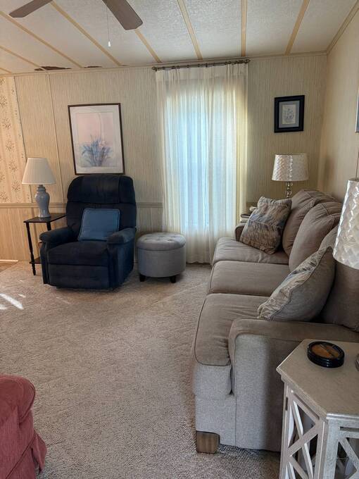 -New Roof & AC- -Gorgeous Canal Lot- -Peaceful screen porch with water views- The open floor plan in this home creates an inviting atmosphere. Large windows allow natural light to flood the living and dining areas, making the space feel bright and airy. The kitchen boasts ample cabinet space, providing plenty of storage and making meal prep a breeze. The master bedroom, quietly positioned at the rear of the house, offers both privacy and tranquility, providing a restful retreat. The front bedroom is a flexible space, currently used as an office but easily adaptable as a guest room to suit your needs. The bathroom has been recently updated, including a new walk-in shower. A screened-in porch at the back of the home provides serene canal views, ideal for relaxing with a cup of coffee or entertaining friends and family in a peaceful outdoor setting. Additional updates include new tie downs and vapor barrier.