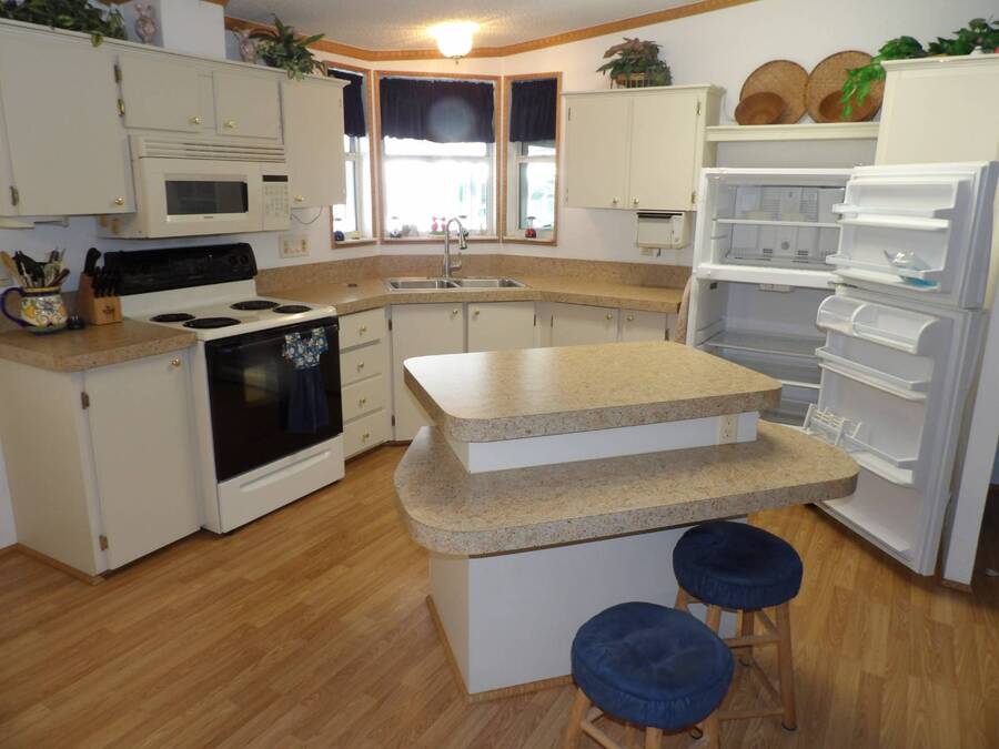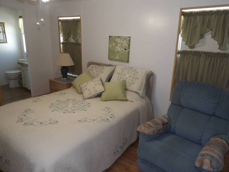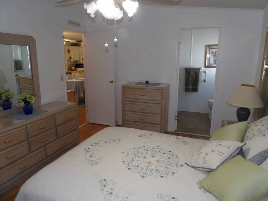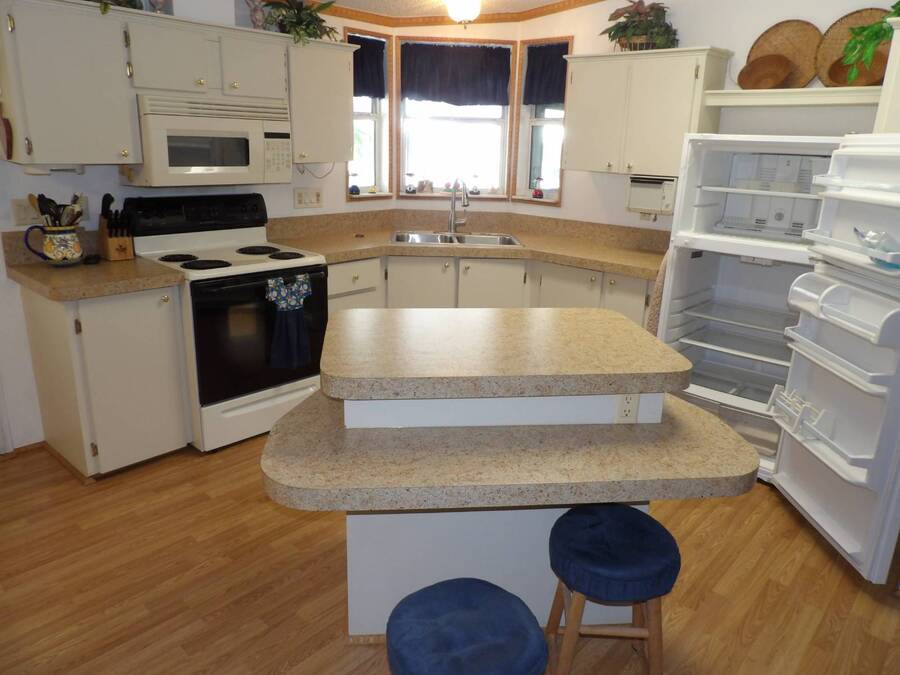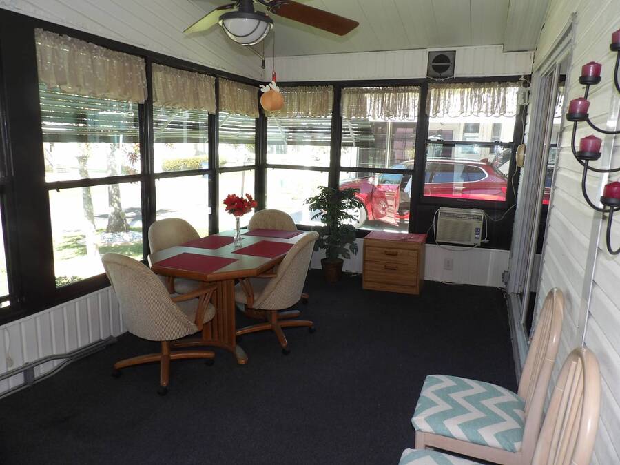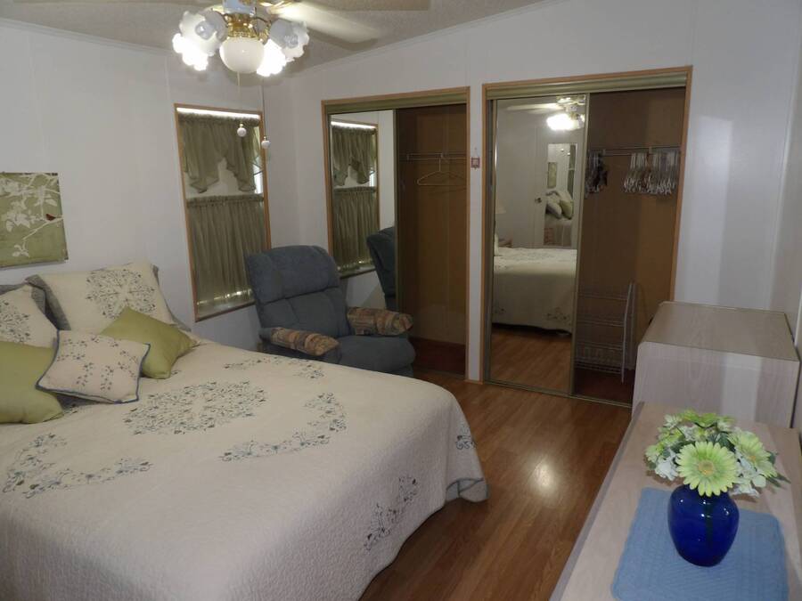 Furnished 2 BR 2 BA homes of Merit with 10 X 20 FL rooms provide 1112 sq ft of living space, and the home offers an open floor plan with multiple upgrades. Outside features include nice curb appeal, aluminum shutters across the front, an 11.5 X 40 carport with an extended 11.5 X 19 storage shed behind, 2 storage sheds in the back, a shingled roof, and a 2024 AC. Inside features include an L-shaped kitchen with a work island and breakfast bar, open into the dining room, a large living room, a wide hallway to the guest bath, and both bedrooms. Inside the walls have been textured and repainted, laminate and tile flooring, inside laundry, 11 X 23.5 master suite with step-in shower, 11 X 13 2nd bedroom, and 4.5 X 7.5 guest bath. All this, plus the home is located with a back gate to the office and amenities. Call today for an appointment to see this cozy gem. Seller is offering a 3-month lot rent with a full price offer