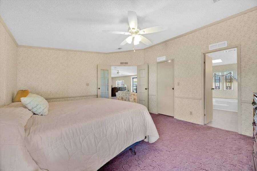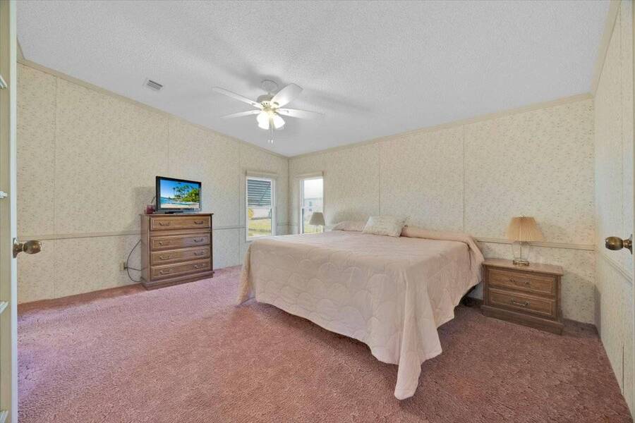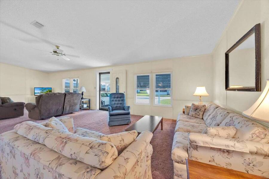 55+ COMMUNITY: SPACIOUS DOUBLE WIDE WITH CANAL VIEWS - FULLY FURNISHED & LOADED WITH EXTRAS Welcome to your Florida retreat in the highly desirable Royal Palm Village Mobile Home Park - a vibrant 55+ community where comfort meets convenience! This immaculate, fully furnished 3-bedroom, 2-bath home offers 1,680 sq ft of beautifully maintained living space and comes CLEAN AND MOVE-IN READY with everything you need to settle in immediately. NEW UPDATES! Option to purchase the home empty if preferred TWO heated pools on the property, not just one Complete fitness room with showers - walk out to a heated lap pool and jacuzzi 5 ceiling fans throughout (master fan includes light with remote) Walk-in shower and bidet in the master bath Walk-in closet in master bedroom Double-wide opening doors into the sunroom North-facing sunroom overlooking the canal with southern side protected by awnings for daytime comfort Garbage disposal in kitchen and self-cleaning oven Three adjustable rolling chairs at the massive kitchen island Abundant kitchen storage with built-in China Cabinet corner unit Built-in, ready-made computer station in the kitchen USB electrical outlets around the bottom walls in the sunroom Fully equipped with linens, pantry items, dishes, glasses, flatware, dishtowels, cookware, and bathroom necessities Step inside and enjoy four reclining couch seats, two televisions, a trundle bed, linens, a patio set, and a spacious, gadget-friendly kitchen. The massive kitchen island is perfect for cooking or entertaining, while the front-loading washer and dryer (2019) bring modern convenience to your daily routine. Unwind in your spa-inspired master bath with dual vanities, walk-in shower, bidet, and a Jacuzzi tub, or relax in the expansive Florida room overlooking the tranquil north-facing canal - ideal for comfortable daytime living without harsh sunlight. With luxury vinyl plank flooring, remote-controlled ceiling fans, and views of nature, this is your sanctuary. Updates include a rubber roof (2019), vinyl siding (2019), and AC replacement (2014). Plus, a whole-house Kinetico water treatment system with reverse osmosis ensures fresh, clean water throughout. Royal Palm Village offers resort-style amenities like two heated pools, hot tub, fitness center, shuffleboard, and a dog park. Engage in an active social life with bingo, dances, and clubs. Conveniently located just minutes from Lake Eva Park, Southern Dunes Golf Club, AdventHealth facilities, and shopping at Publix, Walmart, and ALDI. Lot rent is $847/month and includes water, sewer, trash pickup, and full access to community amenities. Pet-friendly with restrictions. This home won't last long - schedule your showing today! ======================================================================= ESPAÑOL: Paraíso Junto al Canal | ¡LIMPIA Y LISTA PARA MUDARSE! | Totalmente Amueblada COMUNIDAD 55+: CASA DOBLE AMPLIA CON VISTA AL CANAL - TOTALMENTE AMUEBLADA Y EQUIPADA ¡Descubra su paraíso en Florida en el prestigioso Royal Palm Village Mobile Home Park, una comunidad activa para mayores de 55 años! Esta hermosa casa doble de 3 habitaciones y 2 baños ofrece 1,680 pies cuadrados de espacio habitable limpio y listo para mudarse, con todos los muebles y artículos esenciales incluidos. ¡NUEVAS ACTUALIZACIONES! Opción de comprar la casa sin muebles si lo prefiere DOS piscinas climatizadas en la propiedad, no solo una Sala de gimnasio completa con duchas - salida a piscina climatizada y jacuzzi 5 ventiladores de techo (el ventilador principal incluye luz con control remoto) Ducha tipo walk-in y bidé en el baño principal Armario amplio (walk-in) en el dormitorio principal Puertas de apertura doble ancha hacia la sala Florida Sala Florida orientada al NORTE con vista al canal y lado sur protegido por toldos para mayor comodidad durante el día Triturador de basura en la cocina y horno autolimpiante Tres sillas ajustables y giratorias en la isla de cocina Abundante almacenamiento en