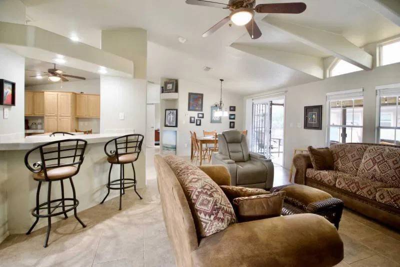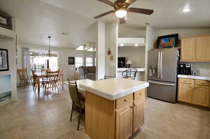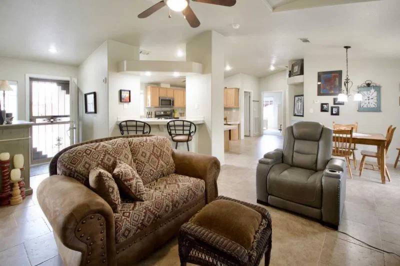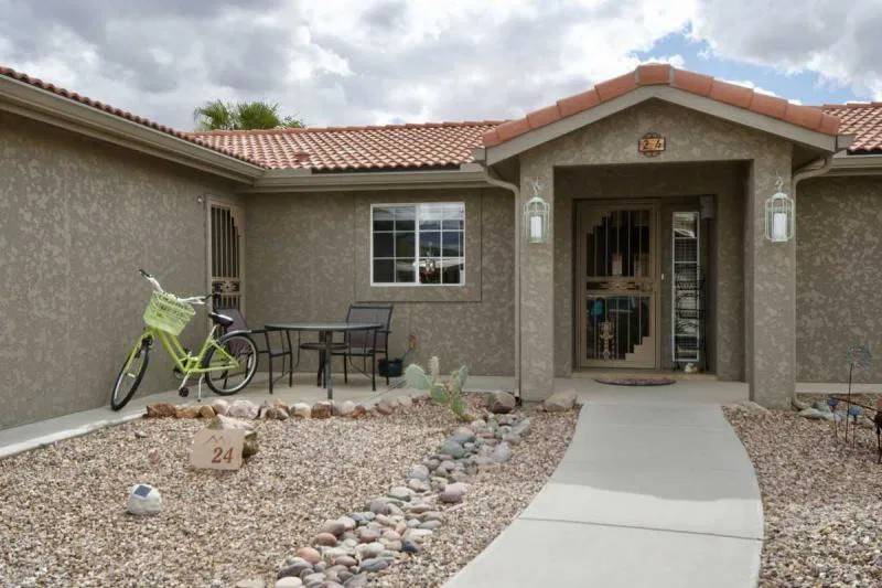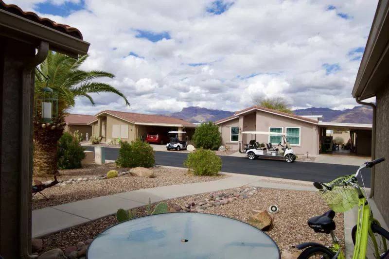 #24 Beautiful Home in Premier 55+ Gated Community with Stunning Mountain Views Welcome to this charming 2-bedroom + den, 2-bathroom home nestled in a sought-after 55+ active adult gated community. This home offers a spacious open floor plan with tiled flooring throughout the living areas and cozy carpet in the bedrooms. Enjoy breathtaking Superstition Mountain views from the front patio, kitchen window, and bedroom, creating a serene backdrop for everyday living. The large chef's kitchen is a dream, featuring matte bronze appliances, an abundance of cabinetry, a prep island with an attached dining counter, and a built-in desk-perfect for organization and meal prep. The primary suite is a private retreat with an ensuite bath, double sinks, a walk-in closet, and a walk-in shower. The home also includes a spacious screened-in back patio with a relaxing water feature, a private backyard, and an attached 23'6" x 19'4" 2-car garage. Additional conveniences include a laundry room with washer and dryer and an RO water system. Mostly furnished, this home is move-in ready! Located in a vibrant resort-style community, residents enjoy an array of top-tier amenities, including: 10 pickleball courts, 4 tennis courts, bocce ball, shuffleboard, and a heated pool Community center with billiards, card room, tech room, and salon Weekly entertainment on a large outdoor patio with stage Leisure center with craft/ceramic rooms, state-of-the-art fitness center, and library Full-time activities director and staff Pet-friendly environment with 3 dog parks and 6 miles of scenic walking trails Experience the best in active adult living with an engaging social calendar, world-class amenities, and a beautiful home in a prime location. Don't miss out-schedule your showing today!