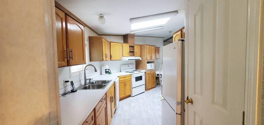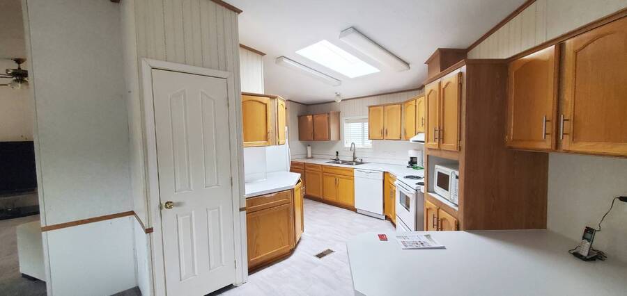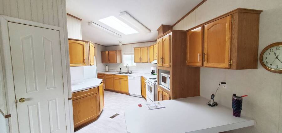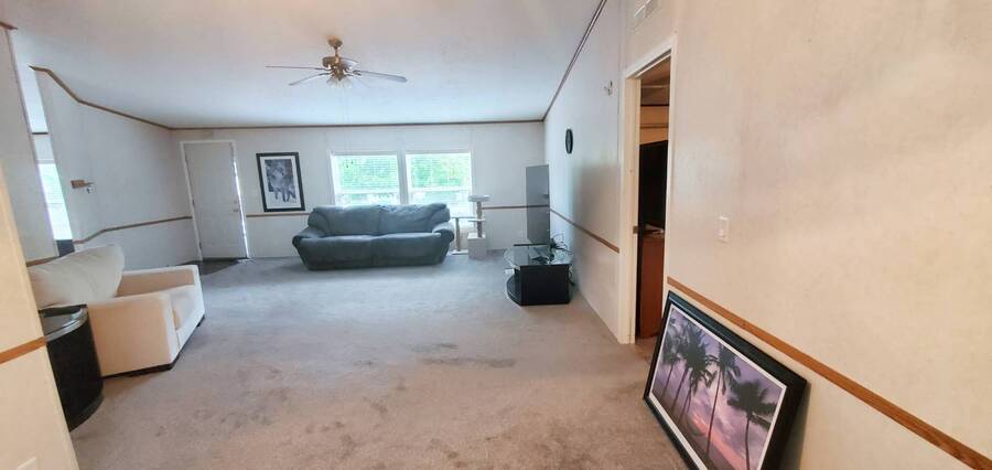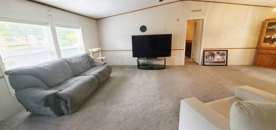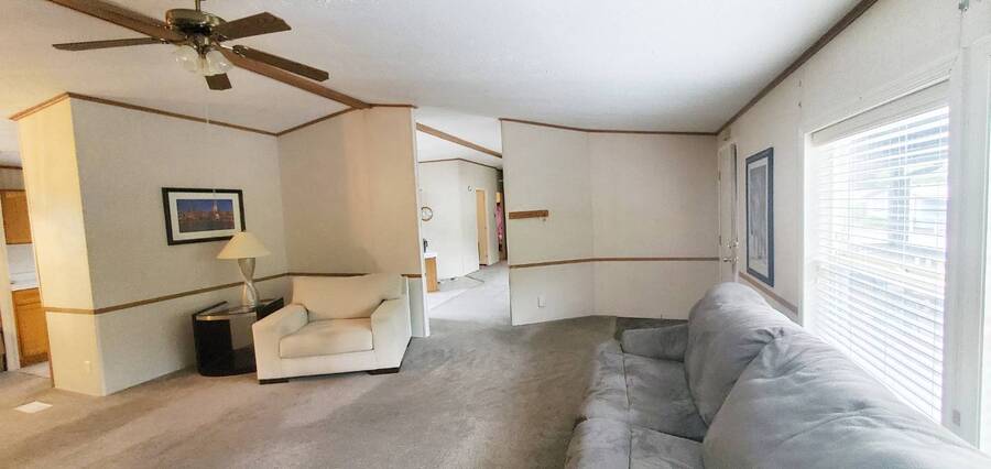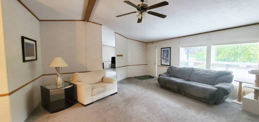 Welcome home to this beautiful, spacious 3 bedroom, 2 bath, Redman. This is a manufactured home in a park and NO land is involved with the sale of this home. This wonderful home offers enough room for everyone to be comfortable. With approximately 1782 SF of space and split living areas, it is the perfect option for many different scenarios. Large bright living areas both feature paddle fans and newer carpet. Kitchen features skylight, eating bar, pantry, an abundance of cabinets, refrigerator with bottom freezer and large stainless sink with upgraded faucet and garbage disposal. Main bedroom features a paddle fan, large closet and en-suite bathroom with new vanity, tile flooring and tiled walk in shower. Living room measures approximately 16x16.5', family room 22x15', dining room 12.5x10', kitchen 22x13', main bedroom 16x16.5 with 13x10' en-suite bath, 2nd bedroom 10x11' and 3rd bedroom 10x11'. Large laundry area comes complete with washer, dryer and has plenty of room for extra refrigerator and / or freezer. Easy care landscaping. Split parking areas. Security doors on front and back door. Front deck measures approximately 5.5x7', front awning 6.5x8.5', rear deck 3x4', carport 11x17' and 11x7' storage building. Furnace approximately 3 years old. Water heater approximately 3 years old. Carpet approximately 2 years old. Heat pump approximately 1 year old. Super Good Cents Construction. Heat pump for economical heating and cooling. Pet policy: 2 pets to 20 lbs ea. Located in highly desirable Giadanj Lake Estates a beautiful all age community that is close to bus, freeway, Max, shopping, restaurants and so much more. Base park rent for this unit is $1000 per month.