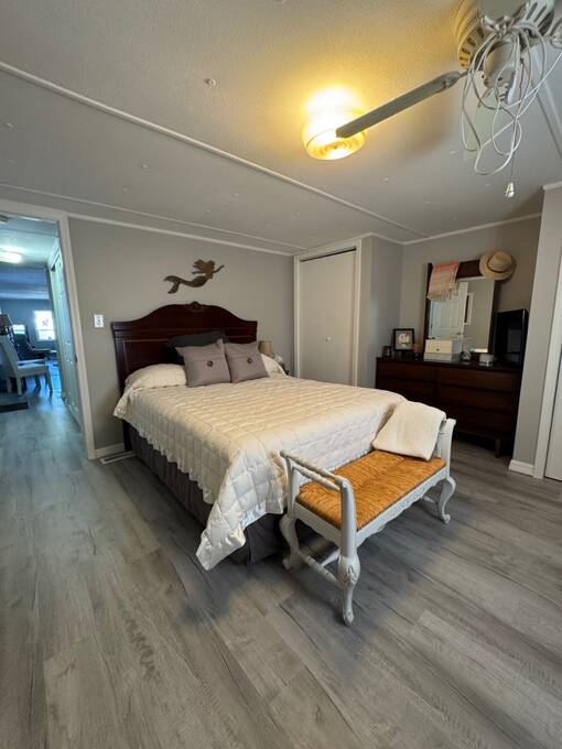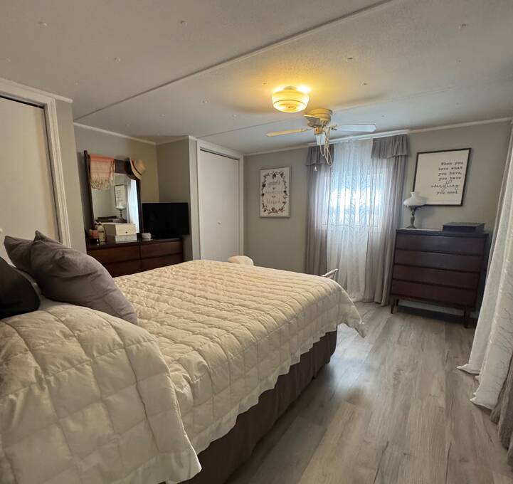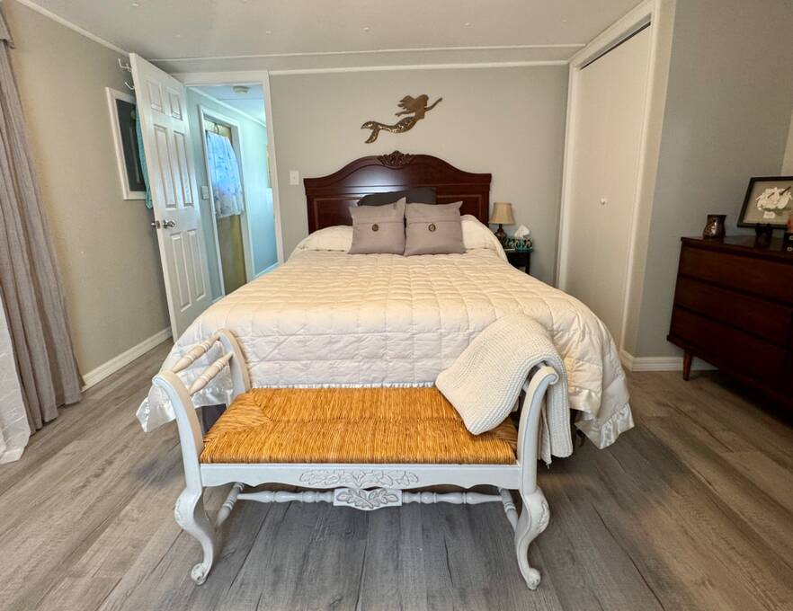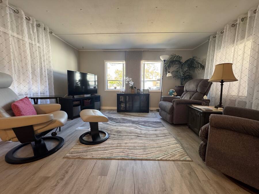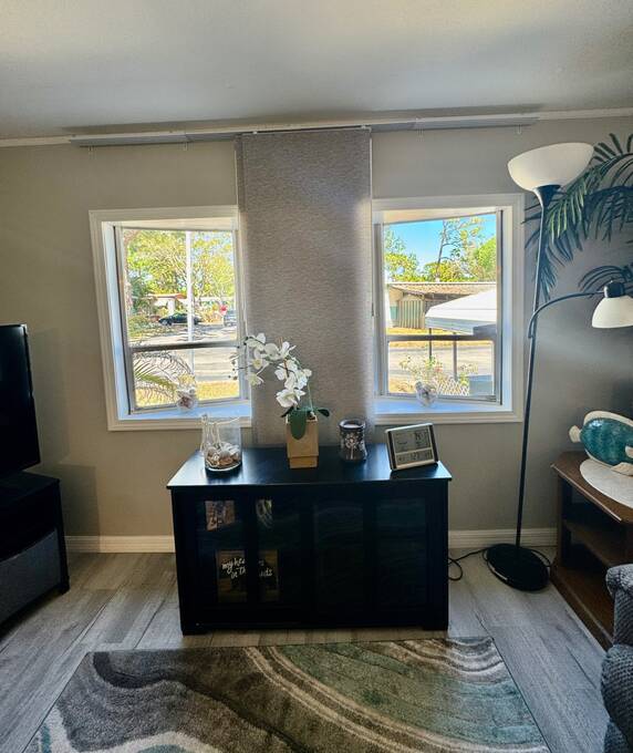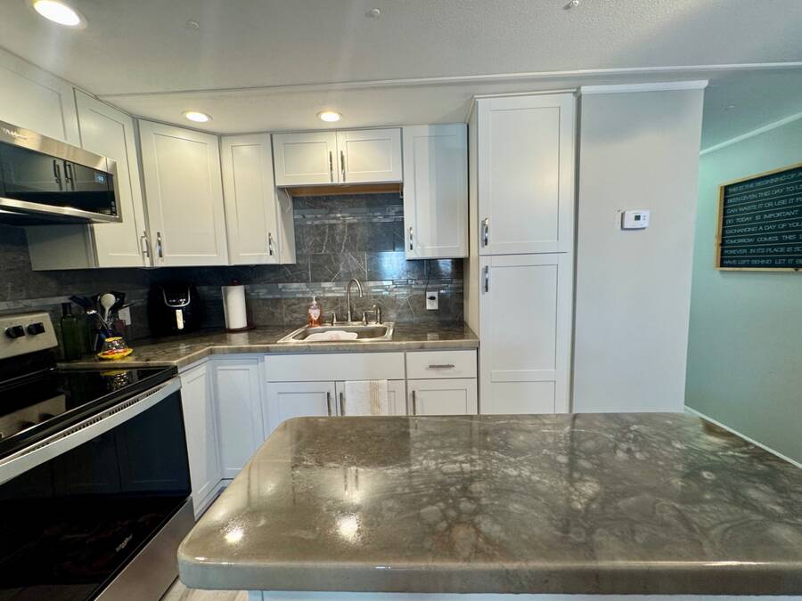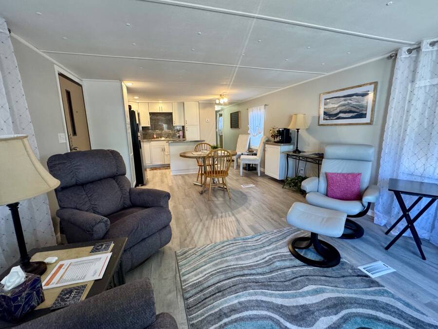 WHISPERING PINES ADULT PARK - MUST SEE THIS HOME - Call to view this attractive, recently RENOVATED 2 bedroom, 1 bath TURN-KEY home. This residence sits on a desirable lot within Whispering Pines. The Seller is leaving it tastefully decorated with ALL home and bathroom essentials! Notice the stylish provisions and fixtures! The interior includes DRYWALL updates with freshly painted walls, sub-floor repairs, along with entire interior laminate flooring updates! ALL NEW modern kitchen is complete with refrigerator, glass top stove/overhead microwave, Kitchen island and epoxy countertops, new cabinets & hardware, coffee bar, AND all new lighting and fixtures! WOW! Bathroom matches the kitchen updates with vanity, epoxy countertops, lighting, and fixtures, toilet update, too. Grande tiled walk-in shower with grab bars and inset shelving for showering essentials.PLUS: NEW Central AC/HEAT/THERMOSTAT, PVC Plumbing updates to include shut off valves, TANKLESS WATER HEATER, 200 amp electric panel. This unit does offer a private laundry room with a washer and dryer and a utility sink. Don't forget about the newer 8x10 SHED, covered carport with driveway offering off-street parking. Beyond the park, explore many attractions along the coast of beautiful Florida: Cape Canaveral, Kennedy Space Center, Merritt Island, white sandy beaches, and more! Don't wait, Call today! OUT OF TOWN!?!? NO WORRIES, WE CAN DO VIRTUAL SHOWINGS AND WE CAN DO PAPERWORK REMOTELY. FEEL FREE TO CALL, TEXT, OR EMAIL ME. I LOOK FORWARD TO HELPING YOU CALL YOUR NEW HOUSE A HOME! Whispering Pines is an ADULT park. All new owners must complete the park application for approval. Stop by the local office. The current lot rent is $673. This fee offers use of the clubhouse, shuffleboard, and horseshoe pit. Park bills for trash and pass-through tax (Approx. $26 per month) The Park is responsible for all common areas. Utilities are the buyer's responsibility; Water is with the City of Titusville, FPL power company. Animals permitted with park approval. Background check is completed on each owner. Two-owner occupancy MAX per unit. $50.00 app. fee. No renting permitted. All listing information is deemed reliable but not guaranteed and should be independently verified through personal inspection by appropriate professionals. We do not and cannot guarantee or warrant the accuracy of this information or the condition of this property. Measurements are approximate. The buyer assumes full responsibility for obtaining all current rates of lot rent, fees, and pass-on costs. Additionally, the buyer is responsible for obtaining all rules, regulations, pet policies, etc., associated with the community, park, or home from the community/park manager. We are not responsible for quoting of said fees or policies.