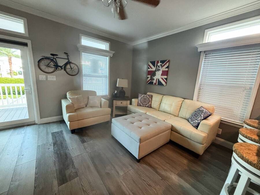 Have it all! Beautiful Key West style bungalow- fully furnished, all utilities. Available to rent until December 15, 2025, for the off-season rate of $2,100. Minimum 3 month rental. Amenity packed 55+ age restricted resort-beautiful pool, pickleball, state of the art gym, cabana and bar. Just bring your clothes!! Absolutely NO PETS Utilities include internett, but not cable.