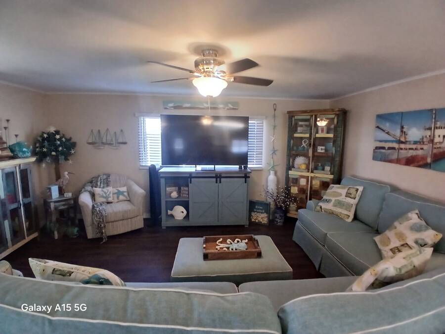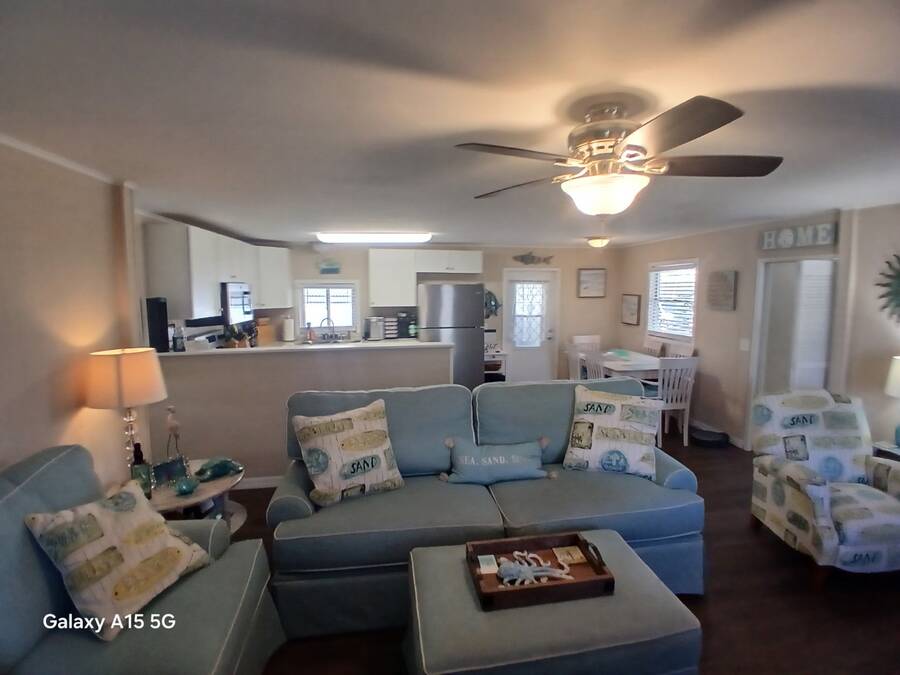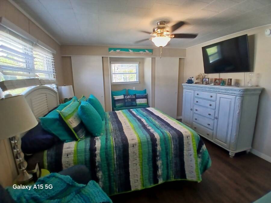 Charming Mobile Home in Bayside Waters - A 55+ Community in Clearwater, FL** Welcome to this peaceful and serene mobile home located in the desirable 55+ community of Bayside Waters in Clearwater, FL. Nestled on a beautiful canal, this home offers relaxing water views and a tranquil atmosphere, perfect for bird watching and enjoying nature. This well-maintained home features two spacious bedrooms, one full bathroom, and one convenient half bath. The primary bedroom includes three closets, providing ample storage space. Laminate flooring runs throughout the entire home, offering a modern, low-maintenance feel. Inside laundry adds convenience to your everyday living. The two-tiered deck is the highlight of this home, offering outstanding views of the canal, making it an ideal spot for morning coffee or evening sunsets. Whether you're enjoying the views or hosting a small gathering, this outdoor space is sure to impress. The home is being sold partially furnished, with the option to negotiate additional furniture if desired. The kitchen boasts sleek stainless steel appliances, ready for all your cooking needs. Additionally, there's a built-on room with endless possibilities - use it as a den, office, or extra storage space. This is an exceptional opportunity to own a piece of paradise in a sought-after community. Schedule a tour today and experience the peaceful lifestyle Bayside Waters has to offer!