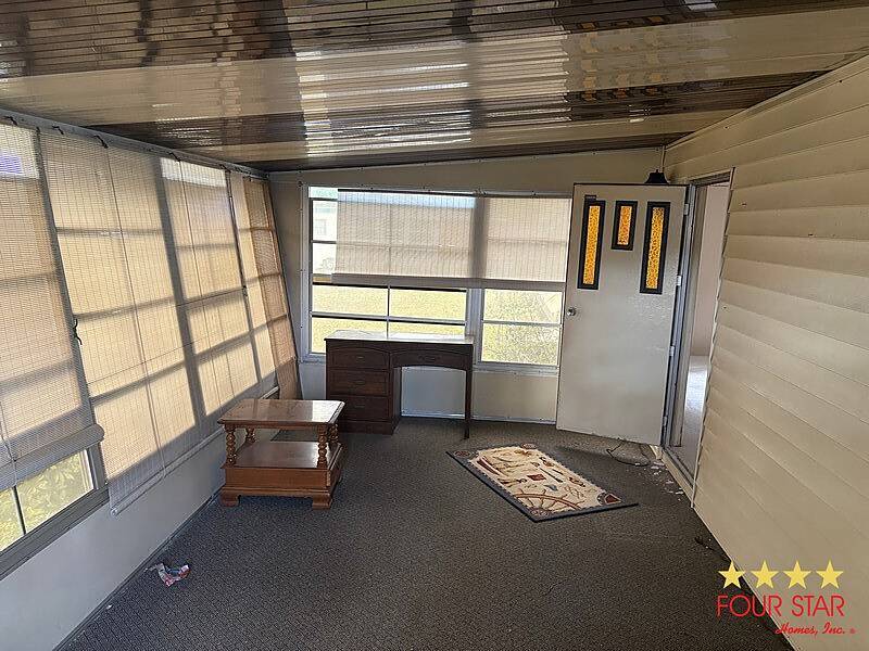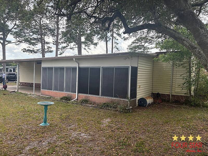 This inviting 2-bedroom, 2-bathroom home offers a spacious living room filled with natural light and new carpeting, adaptable to any furnishing style you prefer. The open floor plan leads to a generous kitchen with abundant cabinet space and a breakfast nook. All appliances are included, such as a refrigerator, range, and dishwasher. The kitchen features beautiful hardwood-look vinyl flooring for easy cleaning, while the living room boasts new carpeting. The home has a split bedroom design, with the primary bedroom located next to the kitchen, offering ample space for a king-sized bed. The primary bathroom includes a walk-in shower, double vanity, and a sizable closet for linens. On the opposite side of the house, the second or guest bedroom includes a built-in desk with plenty of drawers and shelves for your office needs. Both bedrooms have ample closet space. The second or guest bathroom features a shower and tub combo, providing plenty of space for guests. Adjacent to the living room is a large Florida room, one of two in this home, both with outside access. These rooms can serve as a third bedroom, office, or family room, offering abundant natural light from the Florida sun. The second Florida room includes a built-in shed that doubles as a laundry area. The home also features a carport and central AC, perfect for escaping those hot Florida days. Located in Meadowlea Village in Deland, Florida, the community offers numerous amenities, including a clubhouse, horseshoes, library, shuffleboard, swimming pool, RV, boat storage, planned activities, and pet allowances for up to three dogs, any weight, no aggressive breeds. Motorcycles are welcome too. The monthly lot rent of 960.00 covers lawn care, water, sewer, trash, and cable. Dont hesitate to contact Allan or Carmon to schedule your private showing, as this home, with all its amenities, is sure to sell quickly.