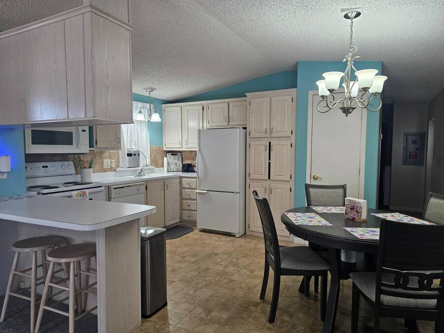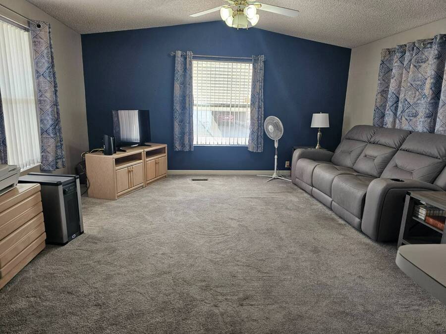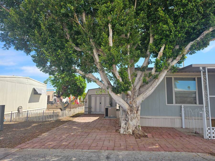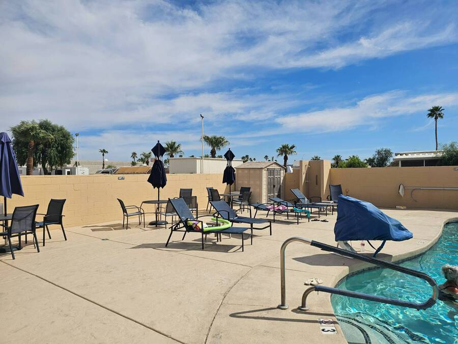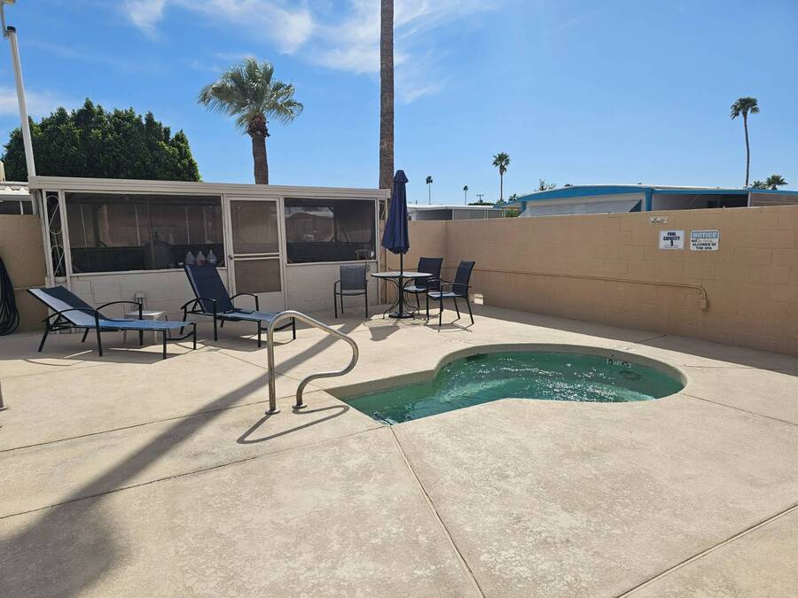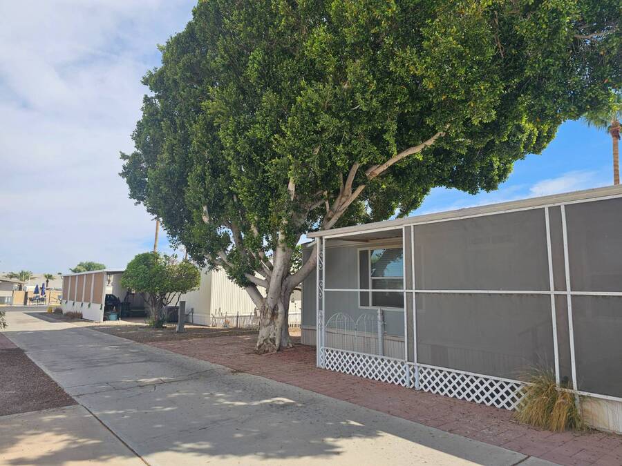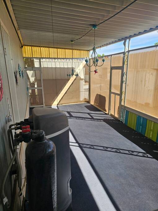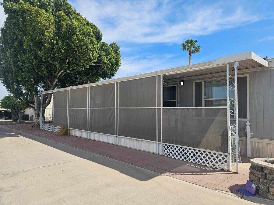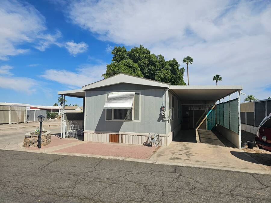 NEW PRICE!! 55+ Capri MHP. Very well-maintained 16 x 64 Redman Modular home, Moved in ready! Furnished! Just bring your clothes. Largest 2 bed, 2 bath single wide built. Spacious living area,roomy kitchen, large primary, ensuite bath, and walk-in closet. 35k in recent improvements. New vinyl plank flooring in bedrooms in 2022. New Aerus water system (17k) in 2022. New stove 2023. The AC unit was serviced with a new motor installed in 2025. Primary has a newer Queen adjustable bed. New fans and lights in bathrooms, and new toilets were replaced in 2022. Gas furnace and hot water tank. Furnace serviced 2023 and has not been used since. LG Washer and Dryer new in 2022. Solar system installed in 2023 for electrical use savings! Home has covered parking and an enclosed Arizona room on east side and covered deck area on west side to watch the world go by in comfort. 8x10 Storage shed. Lot rent includes trash payment. Park provides water and Sewer. Park amenities include Pool, shuffleboard, library, laundry and exercise room. Close to shopping, hospital/medical and parks.