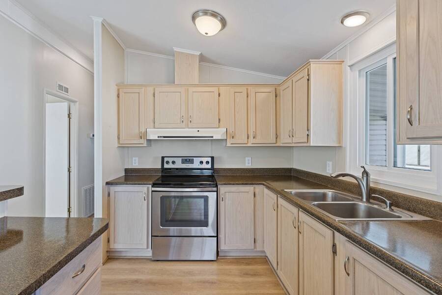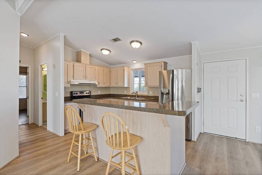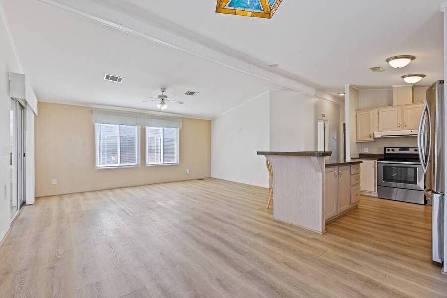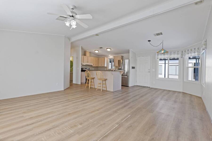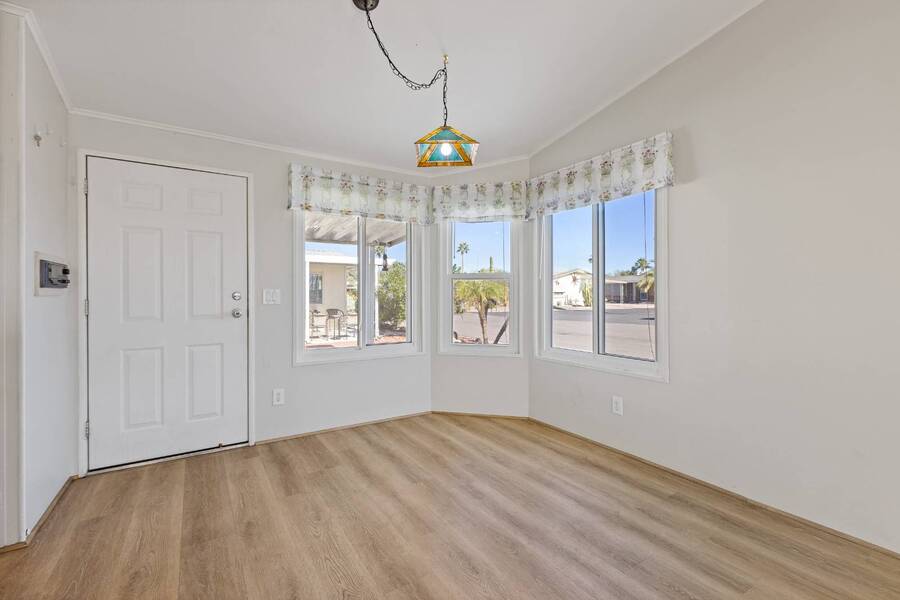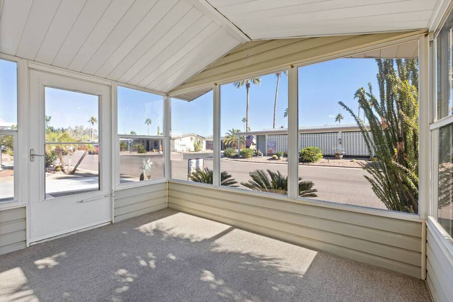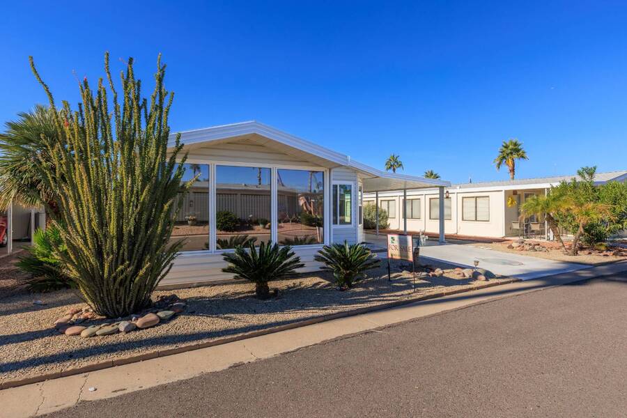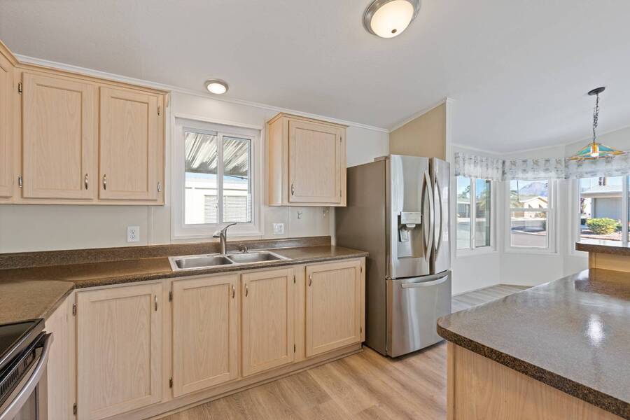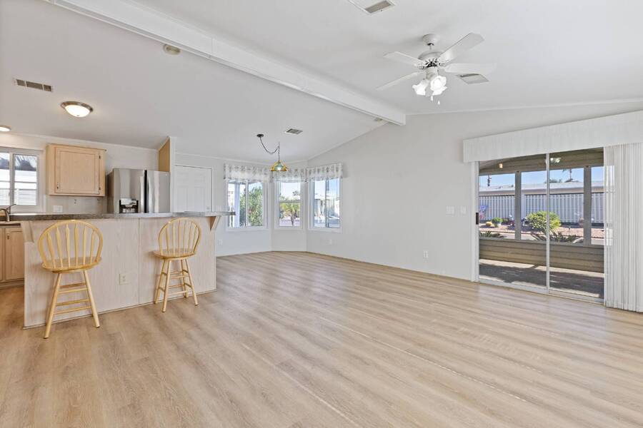 Step into this beautifully updated home featuring an open floor plan, vaulted ceilings, and stylish laminate plank flooring throughout. The modern kitchen boasts stainless steel appliances, perfect for cooking and entertaining. Enjoy breathtaking mountain views from the all-seasons Arizona room, complete with new windows for year-round comfort. Spacious bedrooms and updated bathrooms provide a relaxing retreat. Don't miss this stunning home-schedule your showing today! Experience Thesman Communities Lifestyle, we are an active 55 plus community where luxury meets affordability. For over 40 years we have set the standard with world class amenities and year-round activities. Our community is a 24-hour gated community, with a beautiful clubhouse including ballroom, library with computers and individual rooms for cards, billiards, arts & crafts and fitness center. Enjoy outdoor amenities heated pool & spa with cabanas, community lake, BBQ area, pet park, sport courts for pickleball and shuffleboard. Our activities director assures a full calendar of social and recreation events. Our shuttle bus makes it easy and convenient to attend sporting and special events, plus local shopping. Whether you want to relax or stay active our vibrant communities offer everything you need to enjoy life to the fullest. Discover Thesman Communities and start living the Thesman Lifestyle today!