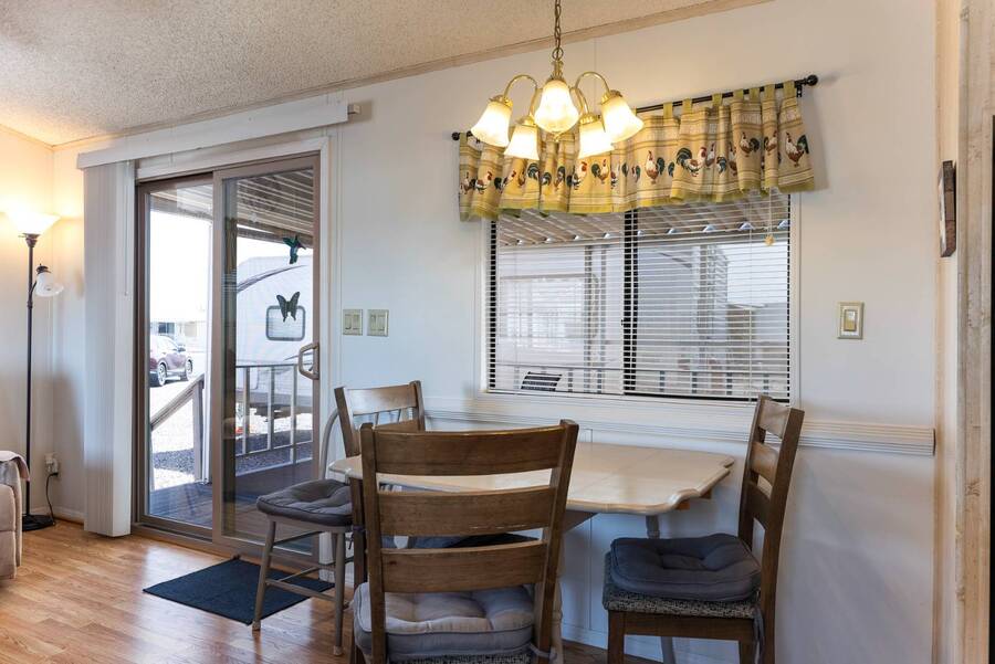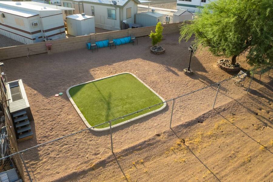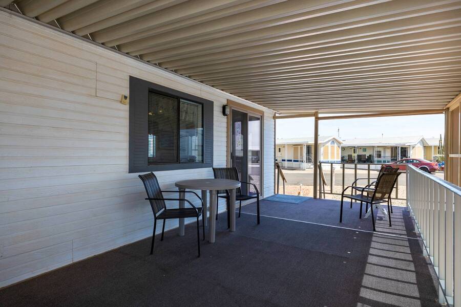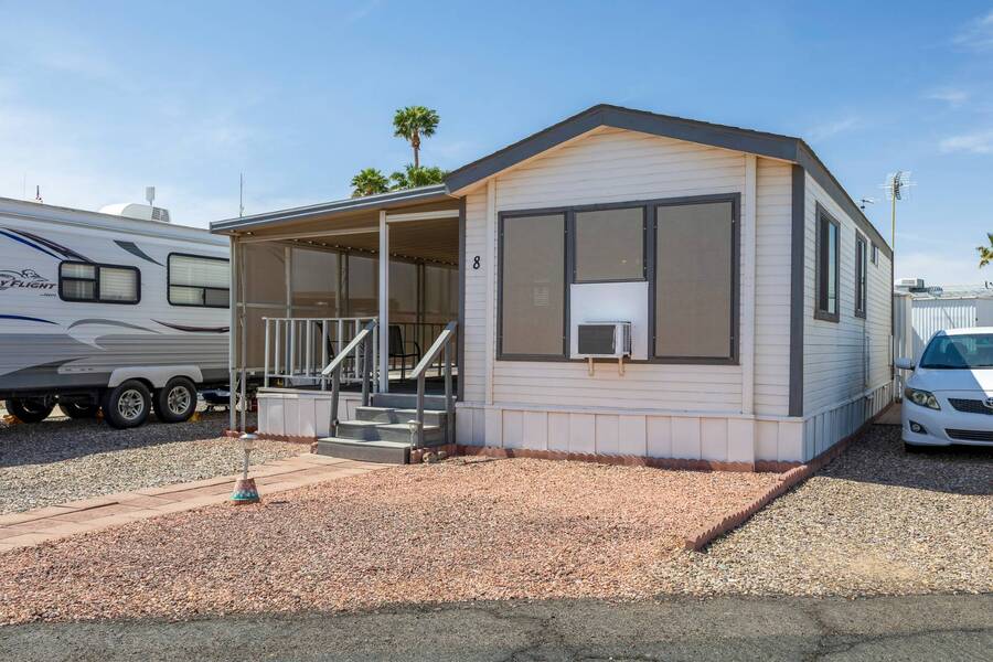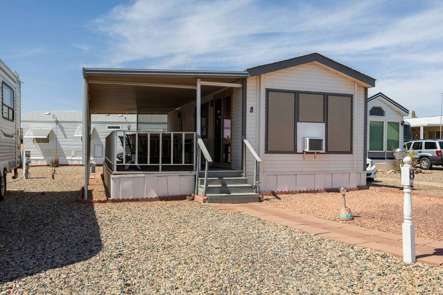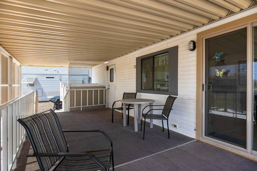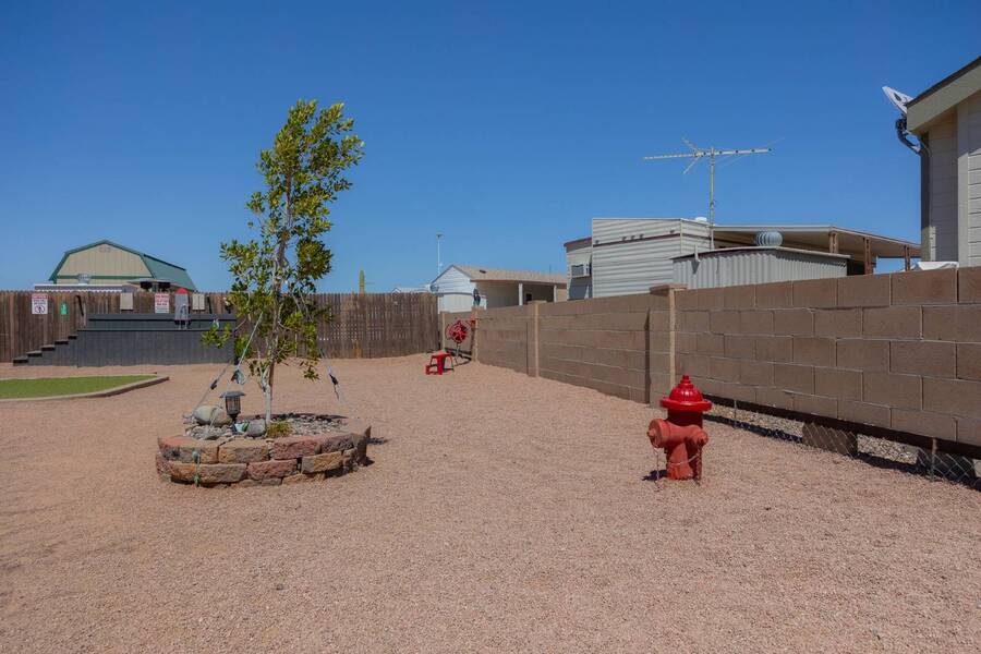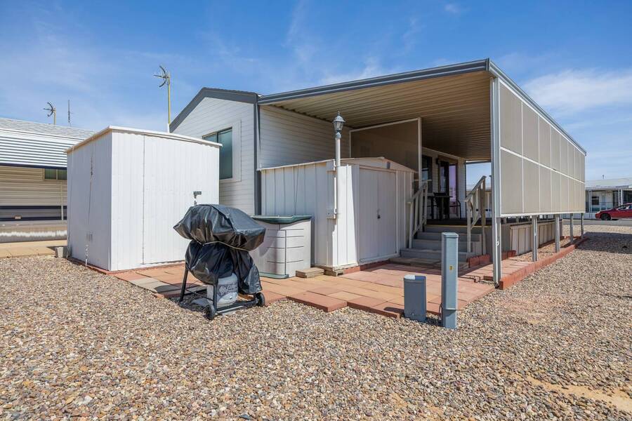 Spacious and well-maintained park model located in a vibrant 55+ desert community, just steps from the clubhouse and pool. This clean, move-in ready home features modern touches, an oversized deck for outdoor living, and comes equipped with a washer, dryer, and extra refrigerator. Three storage sheds provide ample space, and there's plenty of room for parking. Enjoy all the amenities this active adult community has to offer, including off-road trails, pickleball, a dog park, sewing clubs, and more. A perfect blend of comfort, convenience, and community!
