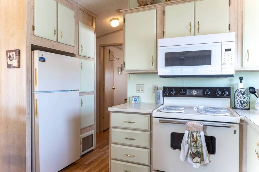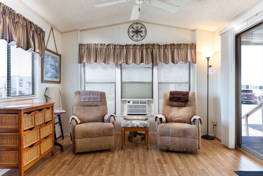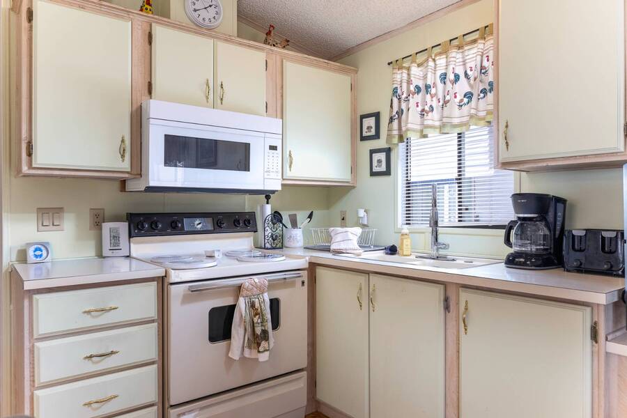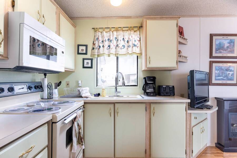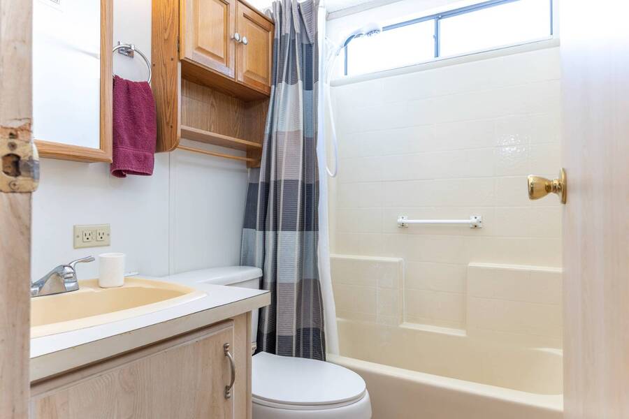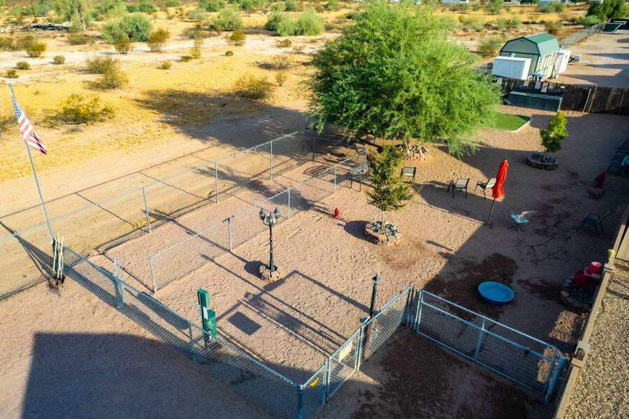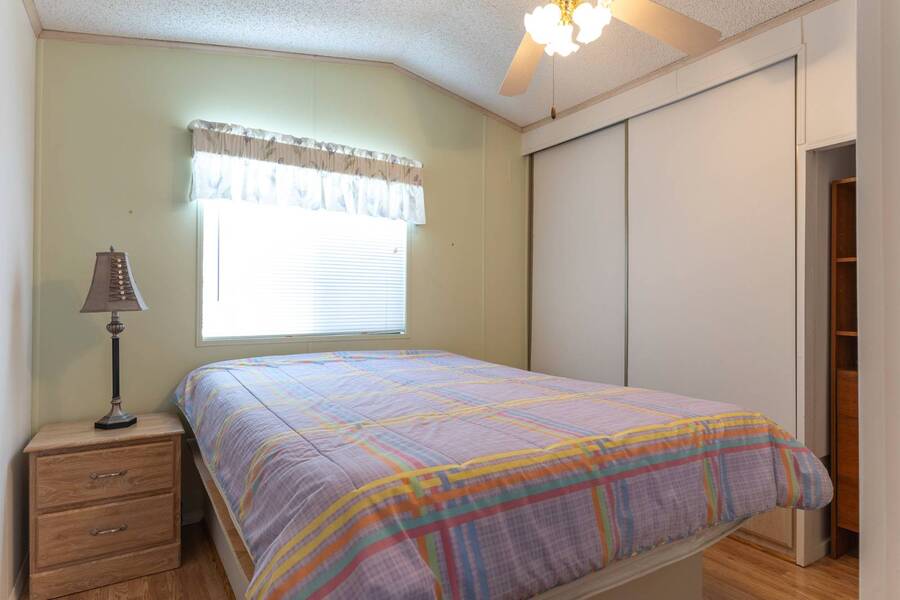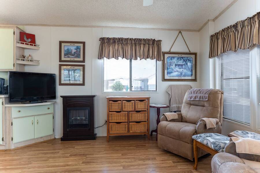 Spacious and well-maintained park model located in a vibrant 55+ desert community, just steps from the clubhouse and pool. This clean, move-in ready home features modern touches, an oversized deck for outdoor living, and comes equipped with a washer, dryer, and extra refrigerator. Three storage sheds provide ample space, and there's plenty of room for parking. Enjoy all the amenities this active adult community has to offer, including off-road trails, pickleball, a dog park, sewing clubs, and more. A perfect blend of comfort, convenience, and community!