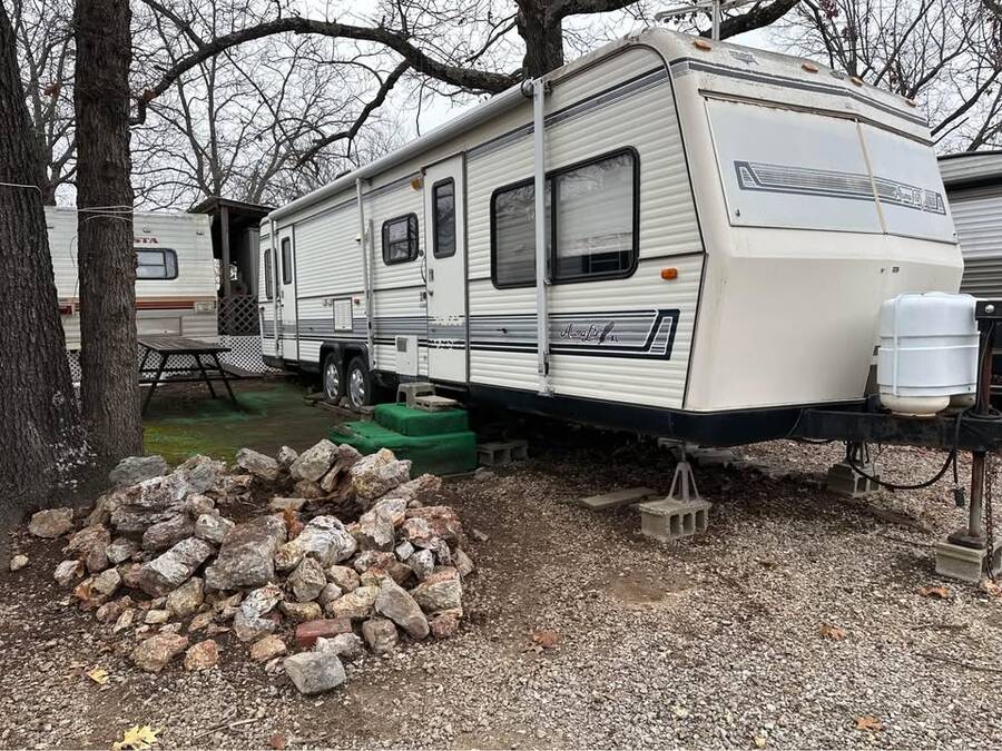 Place to destress and go fishing, swimming etc. come check out my 1989 Aluma Lite XL for a low price of $10,000. A cozy one bed and one bath 32ft RV located in Fishing Tales RV Park. We are located a half mile from MO favorite park, Bennet Springs.