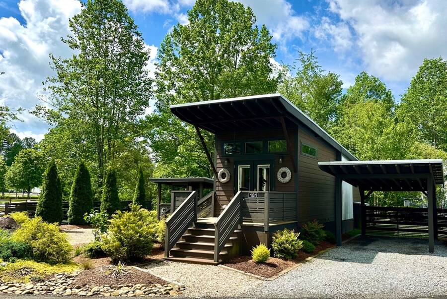 Nestled within the serene and picturesque community of The Village by Simple Life, 181 Drifting Brook Lane is more than just a home – it’s a lifestyle upgrade. Built in 2020 with the popular Clayton Wedge floorplan, this 399 sq ft gem is thoughtfully designed to maximize comfort and functionality.