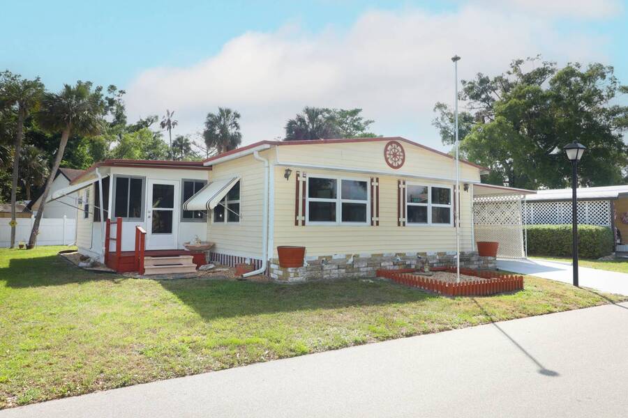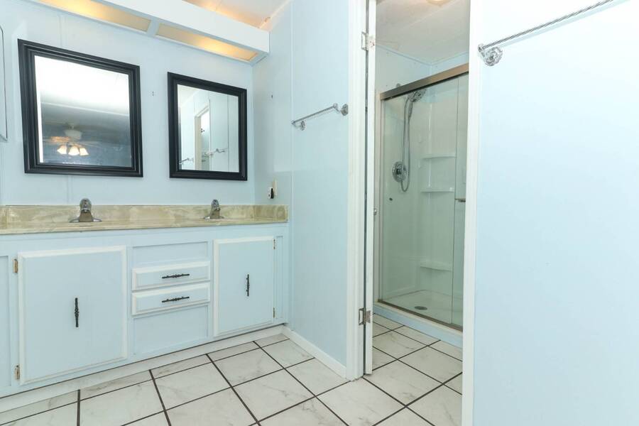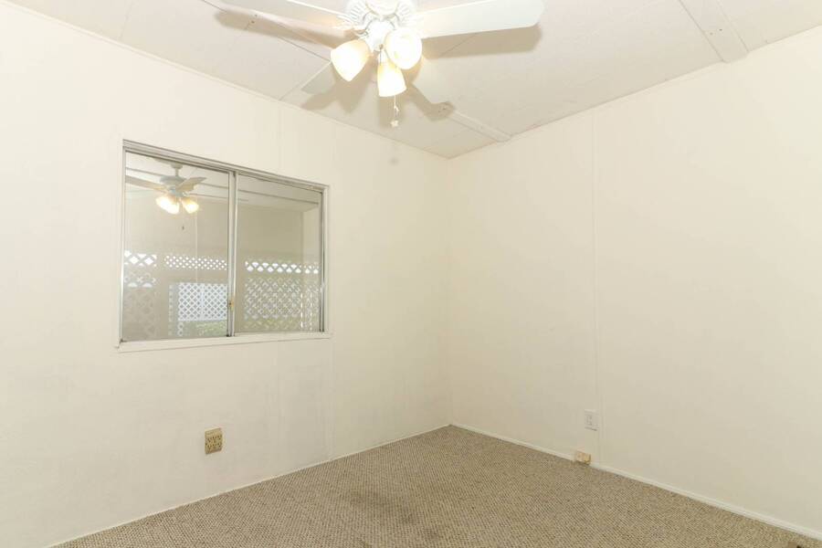 HACIENDA VILLAGE 55+ 3 bedroom/2 bath with spacious floor plan, extra room with separate A/C/Heat- cute little tiled porch floor. Newer front windows, 2 storage sheds. Hacienda Village is a Legacy Community. Amenities include: Pickle Ball, Small Putt, Putt golf course, doggy park; tiki Huts, some with grills, 2 pools. Recreation Hall (Rec Hall has full kitchen; exercise room, pool tables and more).Clubhouse, Pool plus full kitchen; meeting room and more. Conveniently located close to major highways, doctors, restaurants, shopping & more. Monthly rent is $1075.00