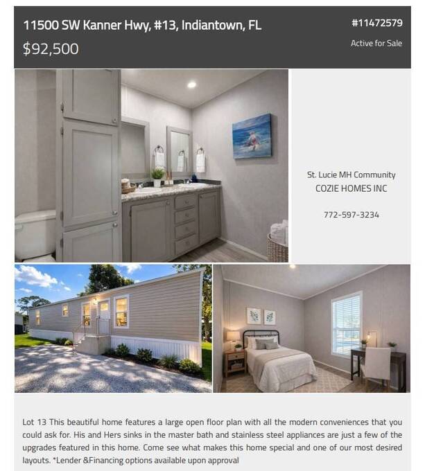 Lot 13 Step inside and fall in love with this brand-new 2025-built manufactured home, offering the perfect blend of comfort, efficiency, and modern style. With 784 sq. ft. of thoughtfully designed space, this home delivers everything you need-whether you're just starting out, simplifying your lifestyle, or looking for a smart investment. Home Features 2 spacious bedrooms designed for privacy and comfort 2 full bathrooms with contemporary finishes Open-concept living and kitchen area, perfect for everyday living and entertaining Brand-new construction - never lived in! Energy-efficient appliances and fixtures to help reduce monthly costs Modern, stylish finishes throughout the home Primary suite complete with its own private bathroom This home is truly the ideal fit for first-time buyers, downsizers, or anyone seeking a low-maintenance lifestyle without compromising on quality. Why You'll Love It Enjoy the peace of mind that comes with owning a new, move-in-ready home, designed with durability and comfort in mind. Everything is fresh, clean, and ready for you to make it your own. Ready for Your Tour! Don't wait-homes like this don't stay on the market for long. Schedule your tour today and see why this cozy, modern home is the perfect place to start your next chapter. Priced to Sell - Don't Miss Out! This listing includes a combination of real photography and AI-enhanced staging. Home appearance and furnishings may differ in person.