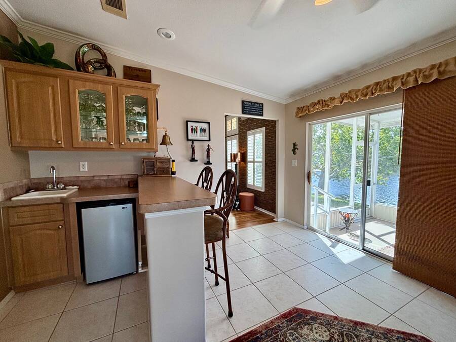 Step into the sunroom a serene retreat just off the primary suite complete with a sleek wet bar and sliding glass doors that open to a screened-in lanai. Imagine sipping your morning coffee or evening cocktail while gazing out over the peaceful pond.