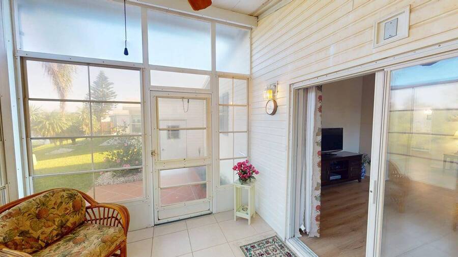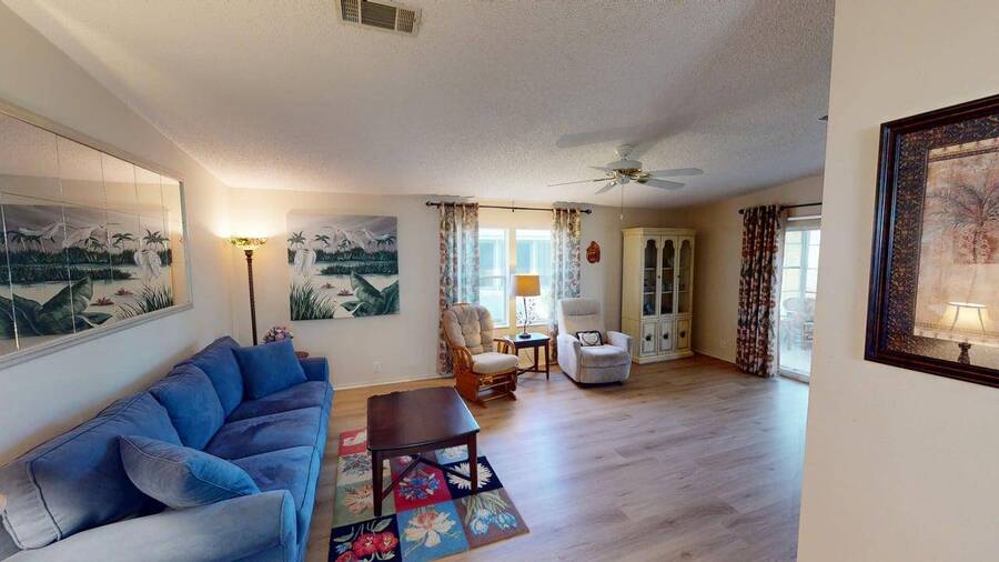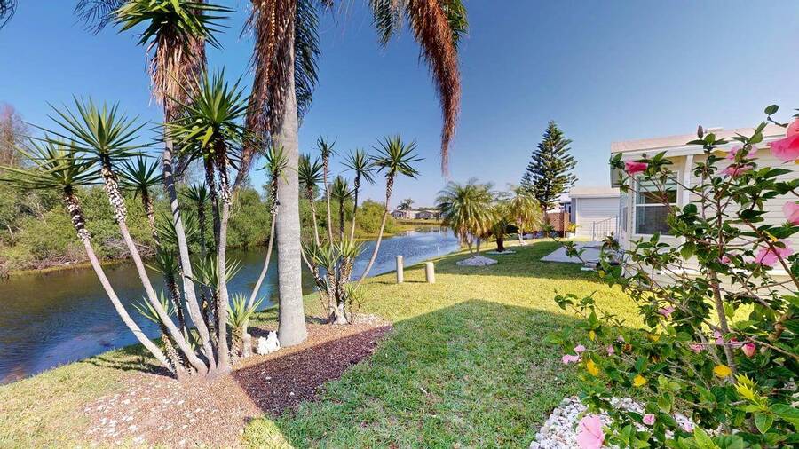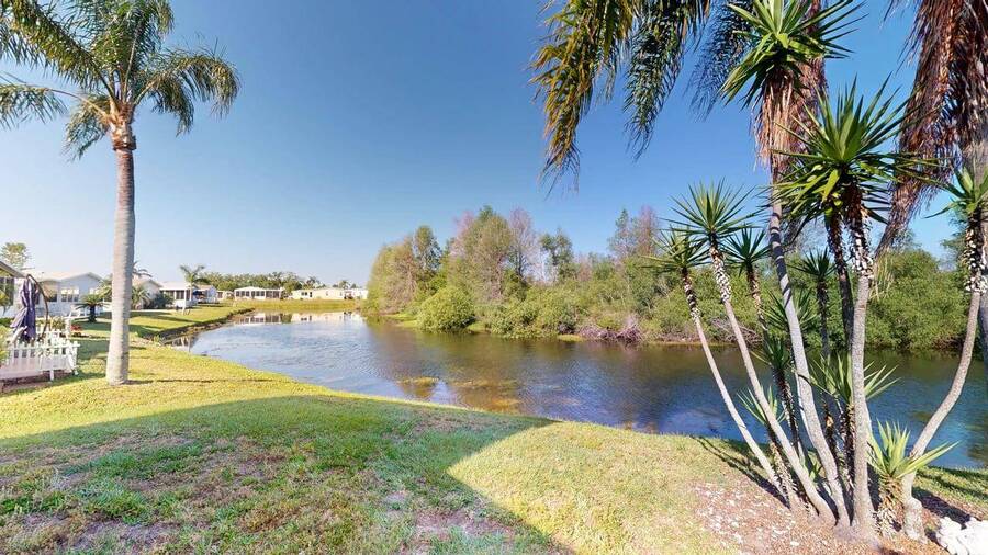 Discover the charm and comfort of 155 Palm Boulevard, a beautifully maintained 2-bedroom, 2-bath manufactured home located in a premier 55+ community known for its vibrant lifestyle and resort-style amenities. This home stands out with rare features that are hard to find in the neighborhood - a private garage, a serene water view, and a spacious patio that's perfect for relaxing mornings or entertaining under the Florida sun. Inside, you'll find thoughtful upgrades that enhance both form and function, including updated flooring and stylish touches throughout the open-concept living spaces. Whether you're enjoying the ride on YOUR FREE INCLUDED GOLF CART, view from your patio or heading out to one of the many events at The Palm Lake Club, you'll find that life here is all about connection and community. Offering a full calendar of social activities, along with access to amenities such as a heated pool, fitness center, billiards room, tennis courts, pickleball, shuffleboard, and a beautiful lakeside fire pit and outdoor kitchen. Live the lifestyle you've been dreaming of in a home that offers comfort, style, and a touch of the exceptional.