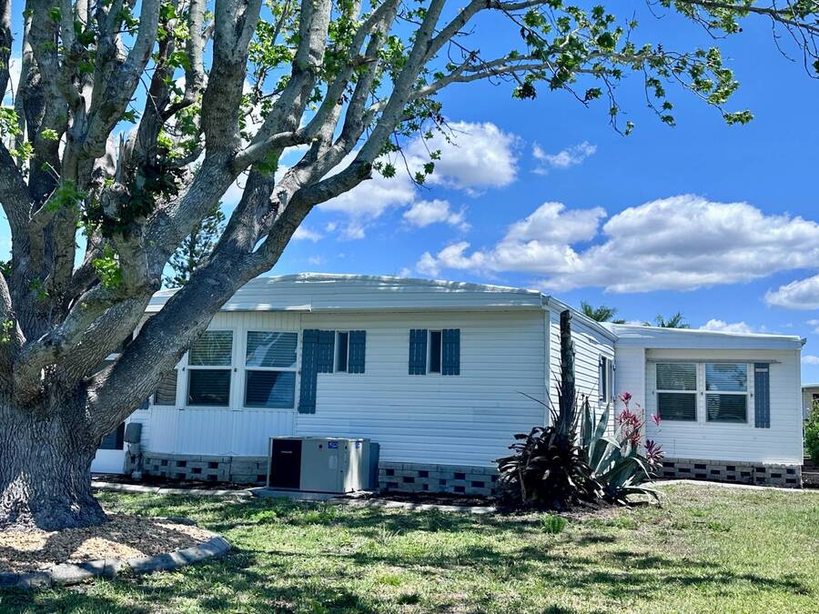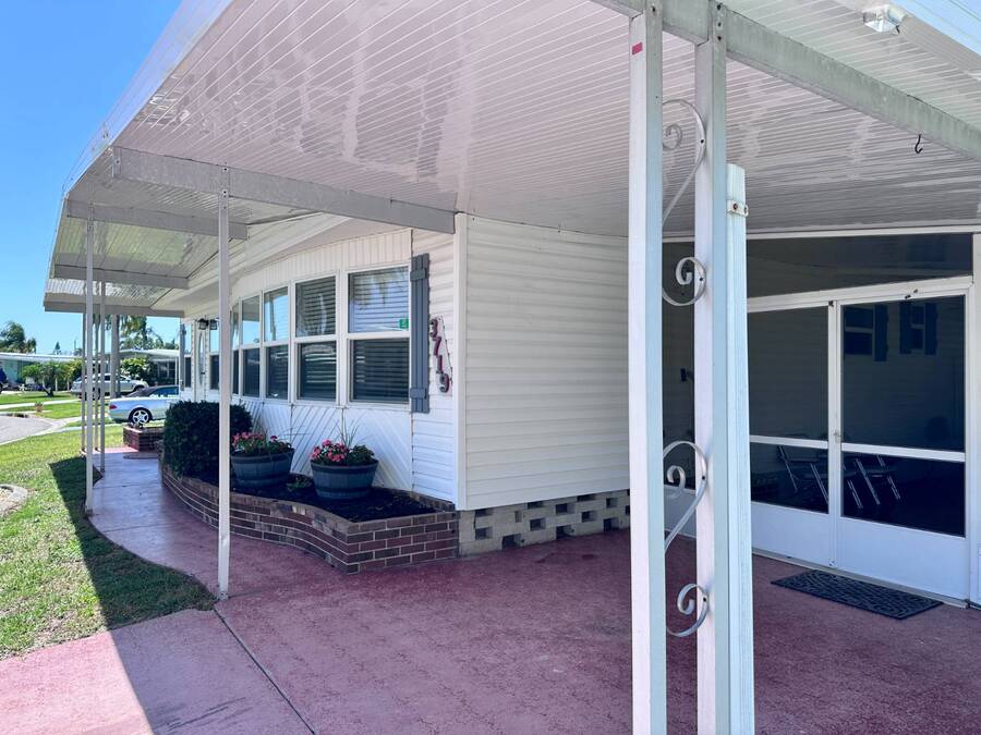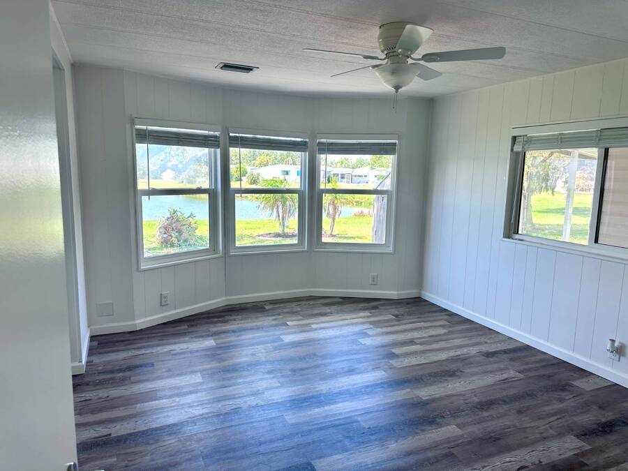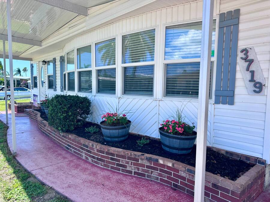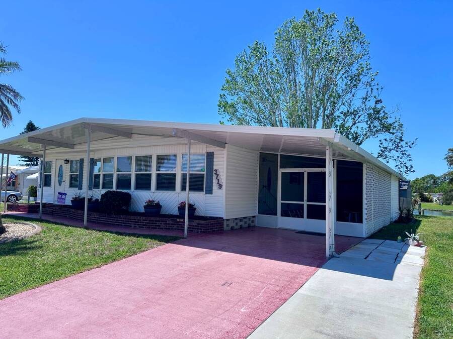 3719 Morningside Drive Ellenton FL 34222 This beautifully updated home is the perfect piece of paradise, with a water view! Freshly painted interiors set the tone, complemented by new subflooring and stunning vinyl plank flooring installed in 2023. You'll find added convenience with extra storage at the back of the home. The backyard, featuring attractive pavers, creates a perfect oasis to unwind by the water. The kitchen shines with freshly painted cabinets, an elegant backsplash, granite countertops and brand-new stainless-steel appliances. A large pantry, breakfast bar, and ample cabinet and counter space make this a functional and stylish culinary hub. The living and dining areas are expansive, perfect for hosting family dinners or game nights. The dining space includes a built-in hutch for additional storage, and the front windows bring in natural light. A unique Florida room with approx. 200 sq ft adds a bonus living area with serene water views. The primary bedroom is a retreat with its oversized layout, walk-in closet, and a private ensuite featuring a step-in shower. The guest bedroom offers generous space, a Murphy bed, and a step-in closet, with a guest bathroom boasting a tub/shower combo and a spacious vanity. The exterior is equally impressive! A side driveway, carport, and screened elongated lanai with storage shed enhance functionality and curb appeal. The large lanai overlooks a picturesque lake, making it an ideal spot to relax and watch wildlife. The utility shed houses the washer, and dryer hookup with plenty of space for your tools, beach gear, bikes, and overflow storage needs. The carport, overhang, and gutters are brand new, just replaced this year. This home is ready to welcome its next chapter. The community is an age-qualified (55+) five-star resort community of manufactured/mobile homes. The Cove boasts 5 clubhouses, 6 heated pools, a riverfront pavilion, and private fishing pier, a private marina, a fenced dog park (very pet friendly), tennis, shuffleboard, new pickleball courts, 2 new fitness rooms, 24-hour patrol, clubs of every interest, and much more. There are daily planned activities throughout the park. Bottom line, if you get bored here, it's your own fault! The lot rent is based on the home's location. All listing information given to us is considered appropriate and reliable but we always recommend home inspections by independent companies who have a background and thorough understanding of manufactured homes. We cannot guarantee the accuracy of the information given to us or the home's condition. Lot rents are determined by the community office, not our company.