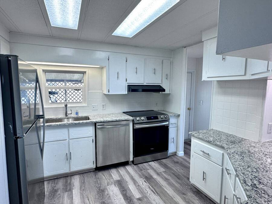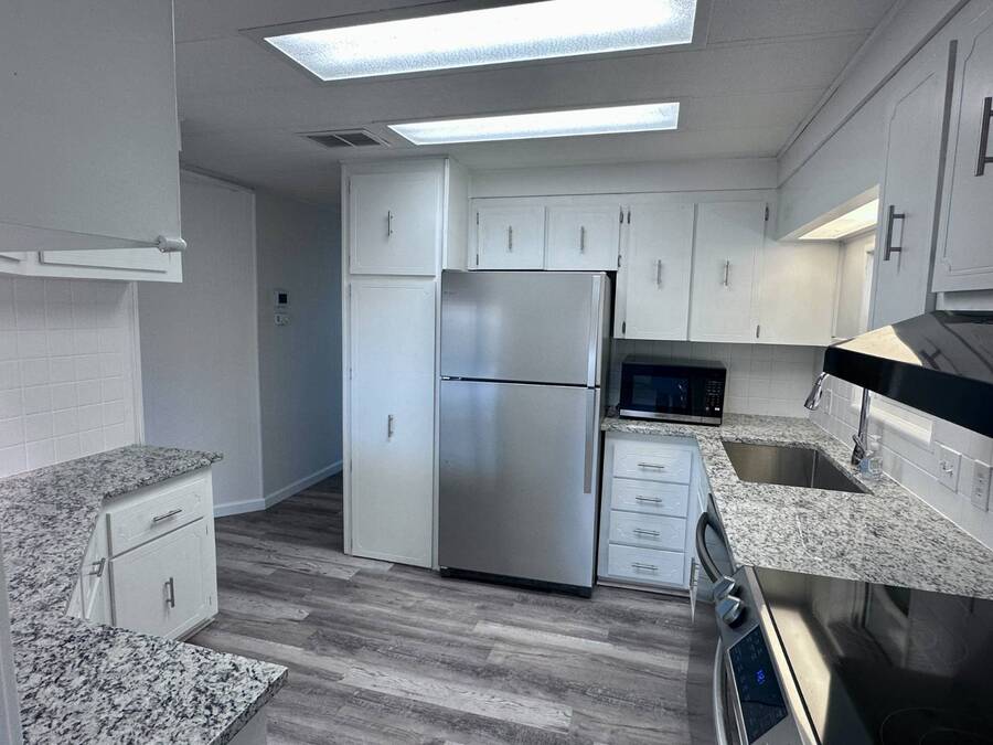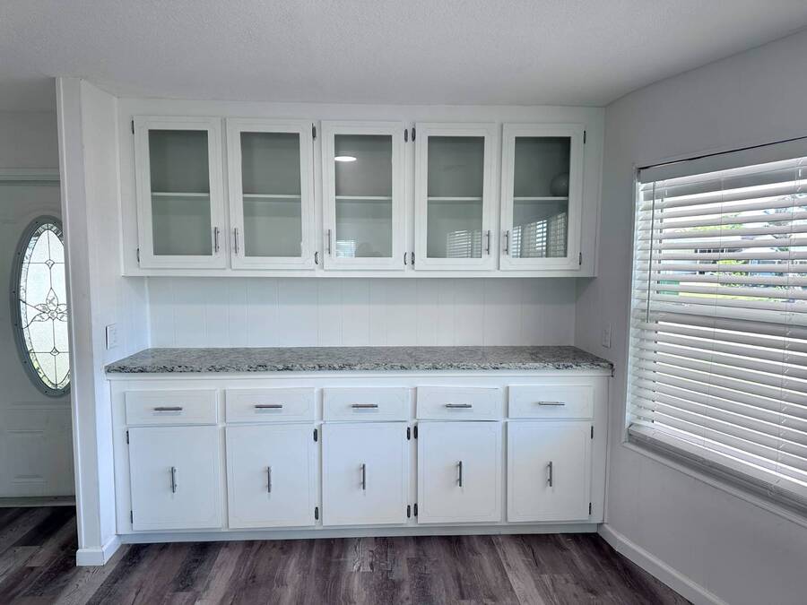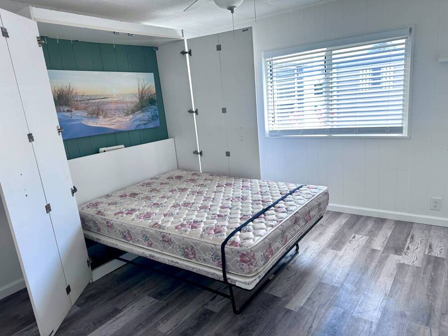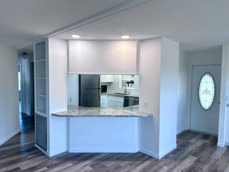 3719 Morningside Drive Ellenton FL 34222 This beautifully updated home is the perfect piece of paradise, with a water view! Freshly painted interiors set the tone, complemented by new subflooring and stunning vinyl plank flooring installed in 2023. You'll find added convenience with extra storage at the back of the home. The backyard, featuring attractive pavers, creates a perfect oasis to unwind by the water. The kitchen shines with freshly painted cabinets, an elegant backsplash, granite countertops and brand-new stainless-steel appliances. A large pantry, breakfast bar, and ample cabinet and counter space make this a functional and stylish culinary hub. The living and dining areas are expansive, perfect for hosting family dinners or game nights. The dining space includes a built-in hutch for additional storage, and the front windows bring in natural light. A unique Florida room with approx. 200 sq ft adds a bonus living area with serene water views. The primary bedroom is a retreat with its oversized layout, walk-in closet, and a private ensuite featuring a step-in shower. The guest bedroom offers generous space, a Murphy bed, and a step-in closet, with a guest bathroom boasting a tub/shower combo and a spacious vanity. The exterior is equally impressive! A side driveway, carport, and screened elongated lanai with storage shed enhance functionality and curb appeal. The large lanai overlooks a picturesque lake, making it an ideal spot to relax and watch wildlife. The utility shed houses the washer, and dryer hookup with plenty of space for your tools, beach gear, bikes, and overflow storage needs. The carport, overhang, and gutters are brand new, just replaced this year. This home is ready to welcome its next chapter. The community is an age-qualified (55+) five-star resort community of manufactured/mobile homes. The Cove boasts 5 clubhouses, 6 heated pools, a riverfront pavilion, and private fishing pier, a private marina, a fenced dog park (very pet friendly), tennis, shuffleboard, new pickleball courts, 2 new fitness rooms, 24-hour patrol, clubs of every interest, and much more. There are daily planned activities throughout the park. Bottom line, if you get bored here, it's your own fault! The lot rent is based on the home's location. All listing information given to us is considered appropriate and reliable but we always recommend home inspections by independent companies who have a background and thorough understanding of manufactured homes. We cannot guarantee the accuracy of the information given to us or the home's condition. Lot rents are determined by the community office, not our company.