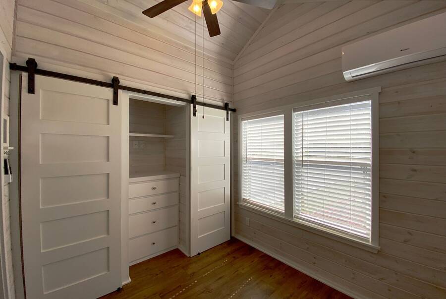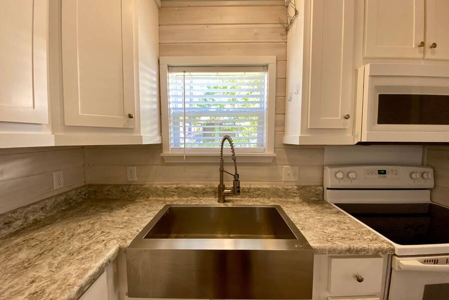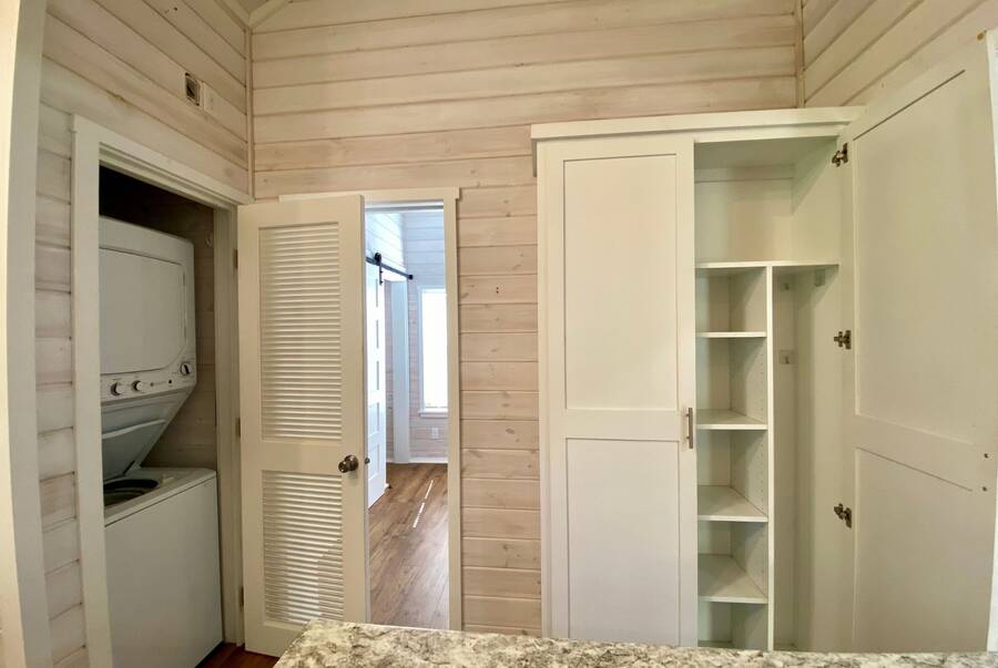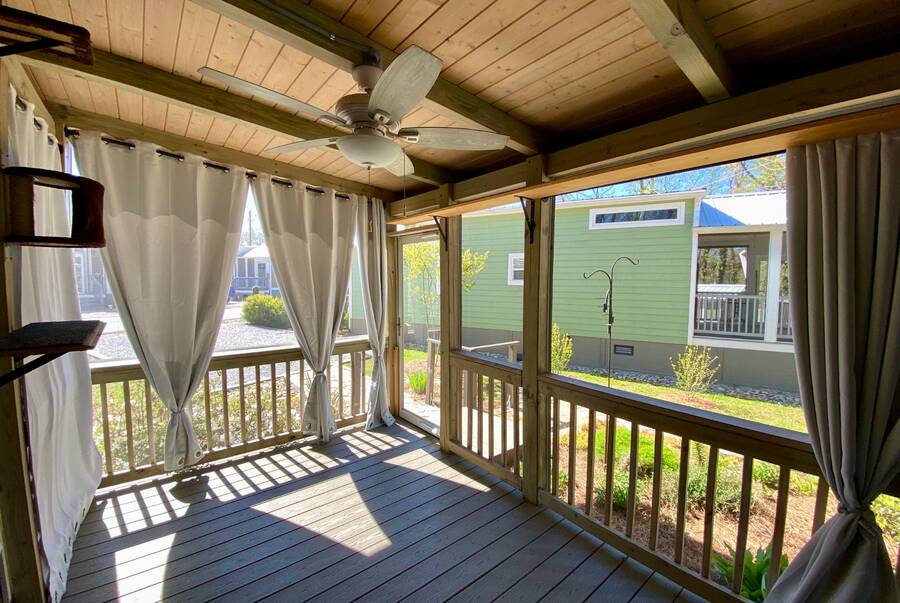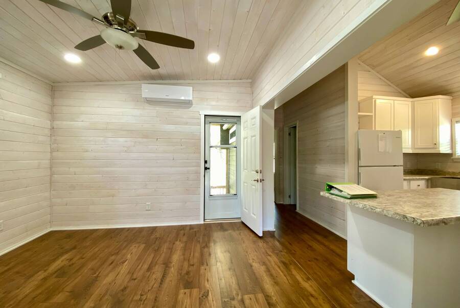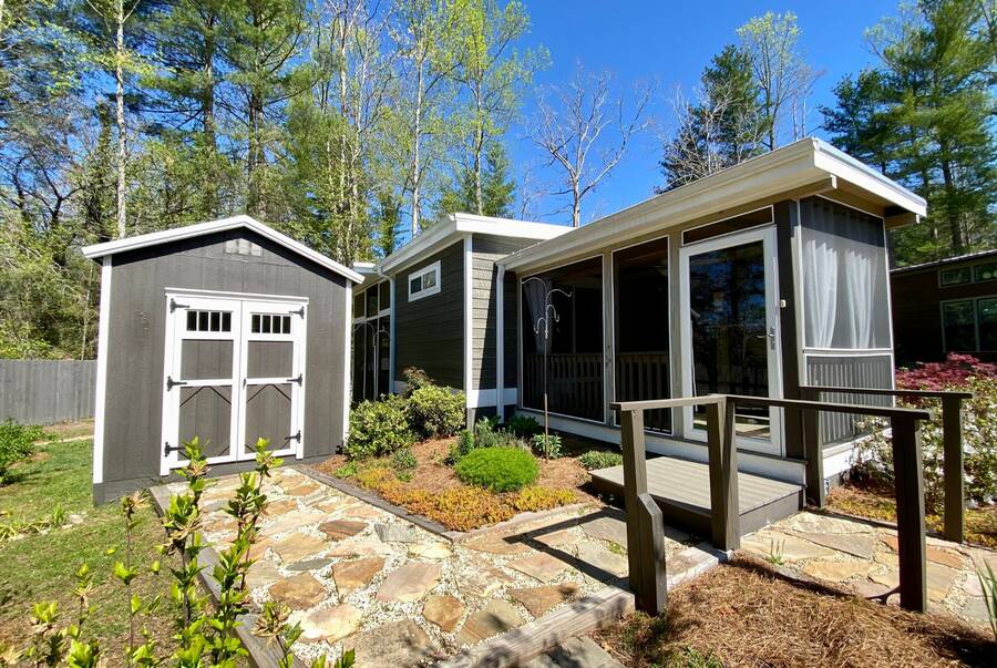 Step into 543 sqft of thoughtfully utilized space featuring 2 cozy bedrooms and 1 sleek bathroom, perfect for downsizers or those seeking simplified, stylish living. The property has 2 lovely screened porches. Enjoy your morning coffee or evening wine in the tranquil surroundings. Looking for extra storage? This tiny home comes with a shed! Keep your new home organized and clutter-free.