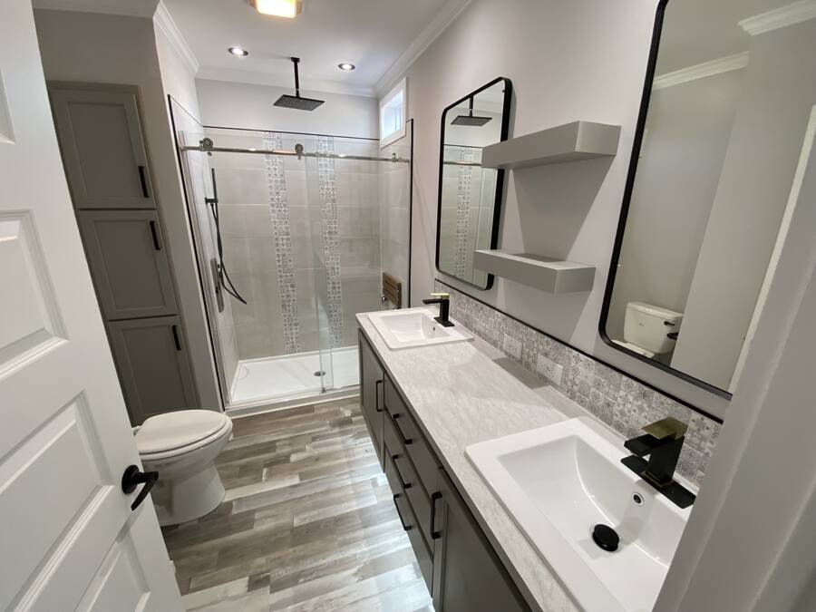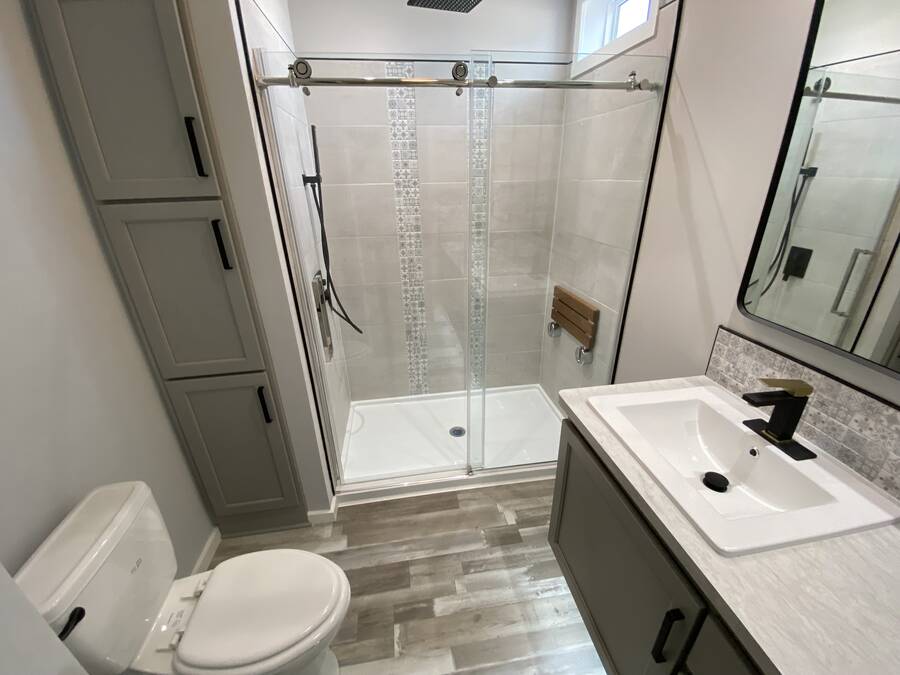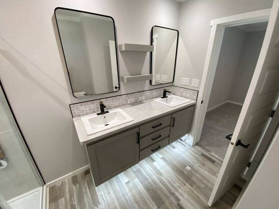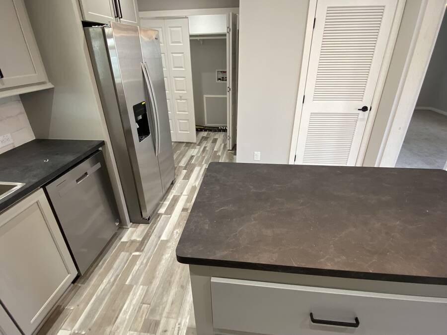 Brand New Home! This lovely home exudes charm from top to bottom! Quality built Palm Harbor/Cavco home with two bedrooms and two bathrooms. Many stylish upgrades include wood beams, kitchen center island, stainless steel appliances, gorgeous custom cabinetry and more! Light and bright living and dining areas. Split plan with guest bedroom and bathroom on front with the primary suite at the rear. Primary features the most unbelievable attached bathroom with an amazing, custom tiled, step-in shower (with bench seat and rain shower head) double sink, floating vanity with lighting underneath, tiled backsplash, built in shelves between the sinks and a linen cabinet. The walk-in closet features built-in shelves and a full-length mirror. Inside laundry room off the kitchen. High ceilings add to the feeling of spaciousness. Outside, custom built shed for all your bits and bobs, carport for two car parking, wonderful covered front deck to enjoy your morning coffee, prime corner location, and beautifully landscaped yard with irrigation system. All of this for a low, low price! This charmer will not last long folks, please schedule your tour today!
