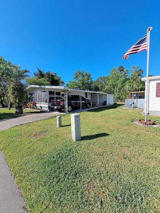 This home boasts a spacious alley-style kitchen equipped with all appliances, including a built-in microwave and features a cozy breakfast nook or sitting area. The expansive living room offers endless possibilities for furniture arrangements and includes a large window that welcomes the natural Florida sunlight. The dining area is ample enough to accommodate a generous table for gatherings or family events. The primary bedroom is sizable, easily fitting a king-size bed with additional space for other furniture options. The primary bath is well-designed. There is also a comfortable second bedroom or guest room that can fit a queen bed with room to spare. The home has newer flooring throughout, with updated subfloors as well. The storage shed is generously sized and includes an exit to the back patio. This property is situated in the 55plus community of Hacienda Villages, which offers a wide range of amenities, including billiards, a clubhouse with Wi-Fi, a fitness center, horseshoes, available land shares, laundry facilities, a library, and pet allowances with breed restrictions. The community also features a pickleball court, planned activities, shuffleboard, two swimming pools one heated, a tennis court, and allows motorcycles. The lot rent is $940.00 per month and the home is attractively priced.