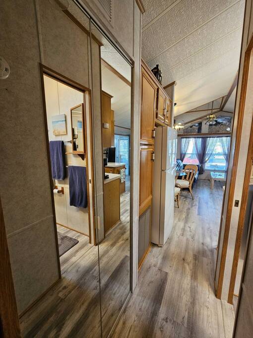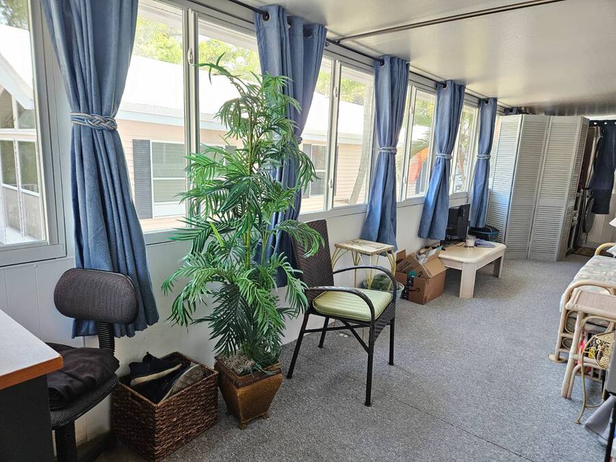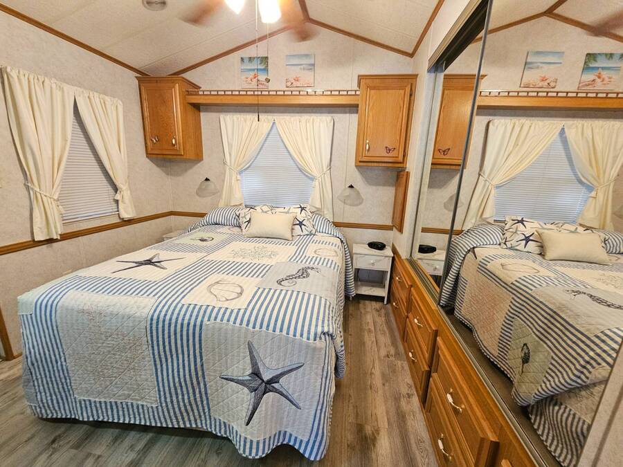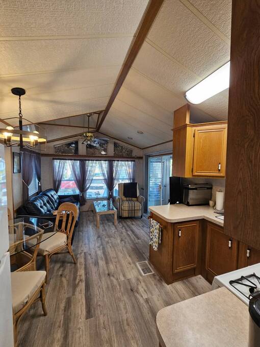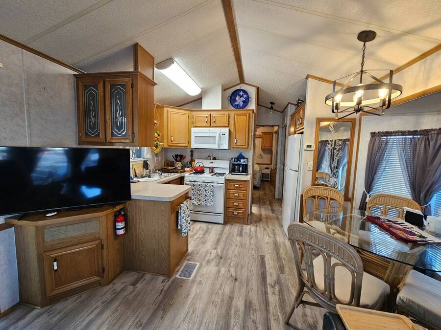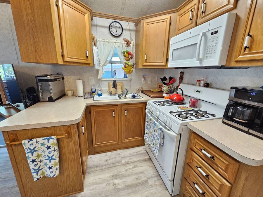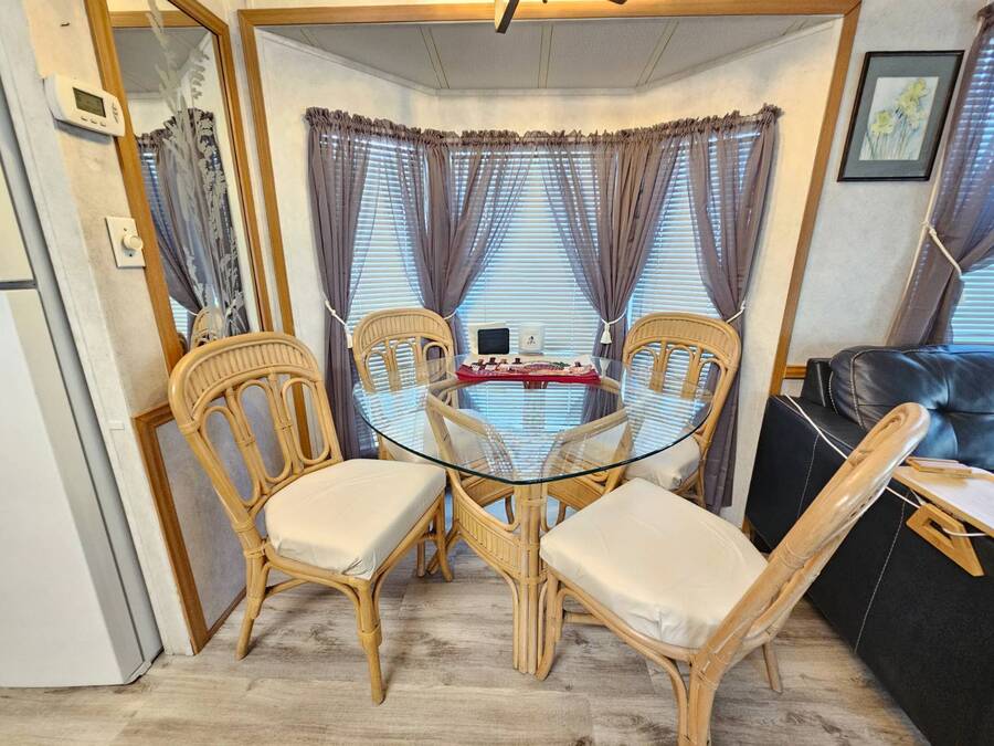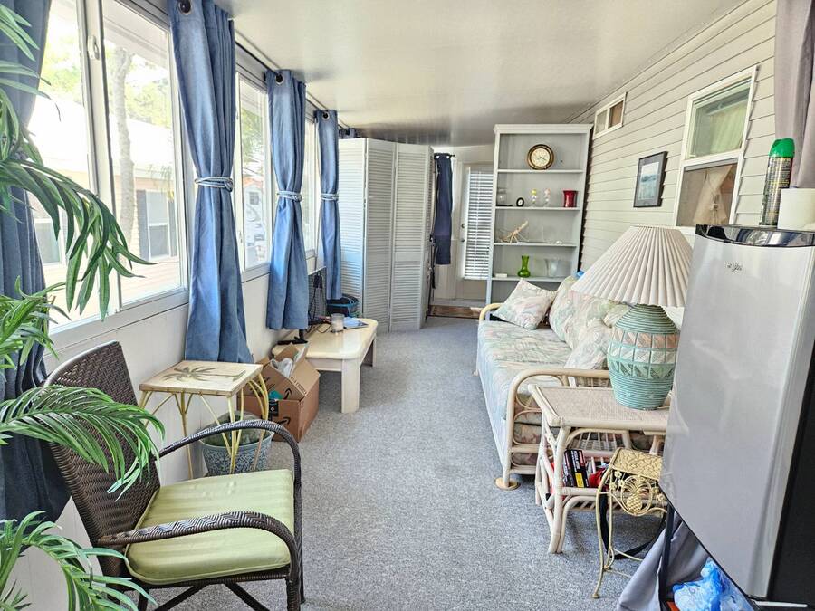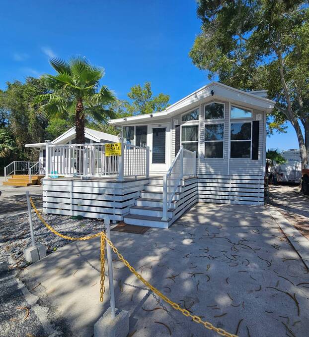 Come see this lovely home. Move in Ready. Motivated Seller!! Offers Welcome! Must see, well maintained, immaculate and perfect for seasonal or fulltime living. FABULOUS LOCATION!! JUST MINUTES FROM HONEYMOON ISLAND BEACH!! Pinellas trail is right down the street!! LIVE AFFORDABLY IN DUNEDIN FL RATED A TOP COASTAL TOWN!! ALL AGE RESORT STYLE PARK, Pet friendly community. This home had no flooding during Helene. You will feel at home the minute you enter this cozy cottage style park model 874 sq ft home. Built in 2000, this charming 1 bedroom, 1 bath home is perfect for seasonal or fulltime living on the thriving West Coast of Florida. Nestled within mature trees and shaded streets this very well maintained and FURNISHED residence offers ample space and affordable living. Enjoy "porch sitting" on the NEW (2024) front deck with maintenance free APEX decking and aluminum railing. Back of home has a new wooden deck and steps as well. Attractive outside appeal with Vinyl Siding, TPO Roof, NEW Thermopane windows in 2023. LIFEPROOF Vinyl Flooring was installed throughout in 2022. Step inside to the inviting bright and open concept living with a CATHEDRAL ceiling and trapezoid windows to give natural light. The kitchen is equipped with gas range, NEW refrigerator, microwave, ample counterspace cupboards and a pantry. Large hall closet for additional storage. Central AC with all new duct work, and a forced air gas furnace will keep you cool and warm and are very efficient. The Bedroom offers a spacious closet and an entrance to the Sunroom. Conveniently located inside LG frontload washer and dryer!! A water filtration system has been installed for crystal clear water throughout home. Home is very well-maintained, and power washed yearly. This community offers a wealth of amenities including a generously sized heated swimming pool, laundry facilities, a clubhouse, shuffleboard courts, pickleball and a diverse range of activities that cater to every interest. Conveniently located mere minutes from Honeymoon Island, exceptional restaurants, shopping centers, and a variety of outdoor and indoor activities, this location truly embodies the spirit of "Delightful Dunedin." Tampa is within 25 miles for sporting events and downtown activities and airport access. Pets of all sizes, with the exception of aggressive breeds. Lot rent is $1015.00 includes trash and immenities. CALL AGENT CINDY ONLY TO VIEW THIS HOME. The buyer is responsible for getting park approval and obtaining all rules and regulations and exact fees. All information is deemed reliable; however, accuracy, measurements or condition cannot be guaranteed and may be verified by licensed professionals.