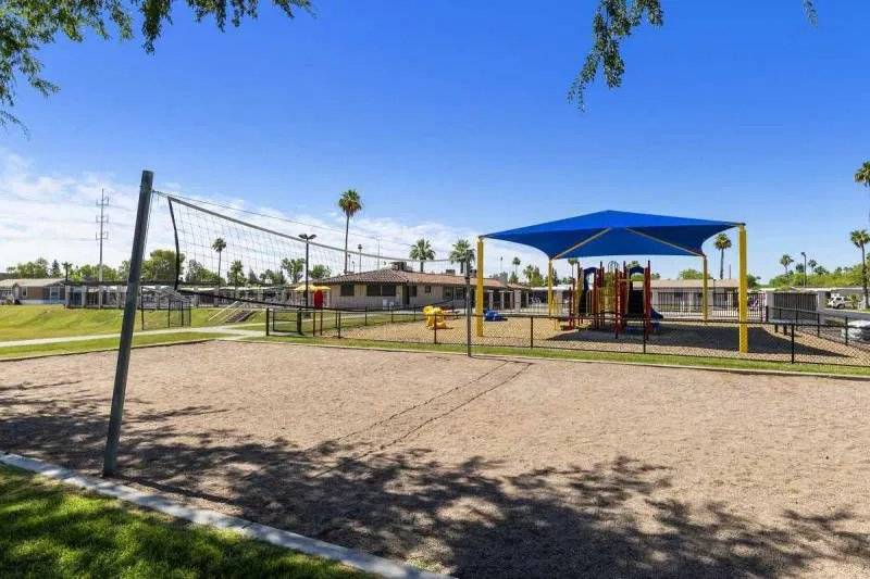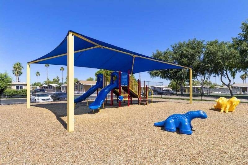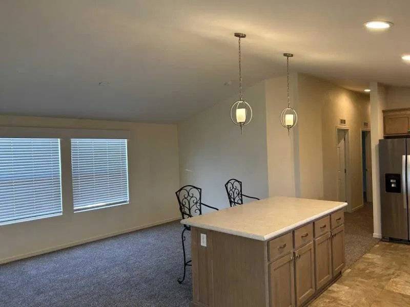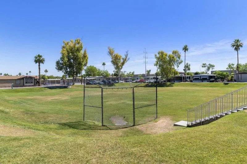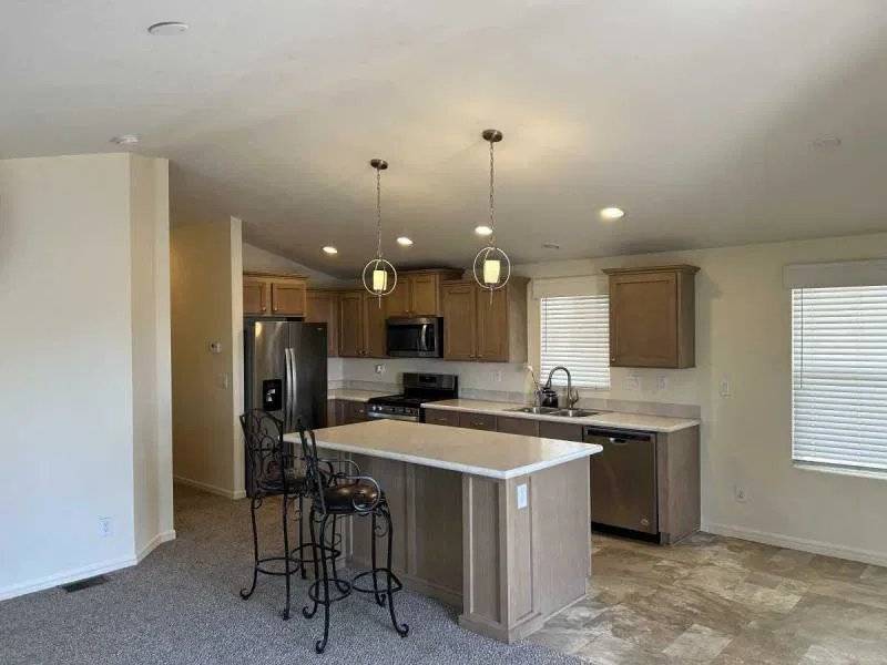 NEW Price adjustment!! Enjoy an updated open floor plan ready to move into home with this fantastic 3 bedroom 2 full bath Cavco home. Updated kitchen includes quartz counters, freshly painted cabinets, new hardware, stainless steel appliances, gas stove and custom vent hood. Breakfast bar opens to spacious living room with vaulted ceilings, light and bright thermal pane energy efficient windows & updated vinyl flooring. Eat-in dining area. Primary bedroom has a huge open plan with large en-suite bathroom featuring dual vanities, extra storage, walk-in shower and private commode room. 1st guest room is currently used as an office / den. 2nd guest room is large. Full guest bath with shower / tub combo. Separate laundry room has extra storage and private door to covered carport. BIG Built-in storage shed included! Community is all-ages and is gated plus has a pool, spa, fitness room, tennis court, night-time security patrol and community center with game room. MUST SEE