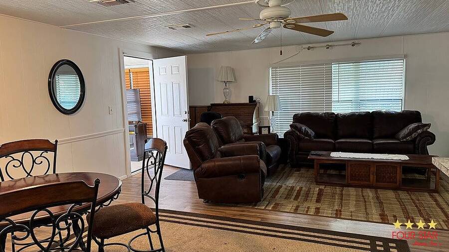 Welcome to your new home in this vibrant 45plus community! This spacious manufactured home offers an open floor plan with beautifully redone flooring throughout. Youll love the light and bright living areas, plus a large Florida room with its own separate A/C - perfect for relaxing year-round. Both bedrooms feature generous closet space, providing plenty of storage. Enjoy the many amenities this community offers, including a clubhouse, fitness center, swimming pool, billiards, bocce ball, horseshoes, laundry facilities, and a library. Investors are welcome, and the park is pet-friendly, making it a great opportunity for owners and investors alike. Conveniently located near shopping, dining, and local attractions, this home is move-in ready and waiting for you. Schedule your private tour today!