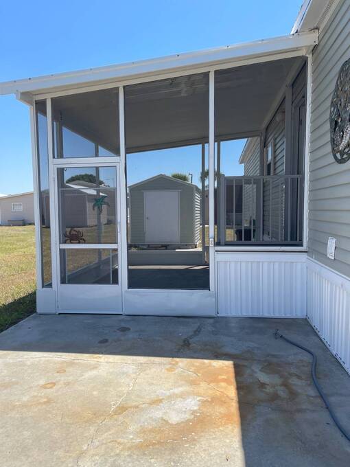 MOTIVATED AND PRICE HUGE REDUCTION AND LOWEST LOT RENT IN THE AREA!!! Charming 2 Bed / 2 Bath Home in Gated Community - Lowest Lot Rent Around! Welcome to your peaceful retreat in one of the area's most desirable gated communities! This well-maintained 2-bedroom, 2-bath home features an open floor plan that's perfect for both relaxing and entertaining. Enjoy the Florida lifestyle year-round from your screened carport, ideal for morning coffee or evening unwinding. Additional features include: • Spacious 8x10 shed for extra storage • Bright, airy living space with plenty of natural light • Access to a beautiful community pool • Located in a quiet, friendly neighborhood Best of all - this home offers the lowest lot rent in the area, making it an unbeatable value! Don't miss your chance to live in comfort and security, just minutes from shopping, dining, and local attractions. Call today to schedule a private tour! The monthly lot rent covers water, sewer,and trash, making for easy maintenance and stress-free living. Lawn care has to scheduled by new owner. Don't miss out on this move-in-ready gem-schedule your showing today! All listing information is deemed reliable but not guaranteed and should be independently verified through personal inspection by appropriate professional. Listing company cannot guarantee or warrant the accuracy of this information or condition of the property. The buyer assumes full responsibility for obtaining all current rates of lot rent, fees, and pass-on costs. Additionally, the buyer is responsible for obtaining all rules, regulations, pet policies, etc., associated with the community, Park or home from the park manager. Sold as is. Call Terry to tour this home today!!!