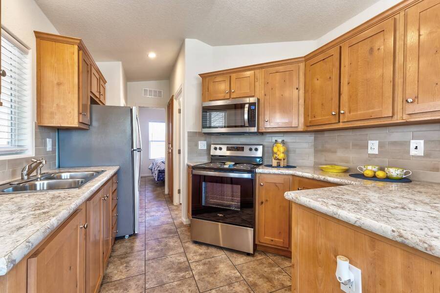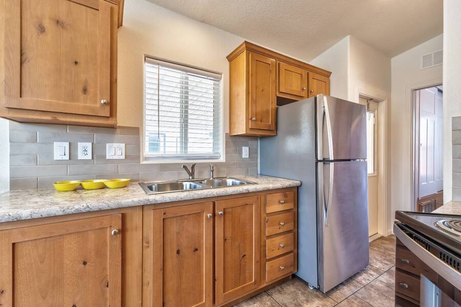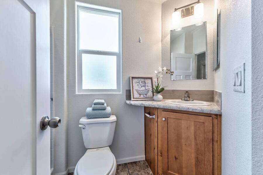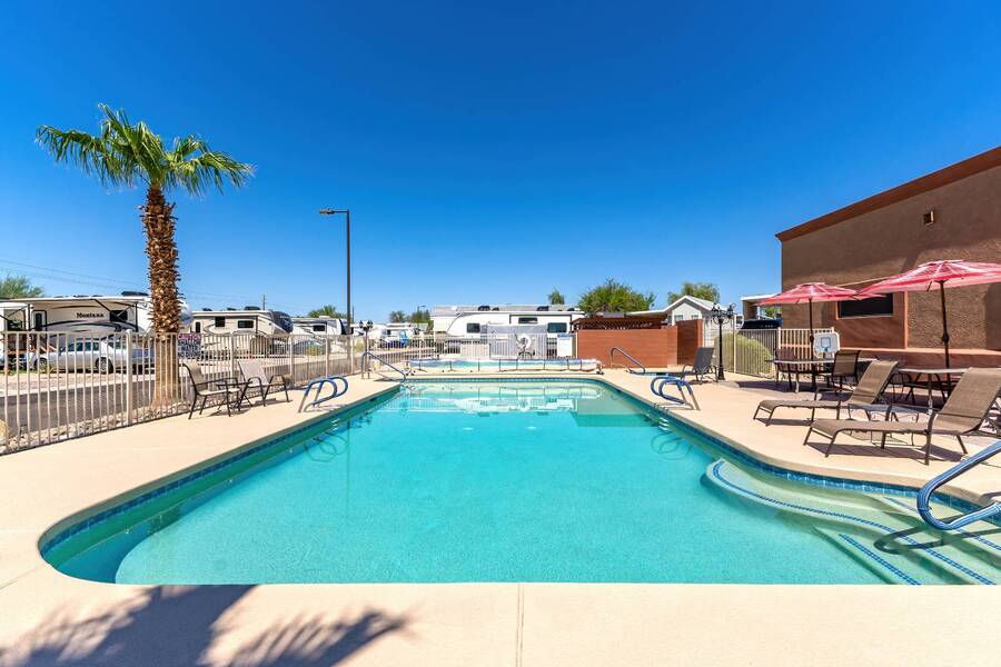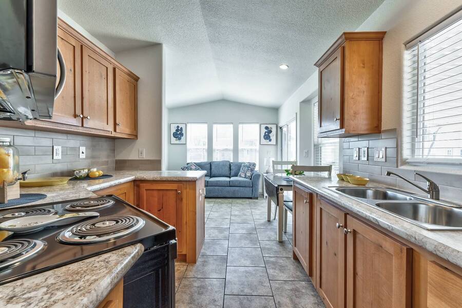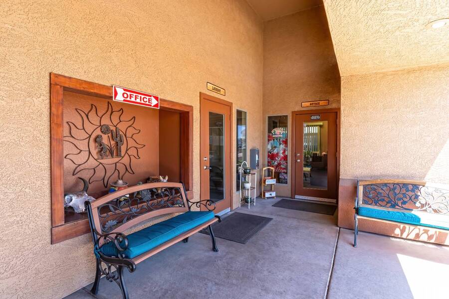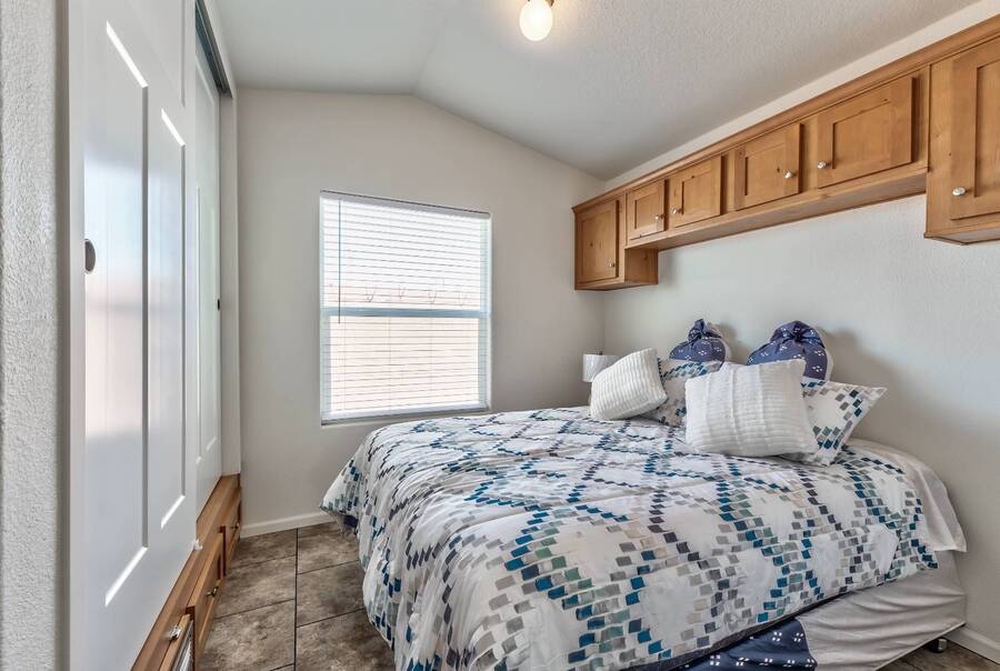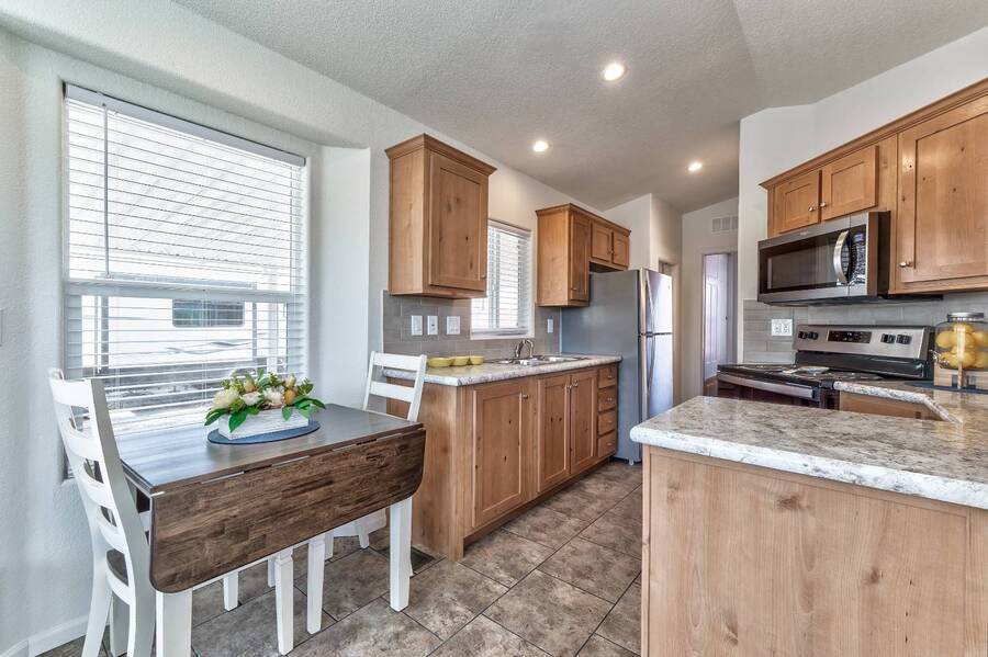 CHAMPION PARK MODEL located at Desert Vista RV Resort, a friendly 55+ community just minutes to downtown Mesa. Step into this open concept layout with vaulted ceilings and a wall of windows that provide an abundance of natural light. The kitchen features stainless steel appliances, an over-the-stove microwave, dishwasher, beautiful wood cabinetry and subway tile backsplash. The dining area features built-in cabinets, perfect for additional storage. Recessed LED lighting complement the living areas. The master bedroom features a built-in storage nook, additional over-the-bed storage and plenty of closet space, while the spacious bathroom features a large step-in shower. Outside, you'll love the expansive carport and wide driveway. This beautiful home is available furnished or unfurnished. Come discover Desert RV Resort, a secluded oasis in the heart of Mesa with resort-style amenities including a heated swimming pool and whirlpool spa, clubhouse with library & exercise room, on-site laundry room, dog park, activities, and so much more. Whether you're looking for a seasonal vacation home or tranquil place to live year-round, this an affordable way to live in paradise! CALL TODAY!