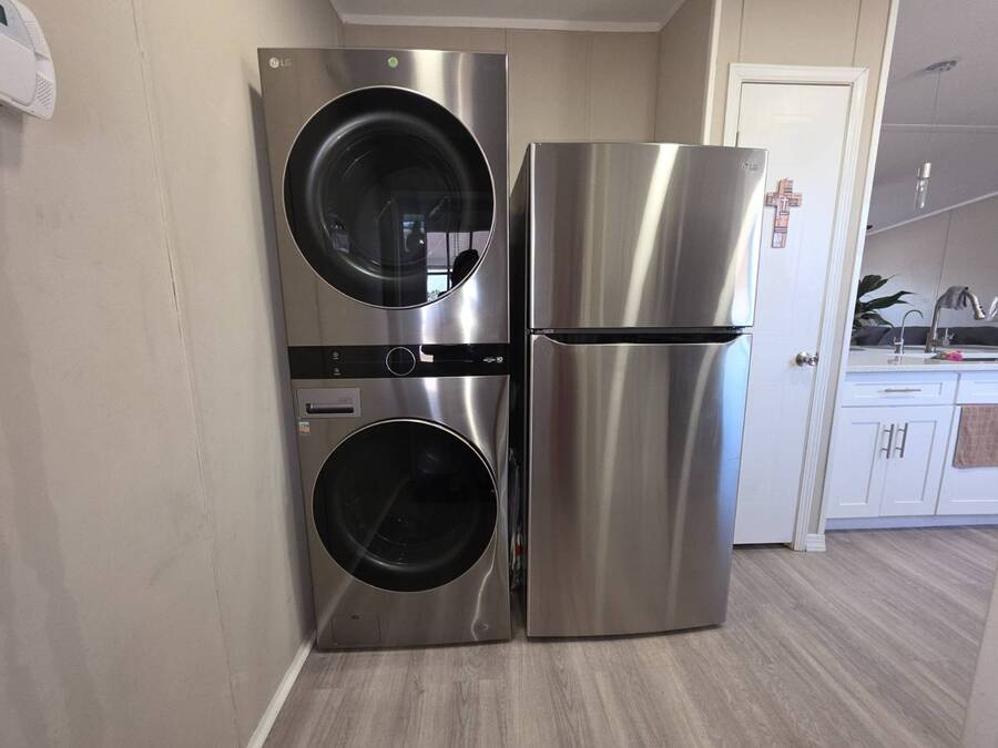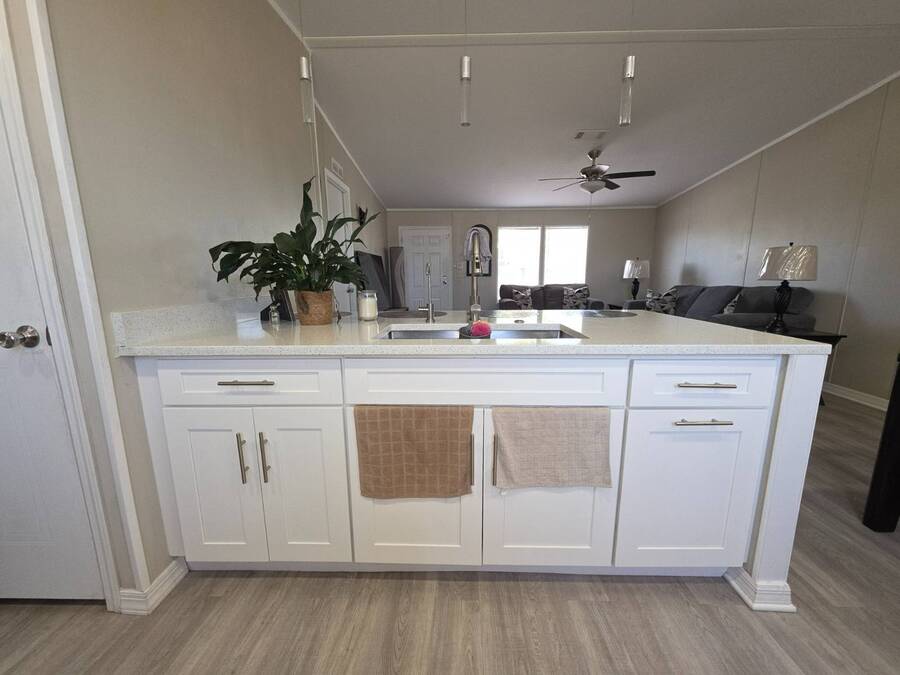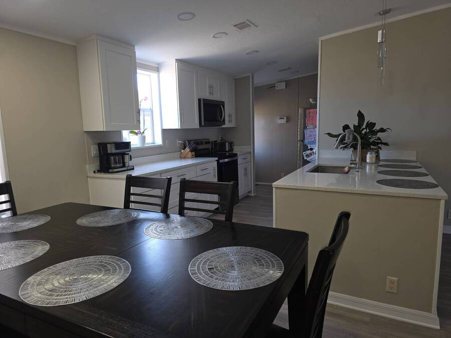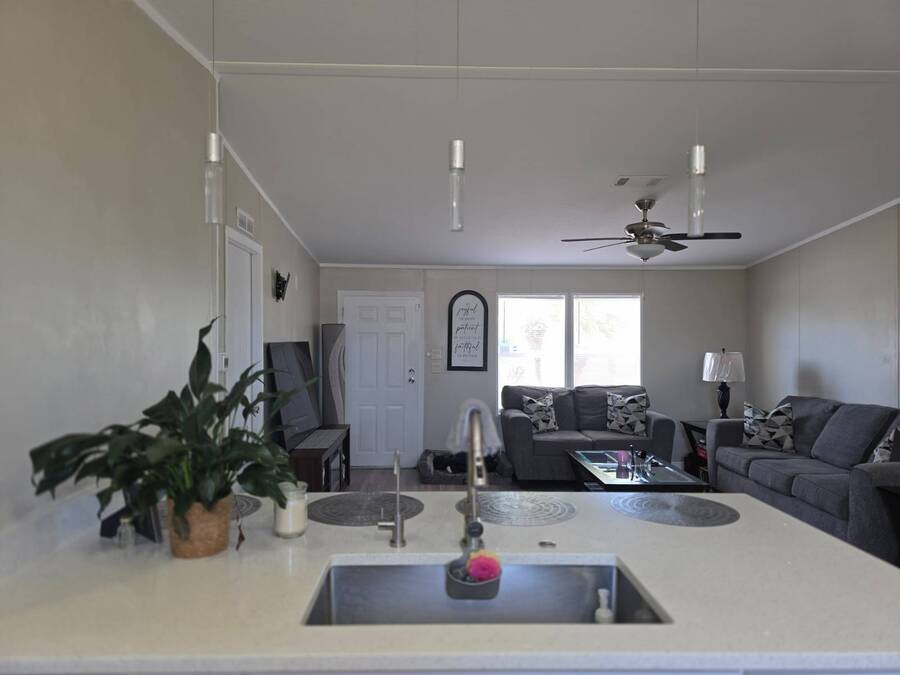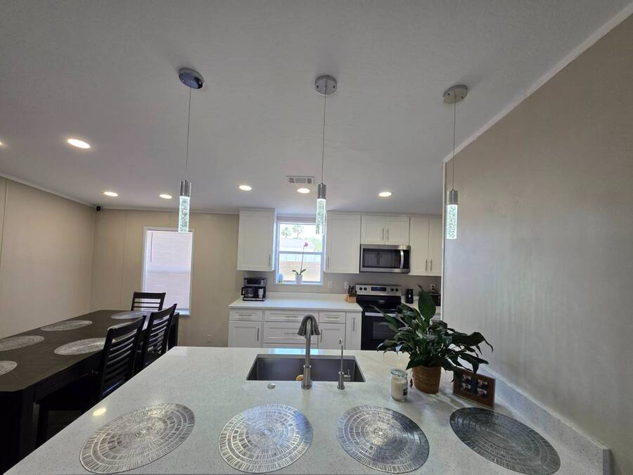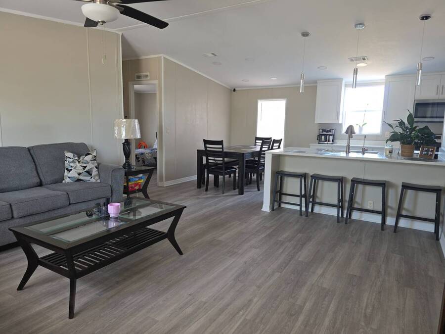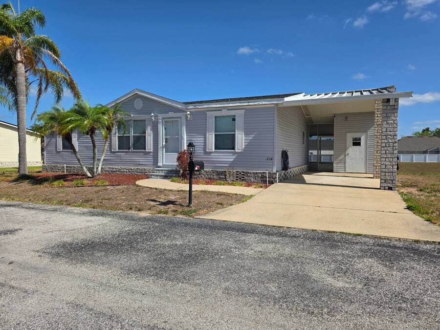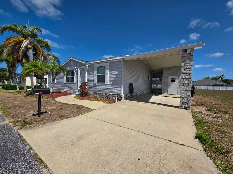 Discover this hidden gem in The Ridge Palm Key Manufactured Homes Park, perfectly situated near shopping centers, gas stations, restaurants, and just minutes from the Theme Parks. This is the home you've been searching for! Step into the open floor plan that seamlessly connects the kitchen, living, and dining areas-ideal for hosting a large family. The newly installed quartz countertops, newer AC, refrigerator, dryer, washer, and range, combined with laminate flooring and meticulous details, add a touch of elegance and modernity to the space. With 3 bedrooms and 2 bathrooms, this home offers a spacious and comfortable layout to accommodate families of all sizes. Don't miss the serene surroundings and the array of community amenities designed to create unforgettable vacation experiences for your friends and family. Schedule your appointment today and make an offer on this incredible property
