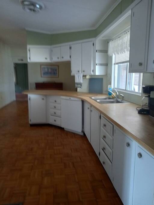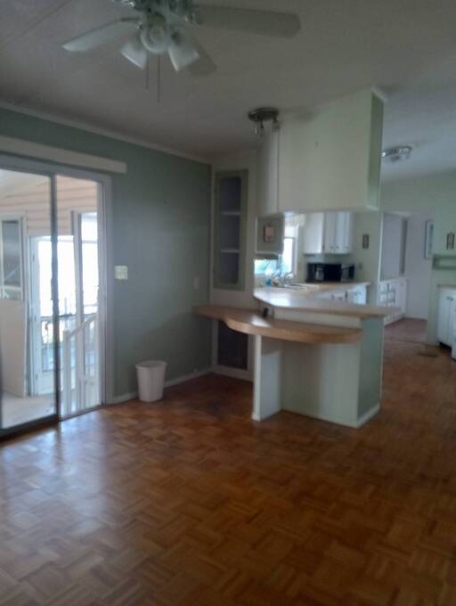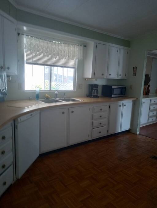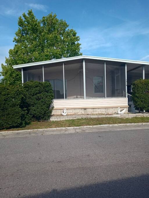 Large 2 bedroom, 2 bath doublewide mobile home with a large open walk through kitchen & breakfast bar. 2 bedrooms with a bathroom and a walk in closet in the master bdrm. 2 large screened in porches, one in the front and one on the side with enclosed shed & laundry room and storage. Large living room, plus a family and dining room. Located in pet section with a fenced in yard. 2 dogs are allowed 40 lbs and under. Indoor cats are welcome! 55 & over park, a 40 yr old can live there as long as a 55 or over does. Needs a little TLC, other than that a great home for the price. The park is centrally located, close to bus stops, shopping centers, highways, churches and beaches!! Nice clubhouse with lots of activites such as shuffleboard, corn hole, bingo, crafts, game room and gym. Nice heated pool newly marsited. RV, Boat or trailer parking. Must pass a credit and background check and be approved by management. Lot rent is 880.00 monthly and includes water, sewage, trash & lawn. All information is thought to be true and accurate but it is advised to get a professional opinion as all mobile homes are "Sold As Is".CJ Mobile Home Sales,LLC. Is not responsible for the condition of the home.