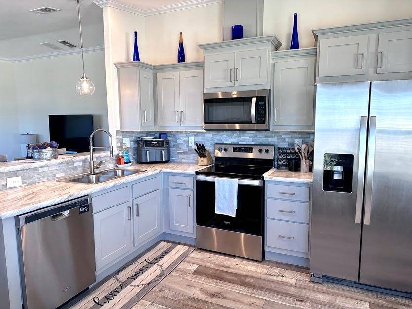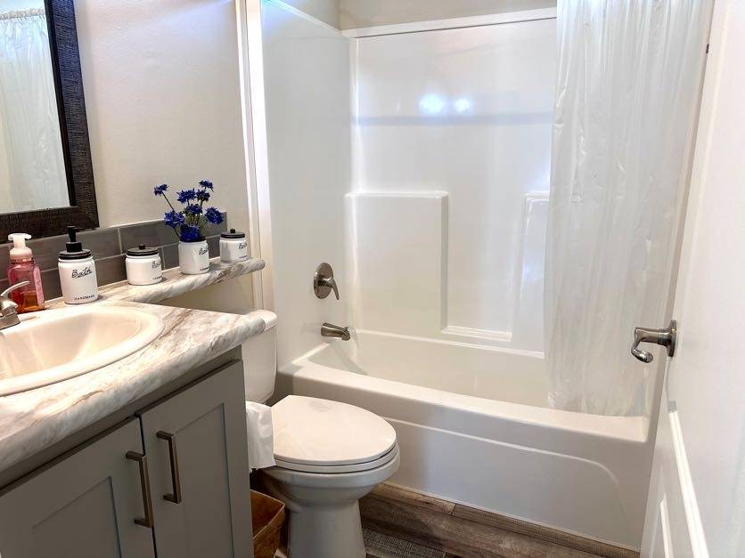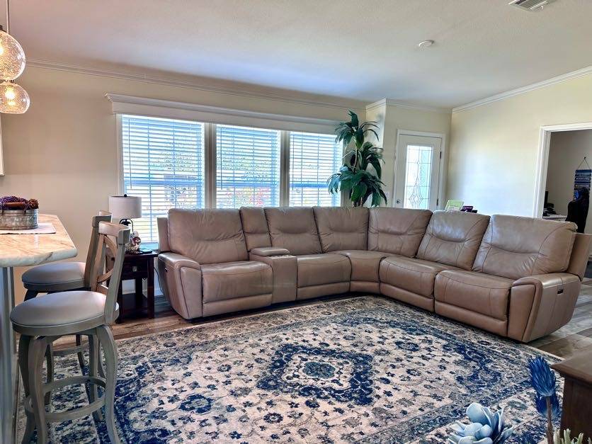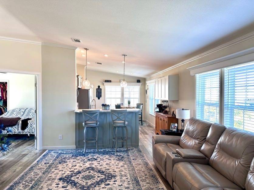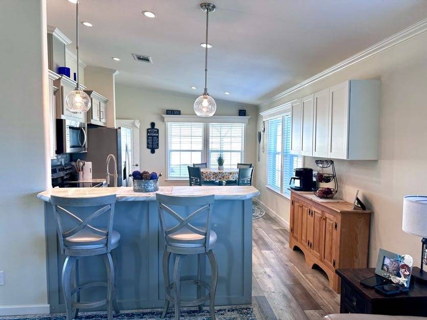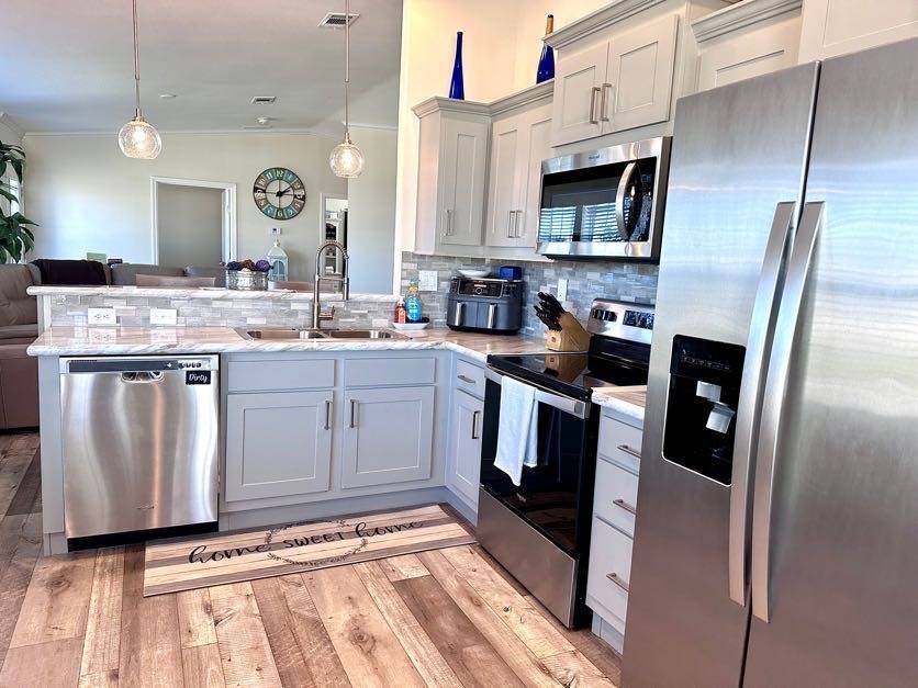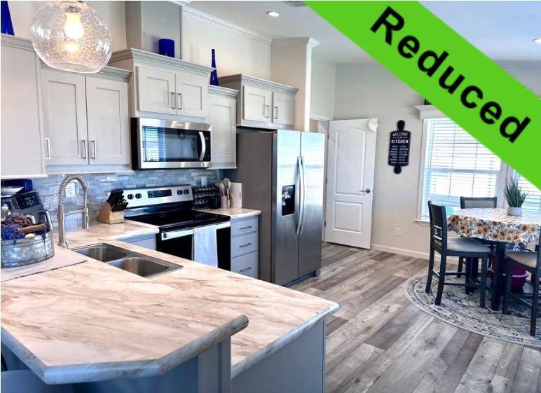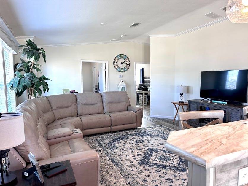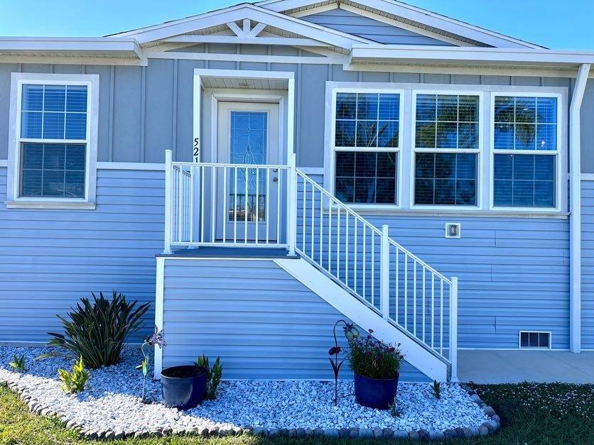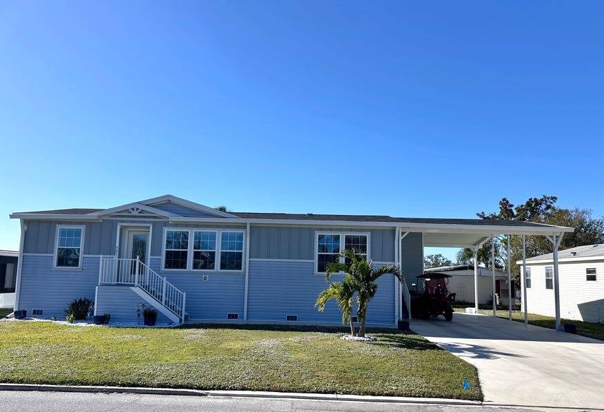 521 Edgewater Drive Ellenton FL 34222 Welcome to your dream home! This meticulously maintained 2022 Champion property is packed with upgrades and ready to impress. Featuring 3 spacious bedrooms and 2 stylish bathrooms, it offers a perfect balance of comfort and modern living. Ample Parking and Extra Storage: Accommodate up to 5 vehicles plus a golf cart with ease under the vaulted carport. A roomy utility shed adds convenient storage for all your needs. Show-Stopping Kitchen: The heart of this home boasts stainless steel appliances, a stunning glass backsplash, and upgraded fixtures. Thoughtful touches include pull-out drawers beneath the sink and a pull-out spice rack above the stove, combining elegance with functionality. Bright and Inviting Living Spaces: The oversized living room, with vaulted ceilings and abundant natural light, is perfect for entertaining or unwinding. Bedroom Bliss: All bedroom closets (except the office) feature upgraded shelving. The guest bedrooms are roomy and inviting, and the guest bathroom includes a tub/shower combo. The master suite offers luxury and convenience with a remote-controlled ceiling fan, a walk-in closet, and an ensuite featuring double sinks, a step-in shower with a sliding glass door, and a linen closet. Extra Perks: This home is fully drywalled with vaulted ceilings throughout, plus an indoor laundry area with added cabinetry for extra storage. Enjoy the durability of a shingle roof and energy-efficient double-pane windows.