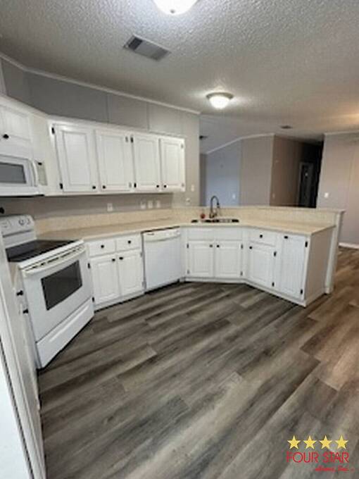 This shiny clean and extremely well-maintained home sits on a high and dry lot with a lake view from the 10x12 front screened porch. Awesome updates include 2022 shingled roof, 2018 HVAC, 2024 whole house replumbing, 2018 Tankless HWH as well as spacious eat-in kitchen with extra storage space and snack bar. You will find newer laminate wood flooring and recent interior paint throughout the home. The open floor plan highlights a great flow between kitchen, dining area and living room where you will see a mounted Samsung Smart TV which conveys with home. Step through the sliding glass doors to relax and enjoy the lake views from a beautiful screen porch. Back inside, you will find the guest room with closet, the 2nd bathroom with shower, indoor laundry, and the large main bedroom with room for a king size bed and extra large closet. The ensuite bath has double sinks and state of the art shower. There is a double driveway, large shed and patio outside too. Do not miss the opportunity to own this fabulous home with lot rent under 800 dollars, resort-like clubhouse and pool, and numerous activities. Call now for an amazing tour.