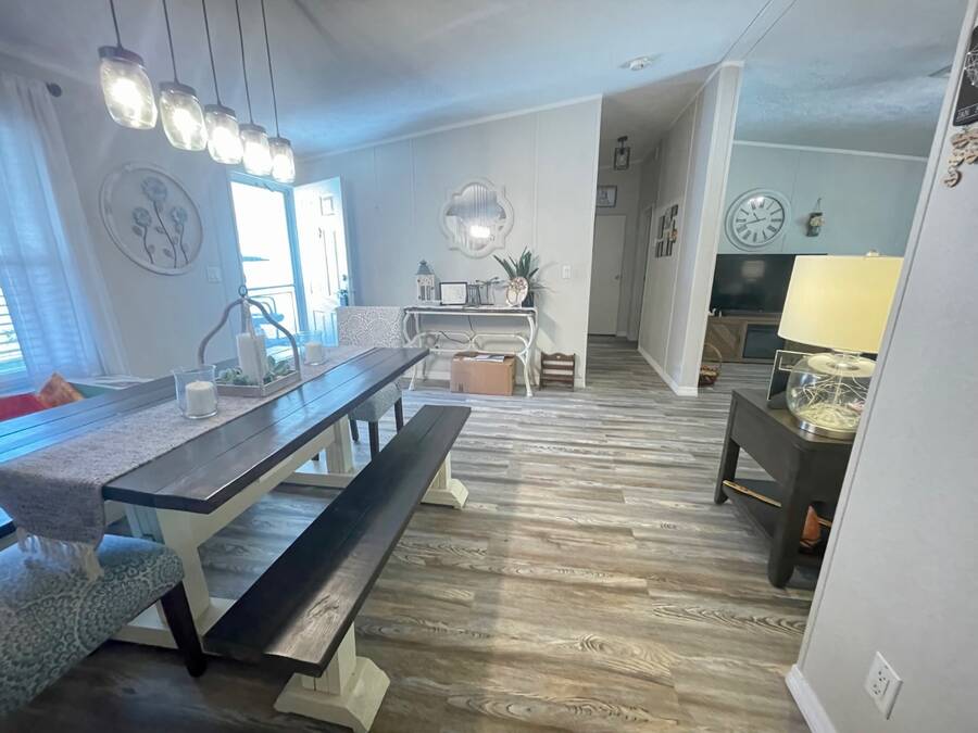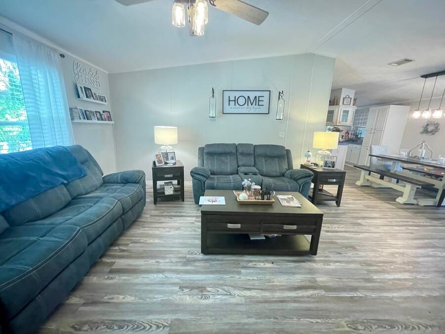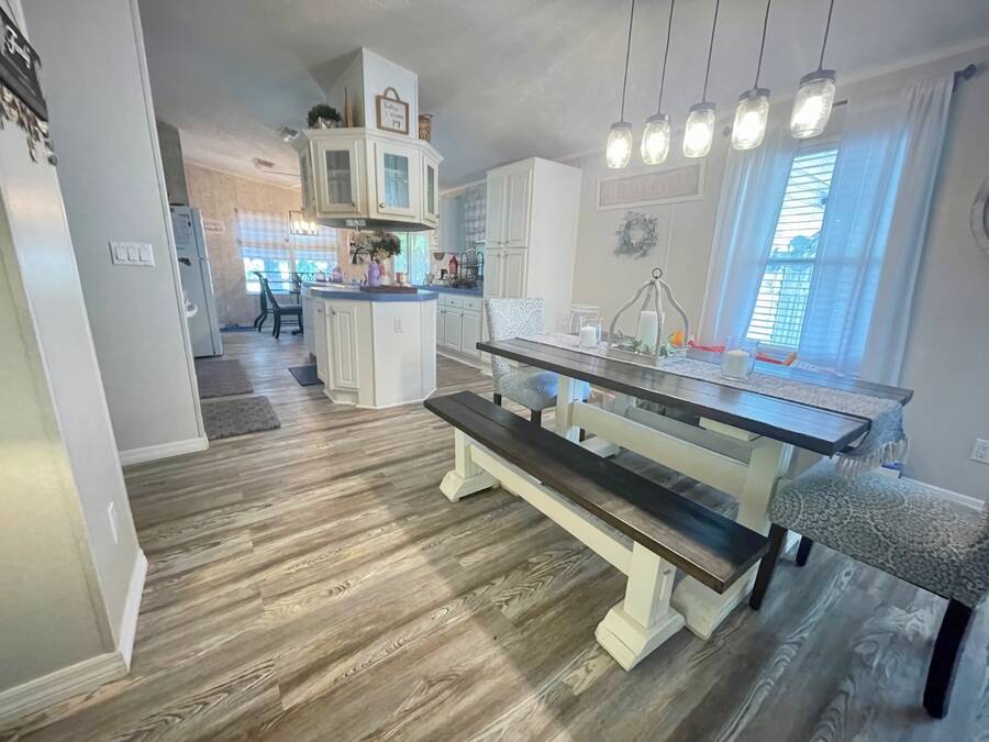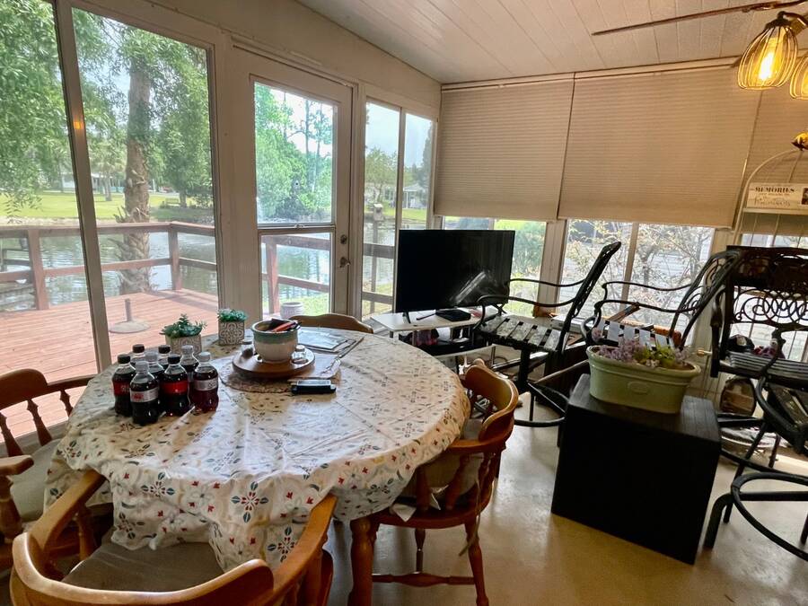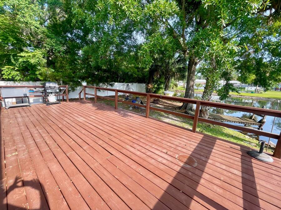 Nestled in the highly sought after 55+ community of Stonebrook with a wonderful reputation for friendliness and tranquility, this light and bright 3-bedroom, 2-bath home on the pond offers a wonderful balance of comfort and modern features including durable luxury plank flooring, a full dining room, breakfast nook, indoor laundry and a full ensuite primary bathroom with a walk-in shower. There's an enclosed porch that leads out to a full deck and large backyard. Located at the end of a no through-way street, this home exudes peace and tranquility in natural surroundings. An affordable lot rent of just $759 makes this well-maintained home a rare gem! This includes trash pickup and sewer as well as access to a fully-appointed clubhouse featuring a grilling patio, an inground pool, hot tub, separate billiard room and a wide variety of activities. The community also offers free boat and trailer storage, making it convenient for those who love being out on the water. Both pet-friendly and people-friendly, Stonebrook is a vibrant neighborhood where residents can participate in events like bingo, bunco, bean bag baseball, yoga, block parties, billiards, potluck dinners, and much more. Whether you're looking for a permanent home, a retirement getaway, or a snowbird retreat, this home is an ideal choice in an exceptional community. Please note that all listing information is deemed reliable but not guaranteed. Measurements are approximate, and lot rent is subject to change. Prospective buyers are encouraged to verify details through personal inspection or professional evaluation. Make this dream home yours and embrace the best of Florida's 55+ lifestyle!
