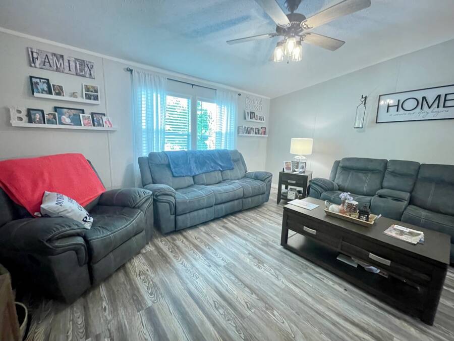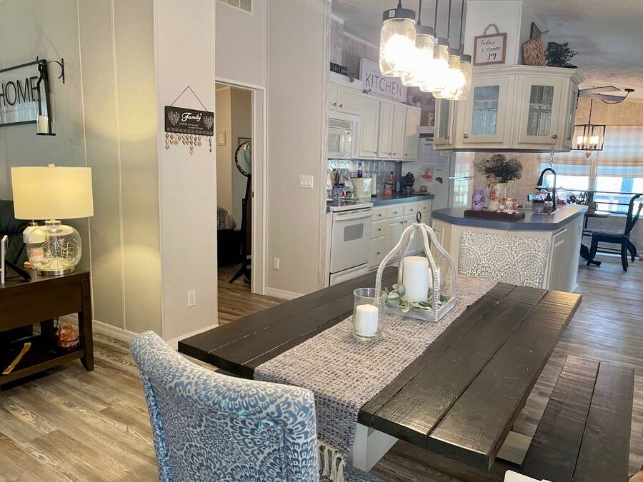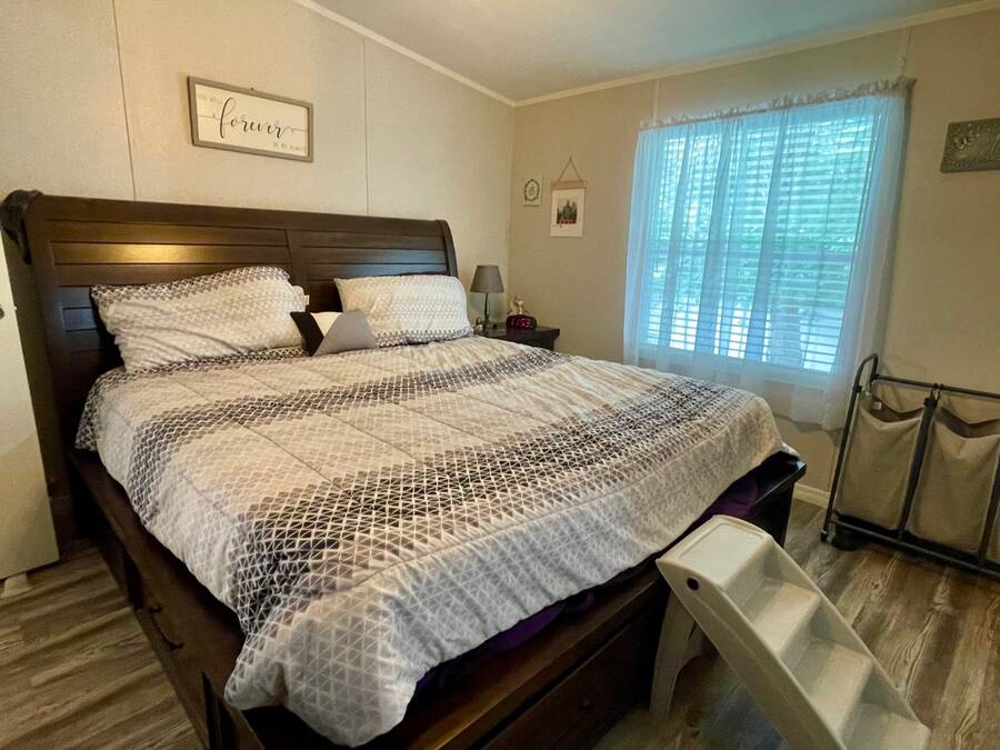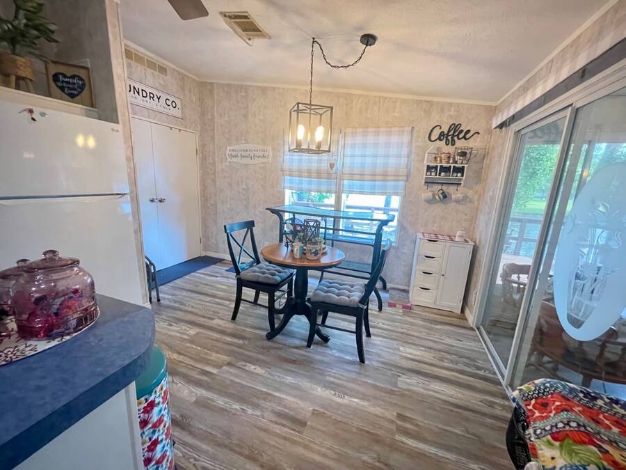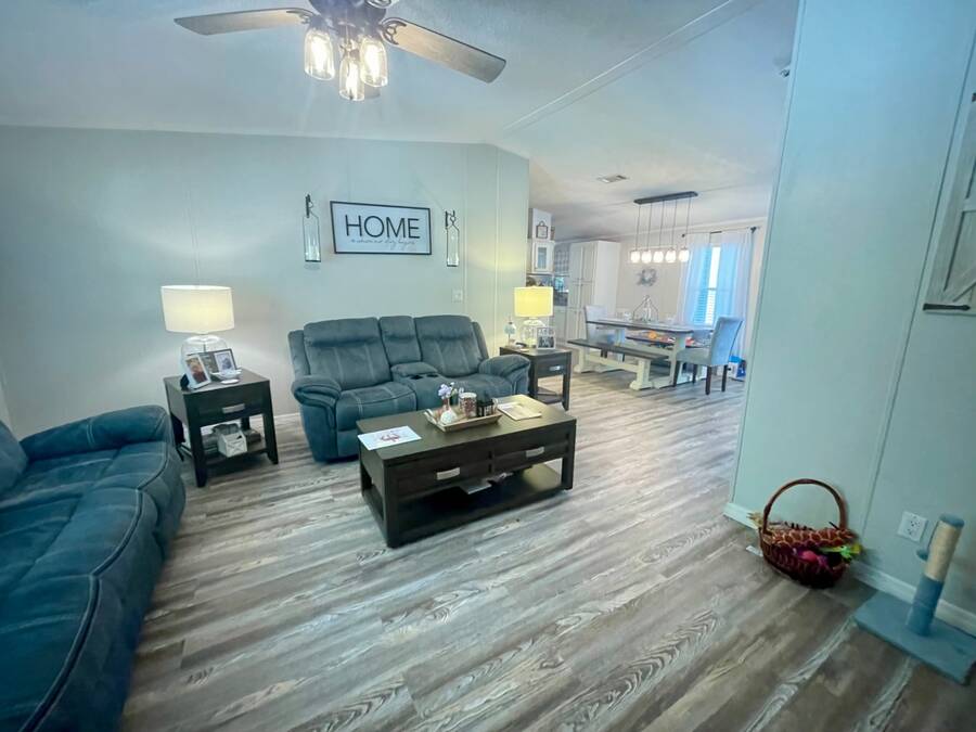 Nestled in the highly sought after 55+ community of Stonebrook with a wonderful reputation for friendliness and tranquility, this light and bright 3-bedroom, 2-bath home on the pond offers a wonderful balance of comfort and modern features including durable luxury plank flooring, a full dining room, breakfast nook, indoor laundry and a full ensuite primary bathroom with a walk-in shower. There's an enclosed porch that leads out to a full deck and large backyard. Located at the end of a no through-way street, this home exudes peace and tranquility in natural surroundings. An affordable lot rent of just $759 makes this well-maintained home a rare gem! This includes trash pickup and sewer as well as access to a fully-appointed clubhouse featuring a grilling patio, an inground pool, hot tub, separate billiard room and a wide variety of activities. The community also offers free boat and trailer storage, making it convenient for those who love being out on the water. Both pet-friendly and people-friendly, Stonebrook is a vibrant neighborhood where residents can participate in events like bingo, bunco, bean bag baseball, yoga, block parties, billiards, potluck dinners, and much more. Whether you're looking for a permanent home, a retirement getaway, or a snowbird retreat, this home is an ideal choice in an exceptional community. Please note that all listing information is deemed reliable but not guaranteed. Measurements are approximate, and lot rent is subject to change. Prospective buyers are encouraged to verify details through personal inspection or professional evaluation. Make this dream home yours and embrace the best of Florida's 55+ lifestyle!