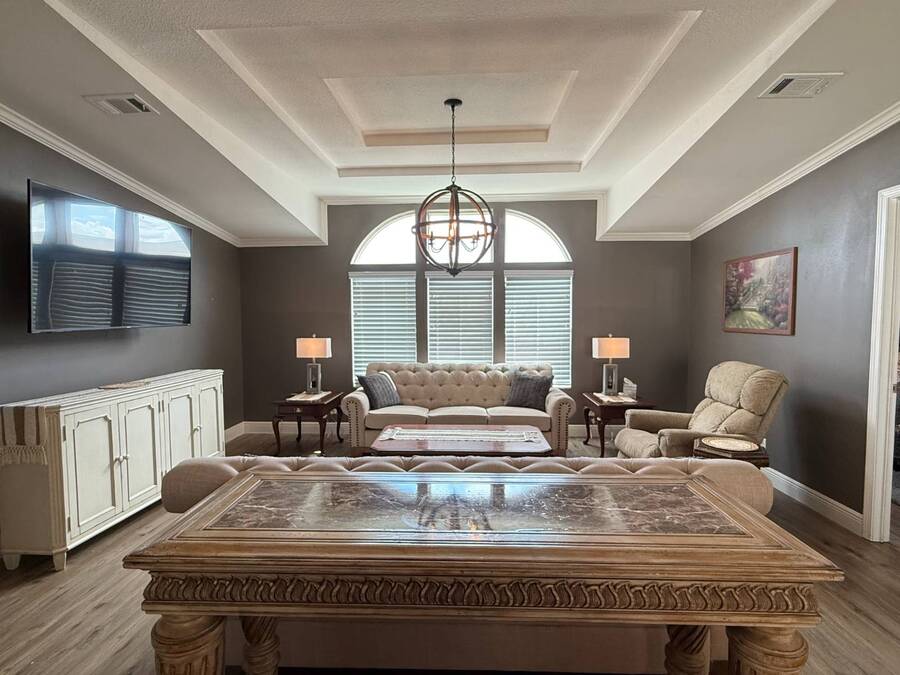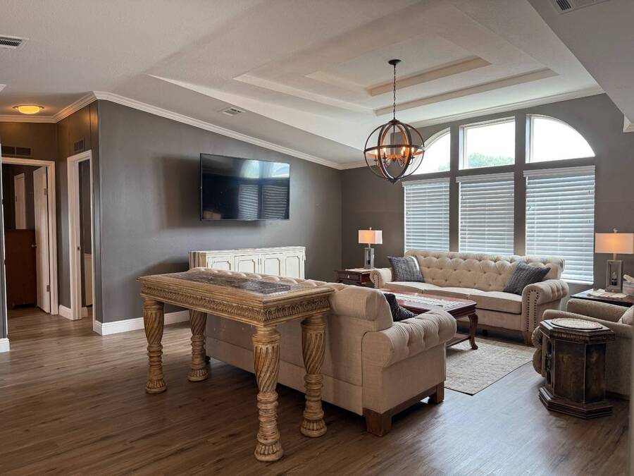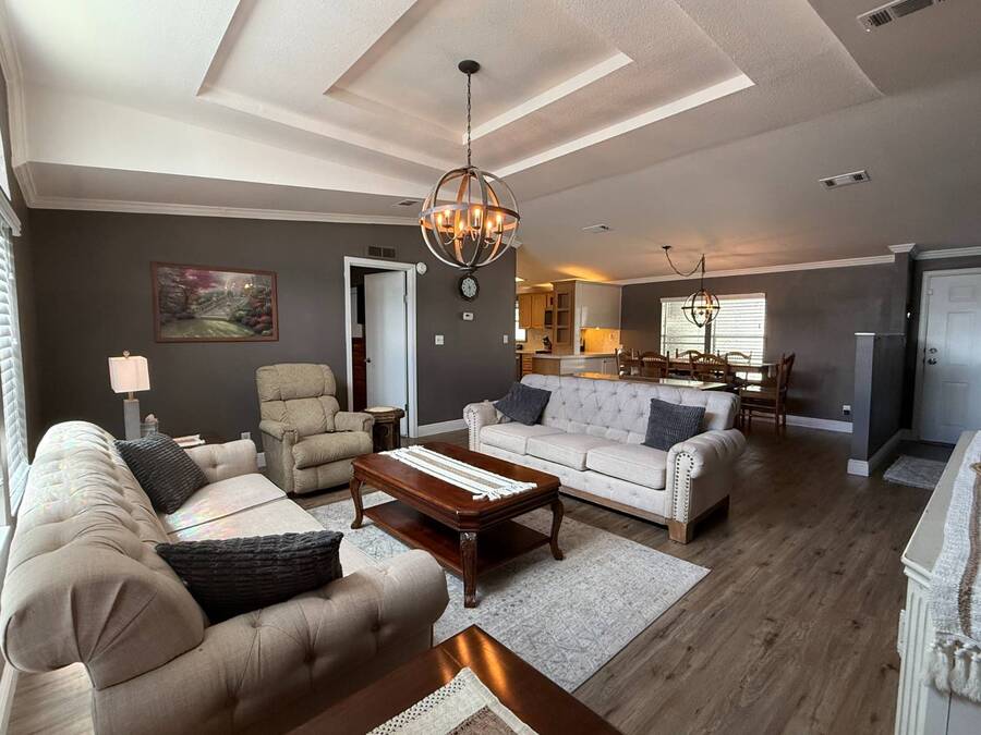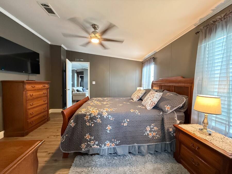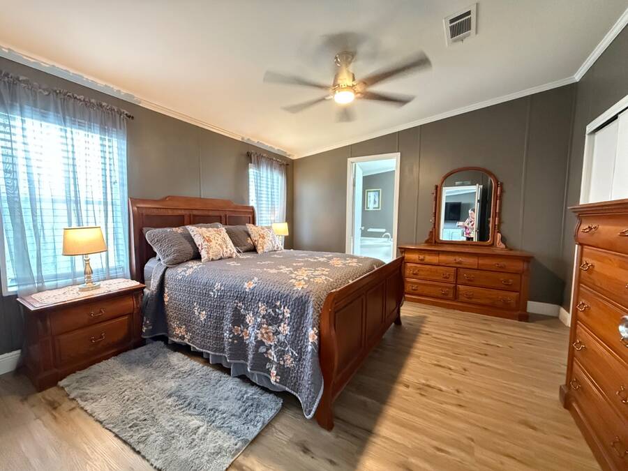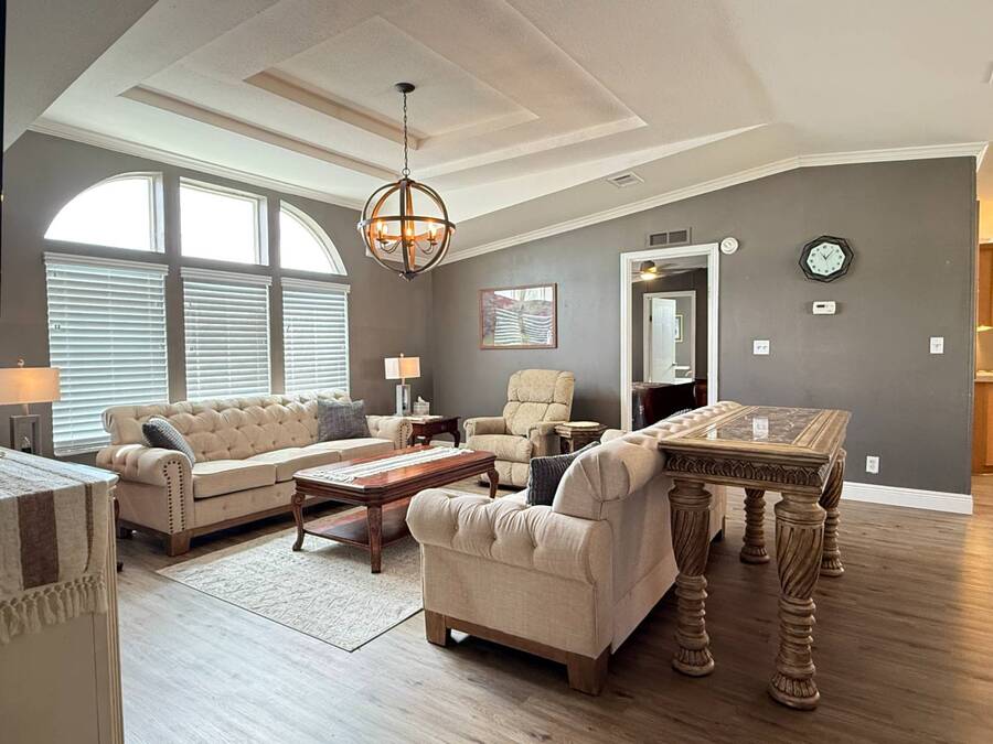 This spacious 2002 Palm Harbor home in the 55+ community of Strawberry Ridge in Valrico offers nearly 1,600 sq. ft. of comfortable living space, featuring a split floor plan that's perfect for buyers seeking a turnkey property. Available at the list price fully furnished, or unfurnished at a negotiated price, with the seller open to reasonable offers. As you step through the main entry, a decorative partition wall leads you into the generously sized living room with arched windows, a decorative tray ceiling, crown molding, wide baseboards, and flat textured walls, creating a spacious and inviting atmosphere. The adjacent dining area comfortably accommodates a table for six, ideal for gatherings and meals. The home features a split floor plan, with two guest bedrooms, both with large walk-in closets, and a guest bath with tub/shower located to the left of the living area. On the opposite side is the large master suite with a very room ensuite bathroom which includes a large garden tub, walk-in shower, double vanity with full-size mirror, and trendy lighting. The roomy eat-in kitchen boasts a pantry, ample counter space, cabinets, a breakfast bar, and a laundry area. Modern 2024 stainless steel appliances include a Baker's double oven, dishwasher, refrigerator, stove, microwave, washer, and dryer. Sliders from the eat-in area lead to the covered screened-in lanai. Throughout the home, you'll find vinyl plank flooring and crown molding, adding a touch of elegance.4year old shingle roof. The seller is open to reasonable offers, making this an excellent opportunity to make this home your own. Contact us today to schedule a viewing! 2025 monthly lot rent of $1225. Motivated sellers-come take a look! Call listing agent directly to schedule a showing! StrawBerry Ridge is a 55+ community located just east of Tampa in Valrico with easy access to I-75, I-4, and the Selmon Expressway. Enjoy the perfect blend of convenience and lifestyle with shopping, dining, medical facilities, and everyday essentials all just minutes away. One resident must be 55 or older, and all others over 18. No additional HOA fees. Park approval is required, including credit, income, and background checks. StrawBerry Ridge is known for its active lifestyle and friendly atmosphere, featuring two clubhouses, indoor/outdoor heated pools with jacuzzis, tennis/pickleball courts, a fitness center, library, billiards and hobby spaces for woodworking and ceramics. A full calendar of events includes bunco, bingo, karaoke, game nights, trivia nights, dances, and more. The community is very pet-friendly, allowing up to three pets with no weight limit (breed restrictions apply).Listing Brokerage cannot guarantee or warrant accuracy of this information, measurements, or condition of property. The buyer assumes all responsibility for verifying all lot rent rates, costs, and rules associated with the Community.