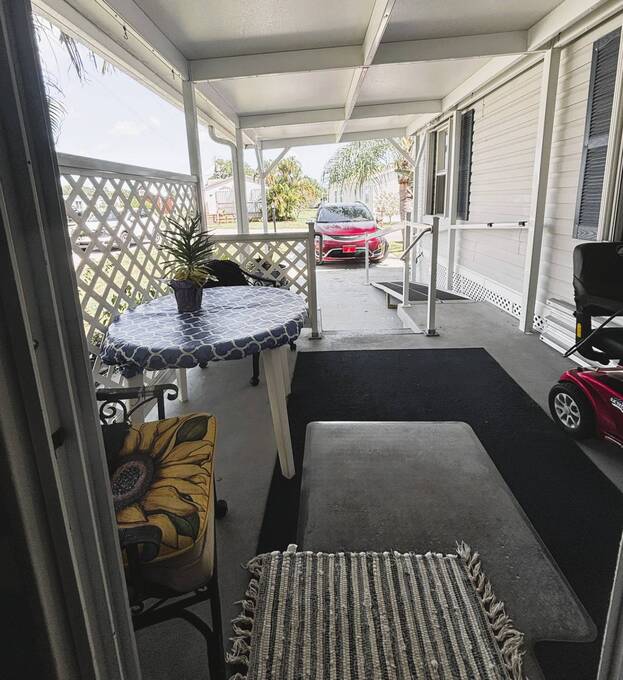 THIS MANUFACTURED HOME IS ELIGIBLE FOR FINANCING! Turn-key ready and fully furnished, this beautifully maintained 2005 double-wide manufactured home offers 2 bedrooms, 2 bathrooms, and 1,056 sq. ft. of comfortable living space. Recent updates provide peace of mind, including a 2-year-old shingle roof, 4-year-old AC and heating system, and luxury vinyl plank flooring throughout. The modern kitchen features stainless steel appliances just 2 years old and generous cabinet space, perfect for everyday living and entertaining. Designed with accessibility in mind, the home includes a handicap-accessible ramp, wide entry points, and a spacious master bath with large walk-in shower and safety railings. The primary suite is generously sized, complete with a king bed and ample storage. Additional highlights include a Florida room for year-round enjoyment, covered carport and patio area, expansive storage room with oversized doors ideal for golf cart access, a separate storage shed, laundry room with 2-year-old washer and dryer, and updated bathrooms with new vanities, sinks, and toilets. This exceptional home combines comfort, thoughtful upgrades, and accessibility features throughout-schedule your private showing today! This home is nestled in the owner-occupied Pet-Friendly 55 Plus Community of Whispering Palms just a few minutes from the Wabasso Beach and downtown Sebastian, Florida nightlife. Whispering Palms is a Pet-friendly community with a vibrant active lifestyle. Two heated pools for year-round relaxation and stay fit with water exercise classes. Tennis and pickleball courts for fun and fitness. The Game room with poker table and pool tables. Horseshoes, shuffleboard, and pétanque for friendly competition. A community thrift store for treasure hunting and giving back. In the Main Hall engaging in Social Activities - Bingo nights and ice cream socials and Dinner gatherings for delightful memories. Hobby groups like knitting, crocheting, and card games to spark creativity. Lot Rent is Only $790 per month which includes weekly trash and recycling pickup. Homeowners are responsible for their lawn care and ALL Utilities. Each person living in the home must be approved by the office prior to purchasing the home. The Perfect Retirement Destination!
