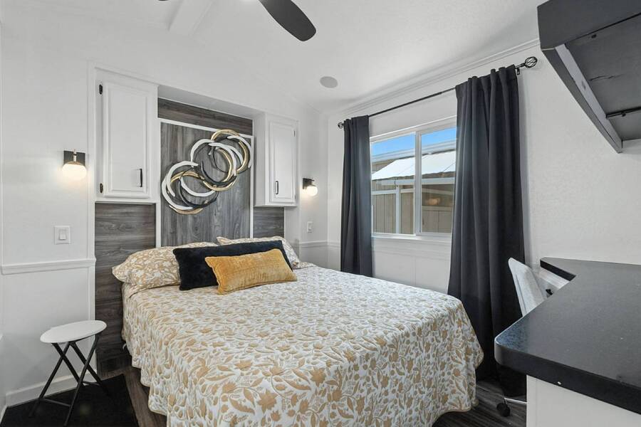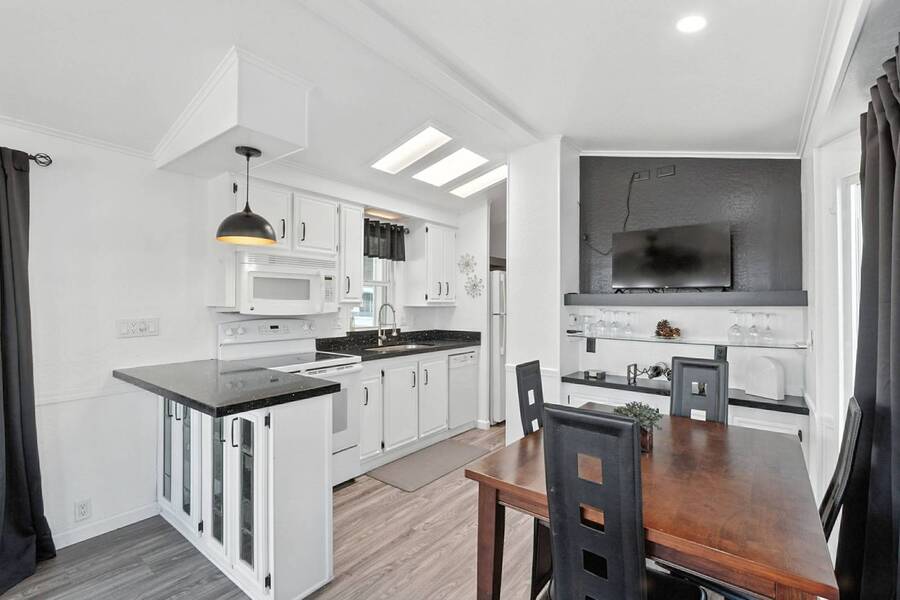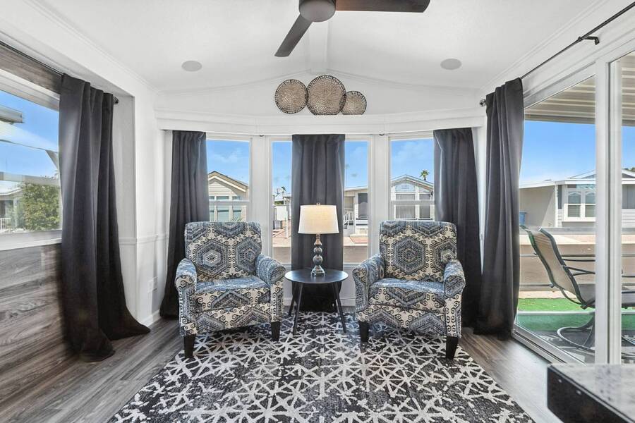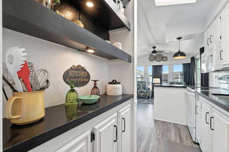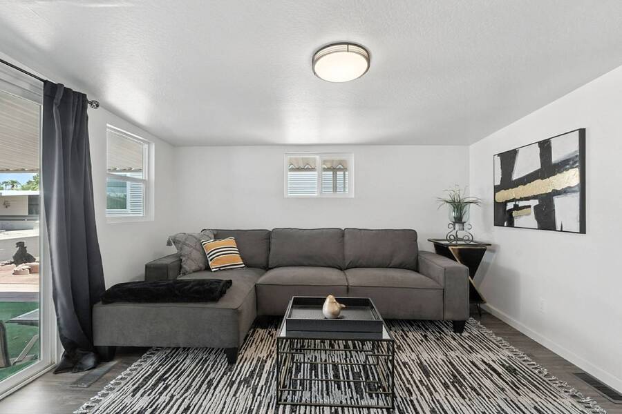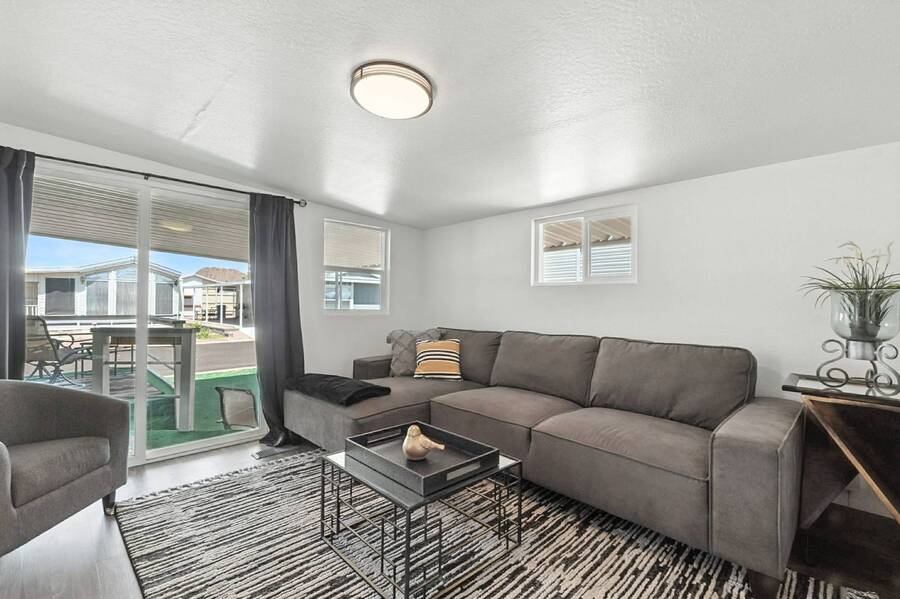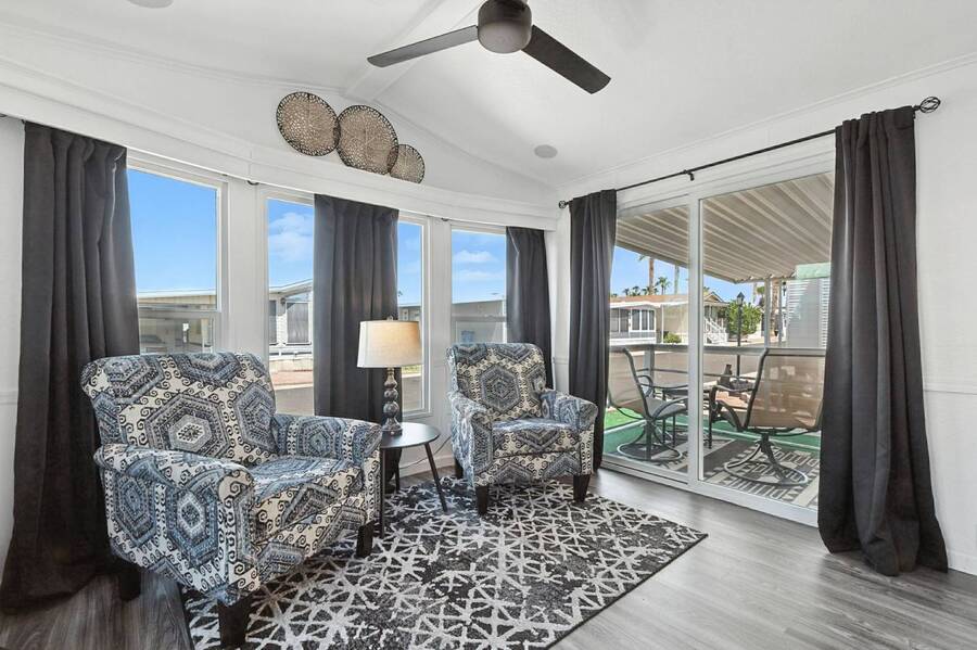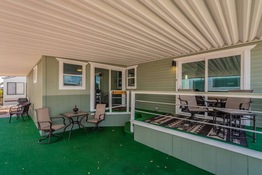 Fabulously remodeled FURNISHED home! Oversized main bedroom includes flat screen TV, his & hers closets & it's own spacious remodeled bath with walk-in shower & a NEW stackable washer/dryer. Completely remodeled home. From vinyl floors to a new roof & dual pane windows, lighting, plumbing, drywall, paint, showers and fixtures! Even includes new blue tooth speakers in the remodeled living room with vaulted ceilings! Kitchen sparkles with quartz counters, white cabinetry with hardware, matching appliances & breakfast & coffee bars. Modern 2nd bedroom has loads of closet storage, a queen bed, and it's own TV & desk. Fully remodeled 2nd bath with plenty of storage and raised vanity & walk-in shower. Huge family room with sectional and flat screen TV opens to the extended covered patio that's furnished with dining table & chairs. Enjoy slow mornings on your deck in one of AZ's most premier Golf resorts! 4 resort pools & spas, 2 fitness centers, over 200 clubs, 27 holes on the Executive golf courses. You've got to see this home & community for yourself!