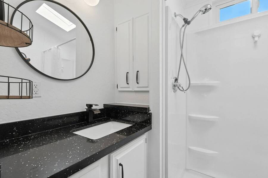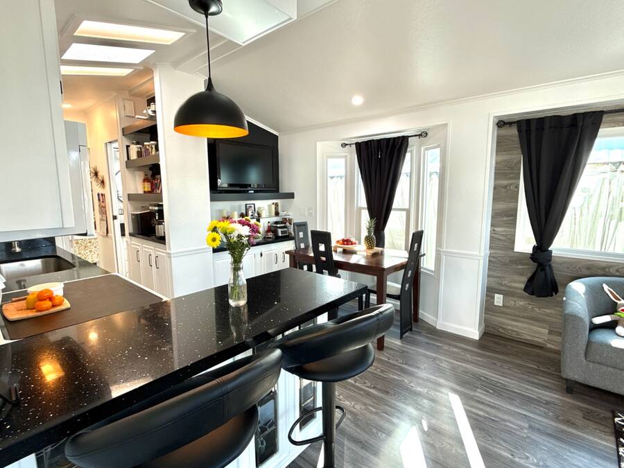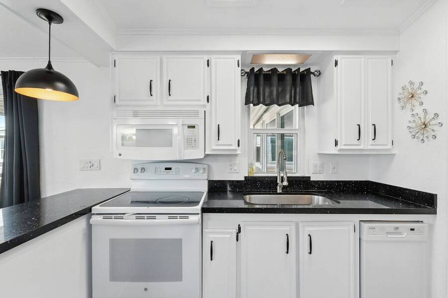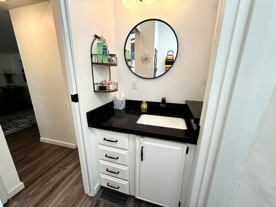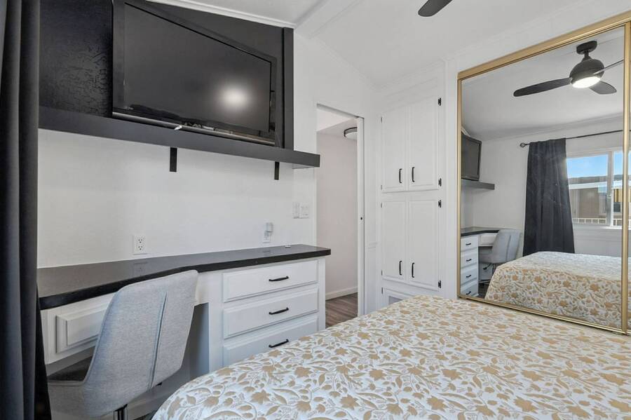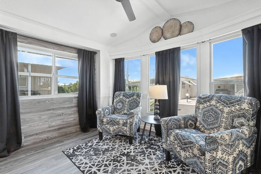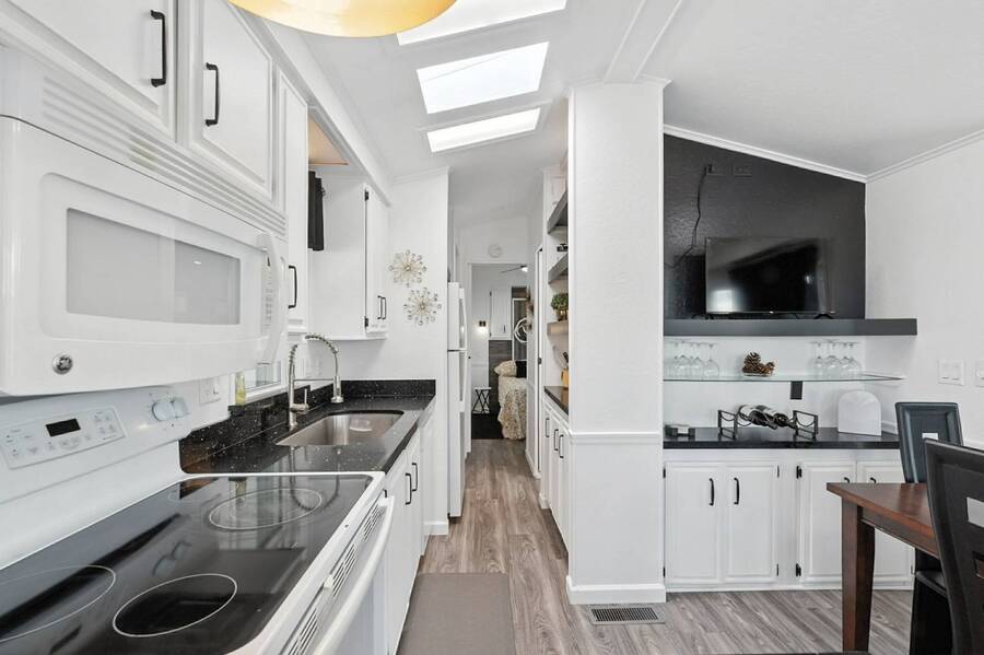Fabulously remodeled FURNISHED home! Oversized main bedroom includes flat screen TV, his & hers closets & it's own spacious remodeled bath with walk-in shower & a NEW stackable washer/dryer. Completely remodeled home. From vinyl floors to a new roof & dual pane windows, lighting, plumbing, drywall, paint, showers and fixtures! Even includes new blue tooth speakers in the remodeled living room with vaulted ceilings! Kitchen sparkles with quartz counters, white cabinetry with hardware, matching appliances & breakfast & coffee bars. Modern 2nd bedroom has loads of closet storage, a queen bed, and it's own TV & desk. Fully remodeled 2nd bath with plenty of storage and raised vanity & walk-in shower. Huge family room with sectional and flat screen TV opens to the extended covered patio that's furnished with dining table & chairs. Enjoy slow mornings on your deck in one of AZ's most premier Golf resorts! 4 resort pools & spas, 2 fitness centers, over 200 clubs, 27 holes on the Executive golf courses. You've got to see this home & community for yourself!