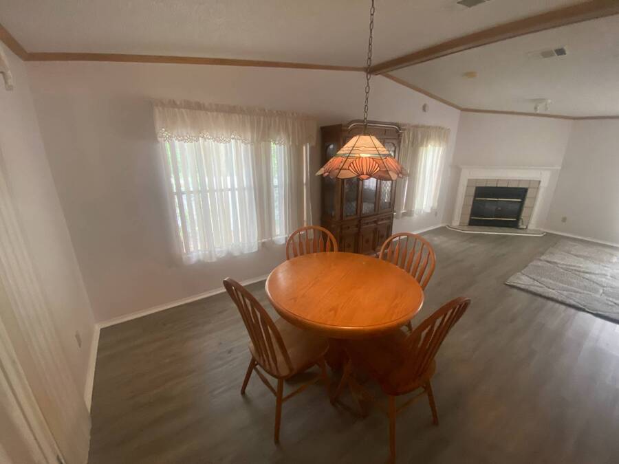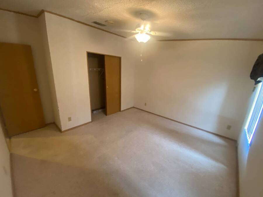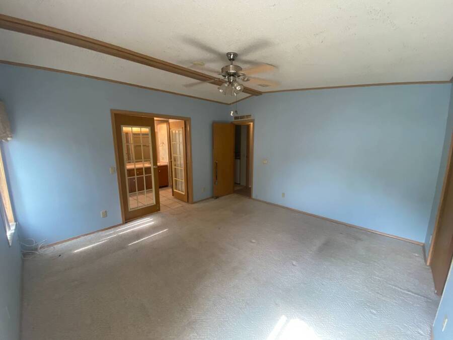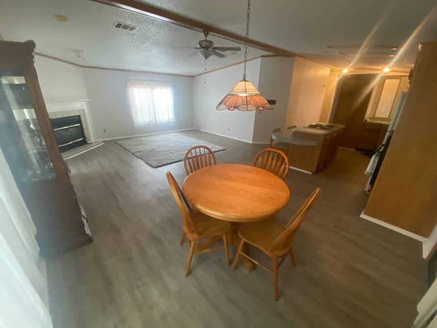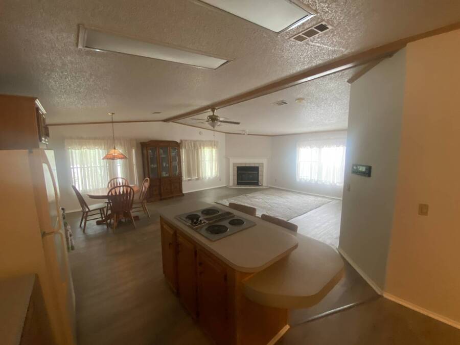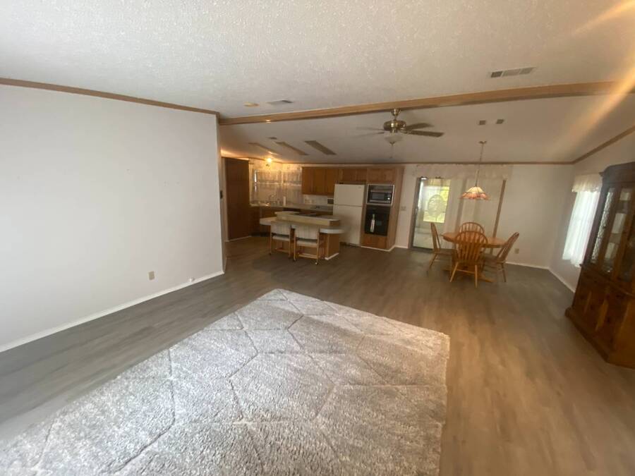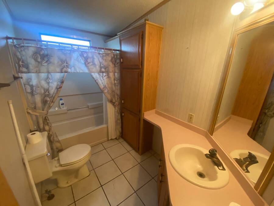 End of the Street Privacy! Nice Big 2/2 in Bayonet Point Village Best Location In the park! This unit is located in the very back of the development giving extra privacy and solitude. Large home with 2 big bedrooms, big living room, cathedral ceilings and open floor plan, fireplace, enclosed lanai as well as private covered porch. Nice big kitchen with lots of cupboard and cabinet space. All appliances will remain. 2 Car wide driveway with 2 car carport plus golf cart garage. Big master bedroom with French doors to en suite bath. Laundry room inside the unit, no going outside to do wash. This is a really comfortable home with cathedral ceilings and great open feeling. Lot rent for 2027 will be $999 and includes basic cable and internet with Spectrum, lawn care, trash, and sewer, along with nice clubhouse and heated pool. Call Today!