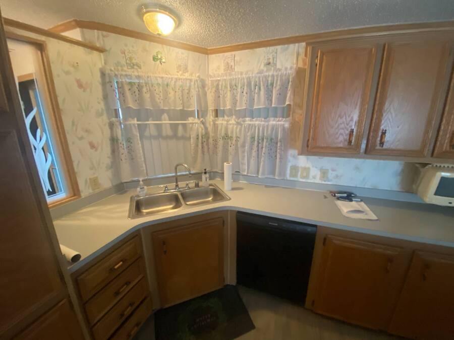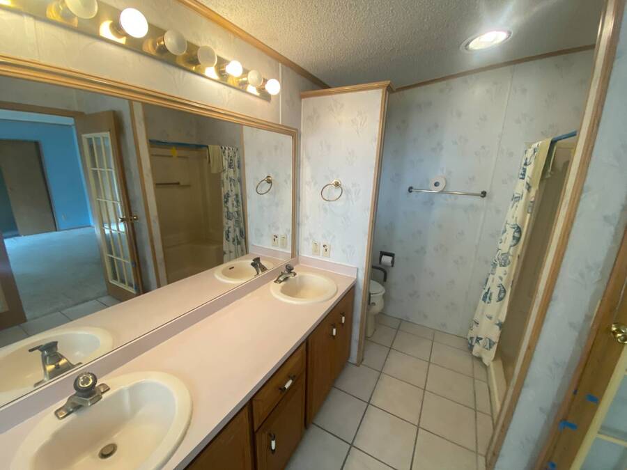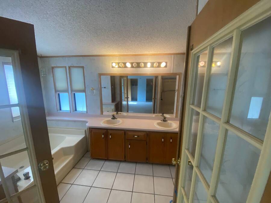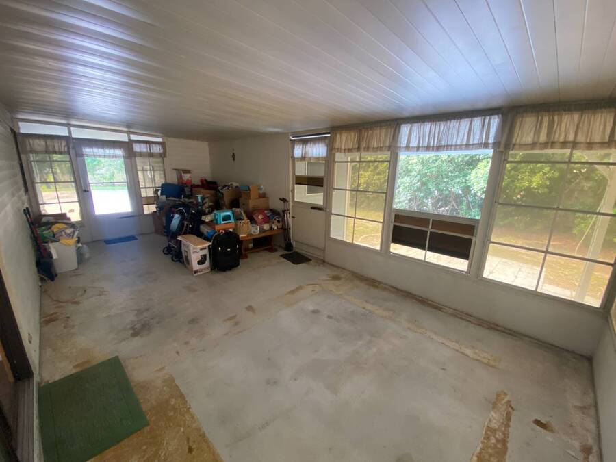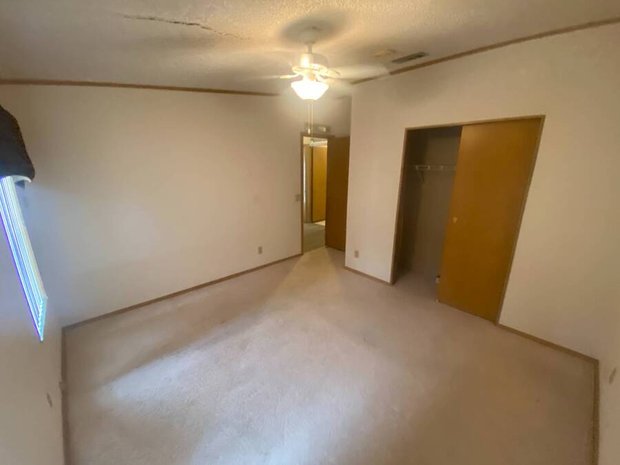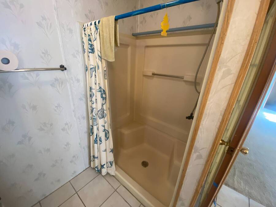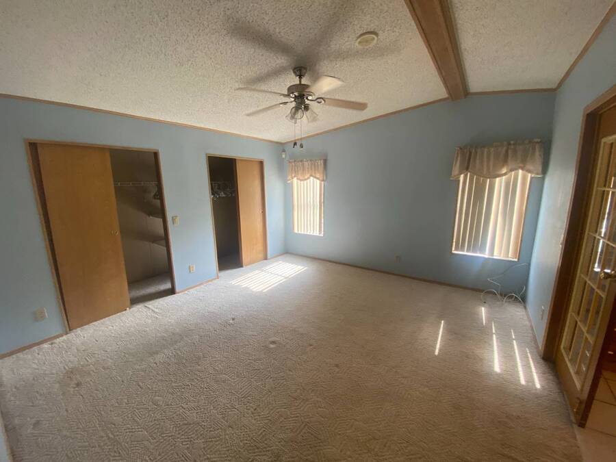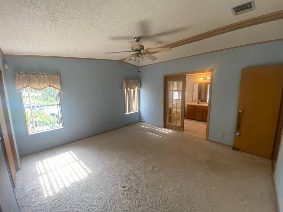 End of the Street Privacy! Nice Big 2/2 in Bayonet Point Village Best Location In the park! This unit is located in the very back of the development giving extra privacy and solitude. Large home with 2 big bedrooms, big living room, cathedral ceilings and open floor plan, fireplace, enclosed lanai as well as private covered porch. Nice big kitchen with lots of cupboard and cabinet space. All appliances will remain. 2 Car wide driveway with 2 car carport plus golf cart garage. Big master bedroom with French doors to en suite bath. Laundry room inside the unit, no going outside to do wash. This is a really comfortable home with cathedral ceilings and great open feeling. Lot rent for 2027 will be $999 and includes basic cable and internet with Spectrum, lawn care, trash, and sewer, along with nice clubhouse and heated pool. Call Today!