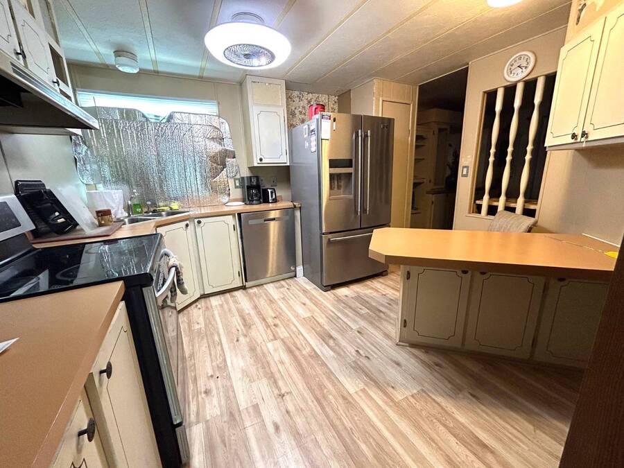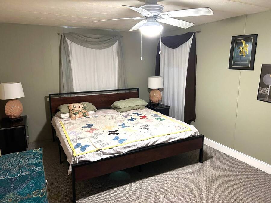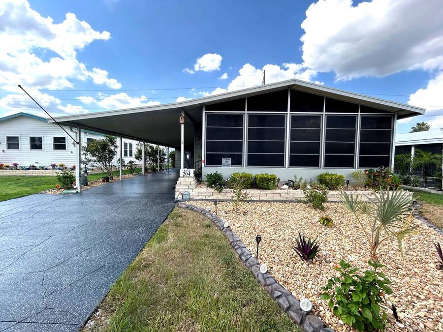 Welcome to your new home in a friendly 55+ community! This spacious 1,344 sq ft residence boasts modern updates and comfortable living. Here's what you'll love about this property: Lot Rent: $909 per month, includes garbage and lawn care. Roof: Durable metal roof installed just 2 years ago. Driveway: Freshly painted for a clean, welcoming appearance. Heating & Cooling: New duct work and a 1-year-old hot water heater ensure efficient climate control. Appliances: Enjoy newer, energy-efficient appliances. Lanai: Relax in the enclosed lanai, perfect for year-round enjoyment. Plumbing: Recently updated for peace of mind. Vapor Barrier: New installation to protect your home from moisture. Water Filtration: Whole house system for clean, pure water. Don't miss out on this well-maintained home with numerous upgrades. It's perfect for those seeking a vibrant community and a comfortable, worry-free lifestyle. Schedule a visit today!