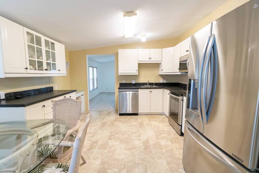 **ESTATE SALE OPPORTUNITY!** Discover this three-bedroom, two-bathroom residence nestled within 55 Plus gated community of Kings Pointe. The estate's heirs are motivated to secure a swift transaction, creating an unprecedented opportunity to embrace the sophisticated retirement lifestyle you deserve at an exceptional value, where every detail has been thoughtfully curated for discerning residents. Time-sensitive make this impeccably updated home available for immediate purchase. The property showcases contemporary flooring that flows seamlessly from room to room and fresh interior paint that creates an atmosphere of elegance. With a roof approximately five years young and heating and cooling systems refreshed just four years ago. Kings Pointe stands as Central Florida's crown jewel, a private gated of 229 distinctive home sites positioned strategically between Orlando and Tampa. Here, palm-lined boulevards wind through a landscape where sparkling lakes meet fragrant citrus groves, creating an enchanting backdrop for your next chapter. The lot lease for 2025 has been, $787 monthly, encompasses all the park's remarkable amenities. **Act quickly on this estate sale opportunity** - the motivated family seeks a prompt closing. Indulge in the heated swimming pool's refreshing embrace, unwind in the therapeutic whirlpool spa, or engage in spirited competitions on the shuffleboard and bocce ball courts. The clubhouse buzzes with activity, offering billiards, craft clubs, social events, and a well-appointed library. Additional amenities include a comprehensive fitness center, recreational vehicle storage, and pet-friendly policies. **Don't miss this rare estate sale opportunity** - your extraordinary lifestyle awaits in this exceptional Central Florida paradise. OUT OF TOWN!?!? NO WORRIES, WE CAN DO VIRTUAL SHOWINGS AND WE ARE ABLE TO DO PAPERWORK REMOTELY. FEEL FREE TO CALL, TEXT, OR EMAIL ME. I LOOK FORWARD TO BEING YOUR RAY OF SUNSHINE AND HELPING YOU CALL YOUR NEW HOUSE A HOME! All listing information is deemed reliable but not guaranteed and should be independently verified through personal inspection by appropriate professionals. Our company does not and cannot guarantee or warrant the accuracy of this information or the condition of this property. Measurements are approximate. The buyer assumes full responsibility for obtaining all current rates of lot rent, fees, and pass-on costs. Additionally, the buyer is responsible for obtaining all rules, regulations, pet policies, etc., associated with the community, park, or home from the community/park manager. Our company is not responsible for quoting said fees or policies. Financing is available through 3rd party lenders. Please contact the sales agent for additional information