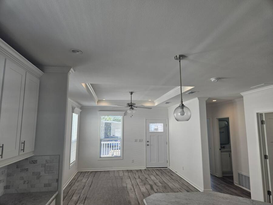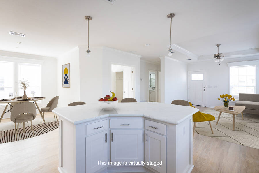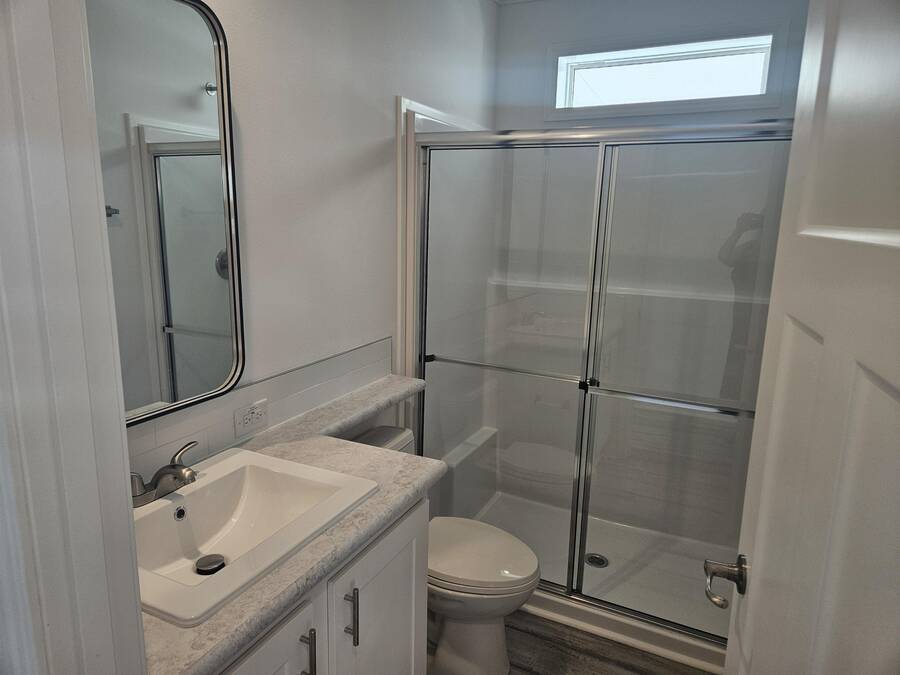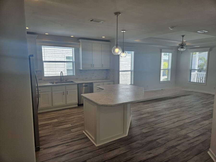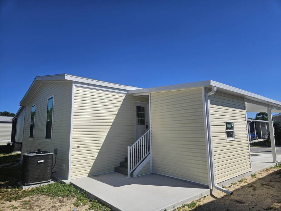 Move into this Luxurious, elegant, brand new Skyline 5006A floor plan with 3 bedrooms and 2 bathrooms. Featuring a soothing, light, beachy color scheme. Glamorous kitchen with white cabinets, marble colored counters, huge center island, stainless steel appliances and loads of storage space. Open to the living and dining areas which make for a terrific entertaining space. Bright living room with large windows. Dining area with a hall leading to indoor laundry room. Primary suite fit for royalty with double door entry, walk in closet and attached ensuite bathroom with double sink vanity and step-in shower.(Accommodates a king size bed) Elsewhere, there is a cute den/guest bedroom with double doors. Another guest bedroom at the front of the home with guest bath adjacent (tub/shower combo unit). Vinyl plank style flooring, faux wood window blinds, wood cornices above windows, amazing inverted tray ceiling in living room, crown molding and much more! Lovely, inviting, covered front deck to enjoy your morning coffee from. Once completed, home will include covered carport, exterior steps, custom built storage shed off carport, irrigation system and landscaping. This is a truly gorgeous home and will not last long! The last one we had like this one sold within days! Contact us for more information or to schedule your tour.