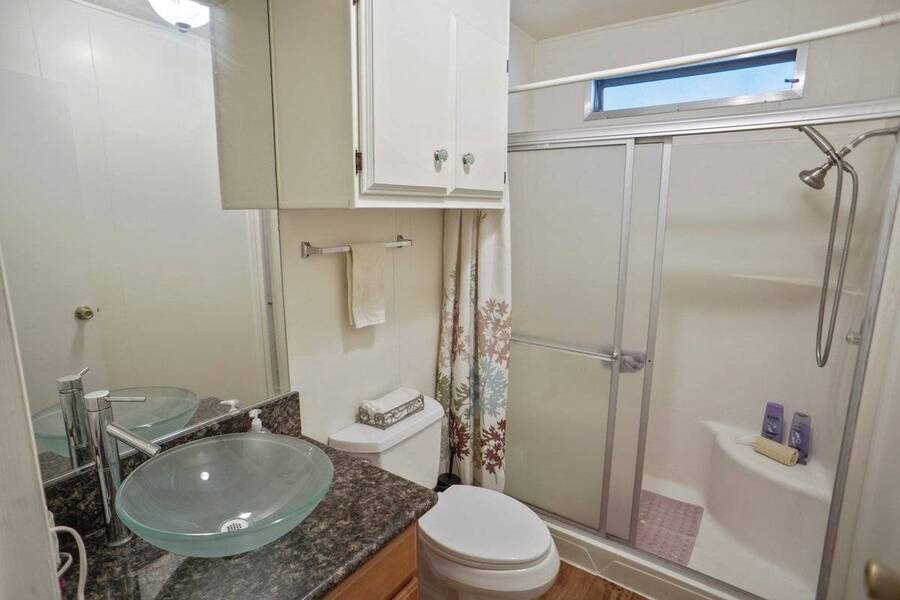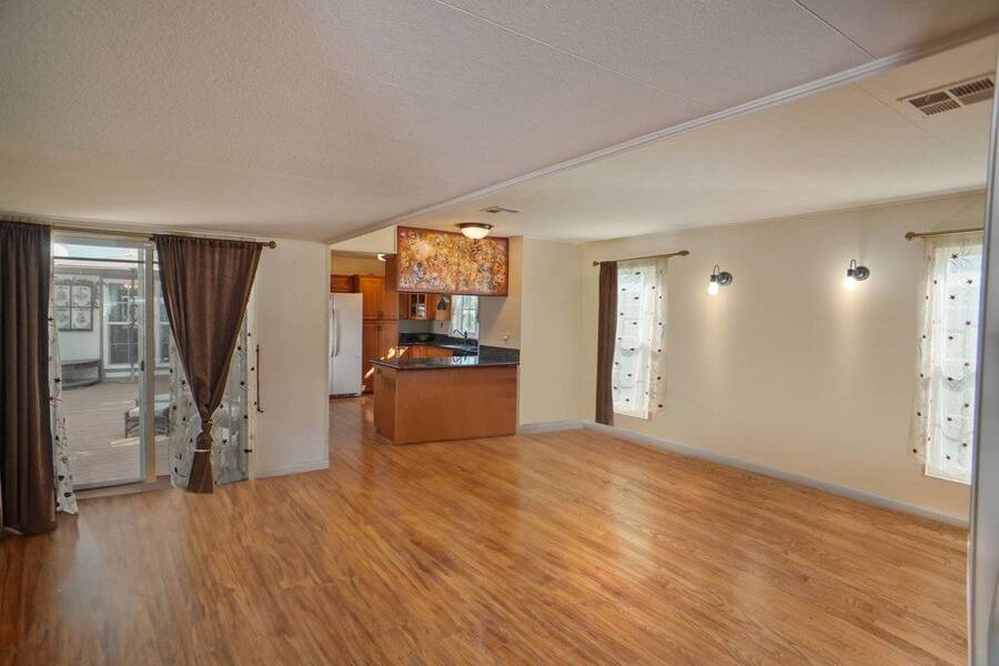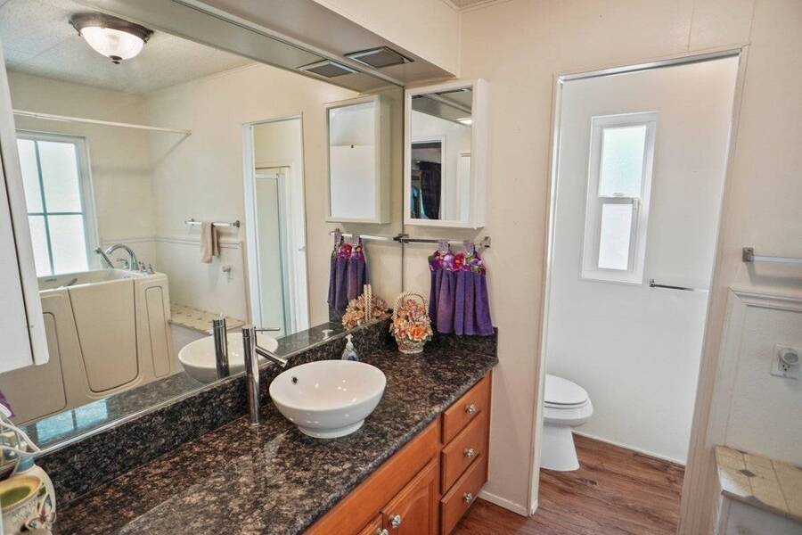 Welcome Home to this Great 2 Bedroom + 2 Bathroom Home with approximately 1,440 sq ft of living space with rare Atrium-style Center Outdoor entertainment and relaxing space in highly-desirable 55+ Greenbrier Estates gated Community! Many extensive Upgrades including Remodeled Kitchen, Updated Bathrooms, Newer Dual-pane Windows, wood-look laminate flooring in main living spaces, and fresh Exterior Paint! Entry opens to large Living Room open to Dining Room. Remodeled Kitchen features Granite countertops, Appliances including freestanding oven/gas range, built-in microwave, plenty of counter space with peninsula and storage cabinets. Big Primary Suite with wardrobe closet and private Bathroom featuring Dual vessel-style Sinks/Vanity, Granite countertops and walk-in Tub; great upgrade for seniors. Nice-size guest Bedroom and Guest Bathroom with Granite countertops, vessel-style Sink and walk-in shower with glass enclosure. Convenient Utility/Laundry Room including Washer & Dryer included! Door to side access to exterior and more storage. Neutral color-scheme. Drywall walls. Central Air Conditioning. Gas Heating. Large landscaped Yard. Wonderful outdoor living feature with sizable Atrium centrally located with multiple doors to access and privacy from neighbors. Large Yard. Covered Oversized Tandem Carport; may fit 3 cars. Storage Shed included. Outstanding Santa Clarita Location in highly desirable gated Community of Greenbrier Estates (1 Buyer needs to be a minimum age of 55). Amenities include 2 pools, 1 indoor spa & 1 outdoor spa, tennis court, pickleball court, recently beautifully updated clubhouse with kitchen and billiard room, card room, community activities, library, greenbelt, guest parking and even RV storage. Includes water and trash collection. Close to everything; shopping, dining, bowling & public transportation. Space rent $1,356/mo. approximately. Serial CAL06892 5/6 Shown by Appointment only. Do NOT disturb occupants. Se Habla Espanol. *Information provided deemed reliable however not guaranteed and subject to change without notice. Buyer to verify and complete their own investigations including monthly space rent, square footage, condition of property, etc. Park approval with community management required for occupancy.